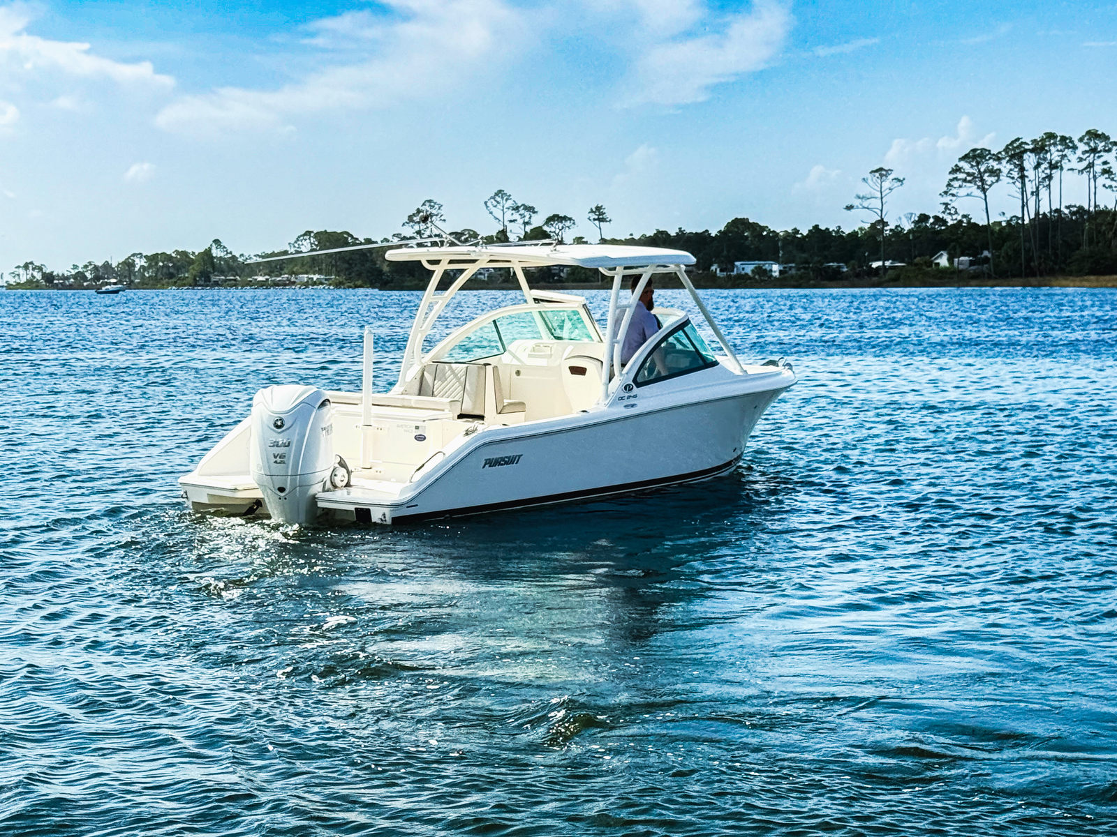 The Pursuit DC 246 truly shines in a variety of scenarios, making it a versatile choice for any boating enthusiast. For families, the spacious layout and comfortable seating provide the perfect setting for weekend outings, picnics, and water sports. Anglers will appreciate the stability and performance of the dual console design, as well as the ample space for casting and reeling in the catch of the day.If you are seeking a luxurious getaway, the DC 246 offers all the amenities you need for a relaxing escape, from the sun pad and sunshade to the elegant interior and convenient fresh water head. Whether you are exploring new coastlines, entertaining friends, or simply unwinding on the water, this Pursuit boat for sale is designed to meet your every need.