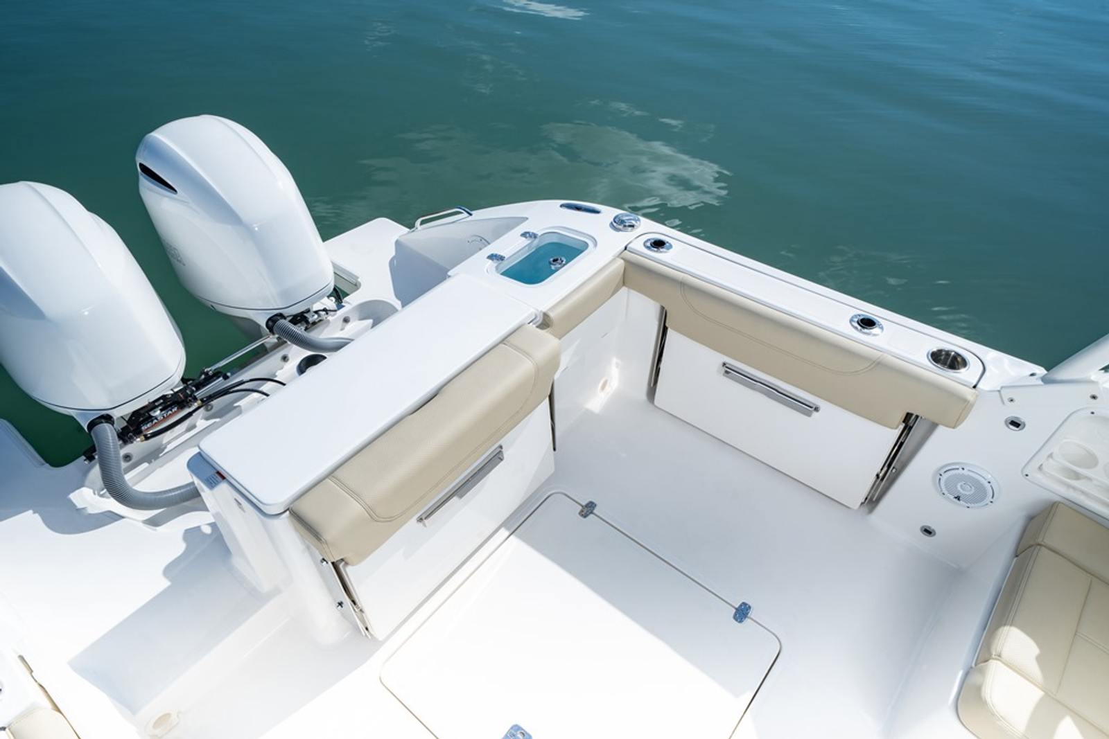 The Pursuit DC 266 truly shines in a variety of scenarios. It’s the perfect platform for family outings, offering plenty of space for kids to play, adults to relax, and everyone to enjoy the water together. Fishing trips are elevated by the dedicated rod holders and spacious cockpit, while the comfortable seating and sunpads make it easy to unwind after a day of casting lines. For those seeking a touch of luxury, the Mediterranean-style sunshades, premium audio system, and elegant table settings create a resort-like atmosphere on the water, ideal for romantic getaways or entertaining friends.Whether you’re exploring hidden coves, hosting sunset cruises, or embarking on weekend adventures, the DC 266 adapts to your every need, making it a versatile and rewarding choice for any boating enthusiast.