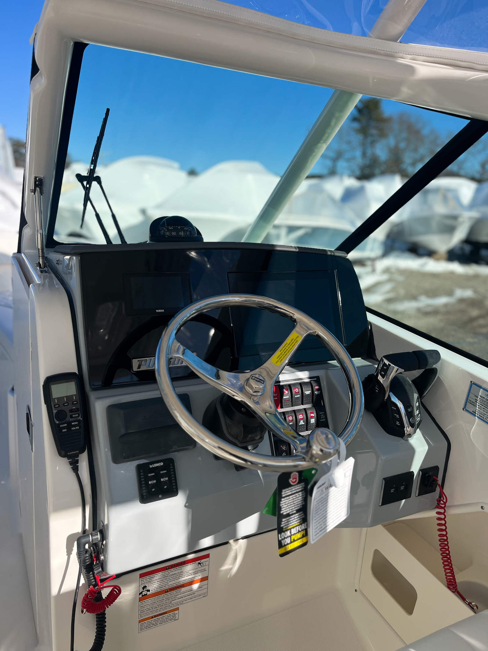 The 2026 Pursuit DC 266 is a new dual console boat that measures an impressive 27.33 feet in length, offering ample space for relaxation, entertainment, and recreation. The Neptune Gray hull gives this vessel a sleek, modern look that turns heads at the marina and on the open water. Pursuit’s reputation for superior craftsmanship and attention to detail is evident throughout the DC 266, making it a standout option for those who demand excellence in their boating experience.
