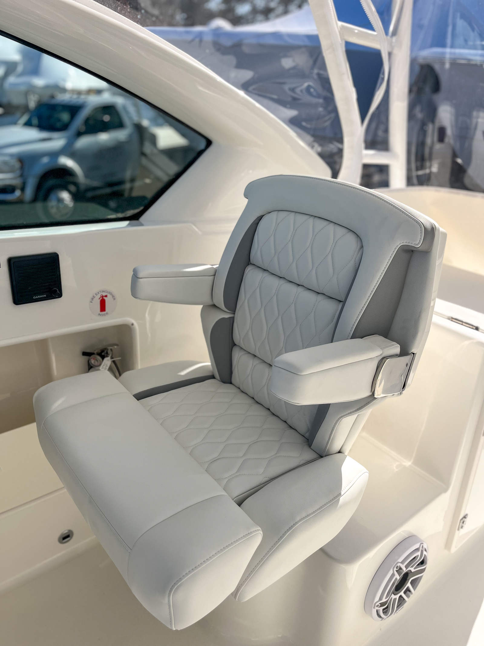 At the heart of the Pursuit DC 266 are twin Yamaha® Digital F200 engines in Pearlescent White, delivering a combined 400 horsepower. These engines are equipped with Digital Electronic Steering (DES) and Helm Master® EX Digital Electronic Control (DEC), providing smooth, responsive handling and effortless maneuverability. The advanced digital controls ensure precise throttle response and seamless shifting, allowing you to navigate with confidence whether you’re cruising, docking, or exploring new waters. With this powerful setup, the DC 266 offers exhilarating acceleration, impressive top speeds, and reliable performance for all your boating adventures.
