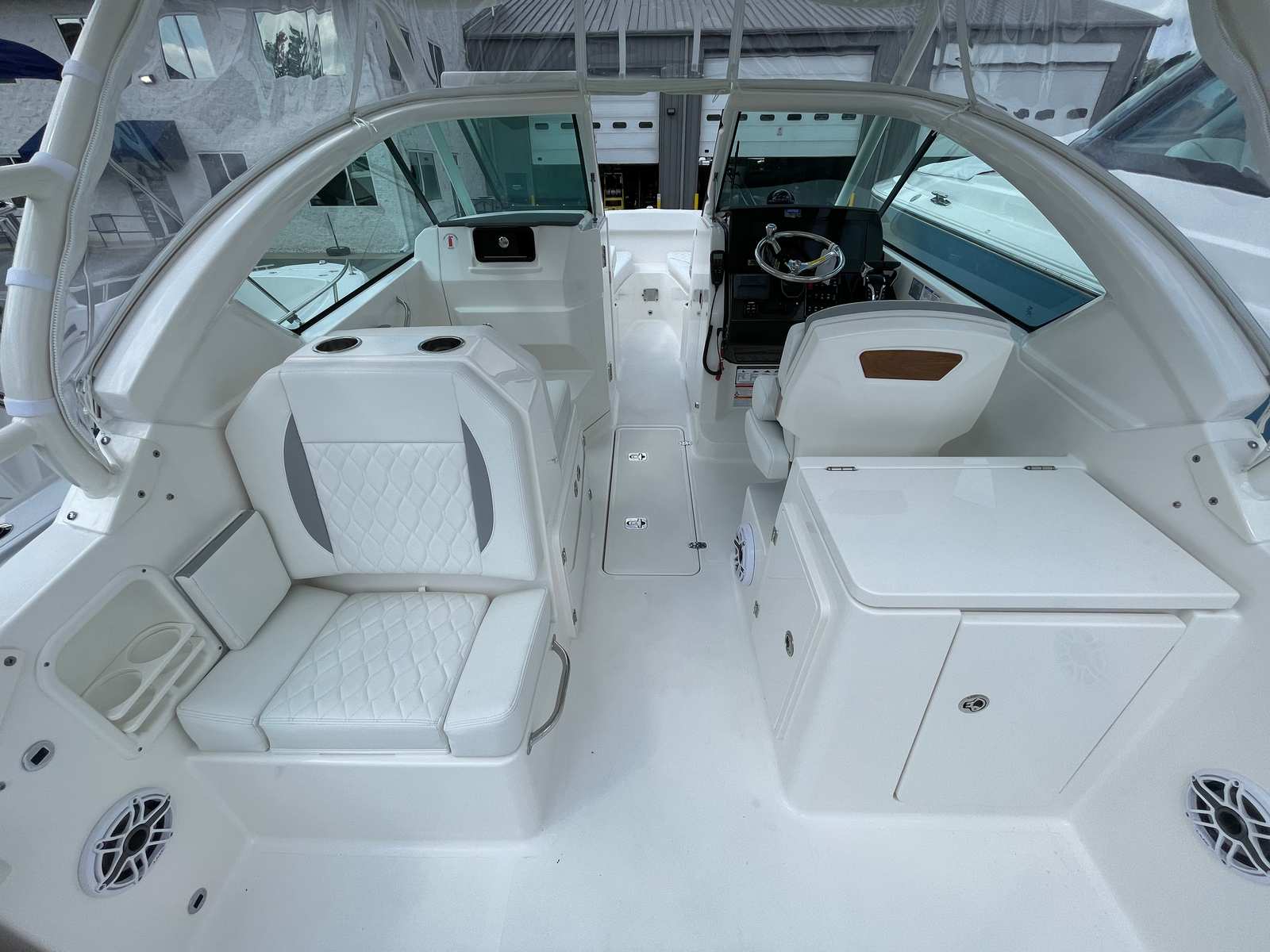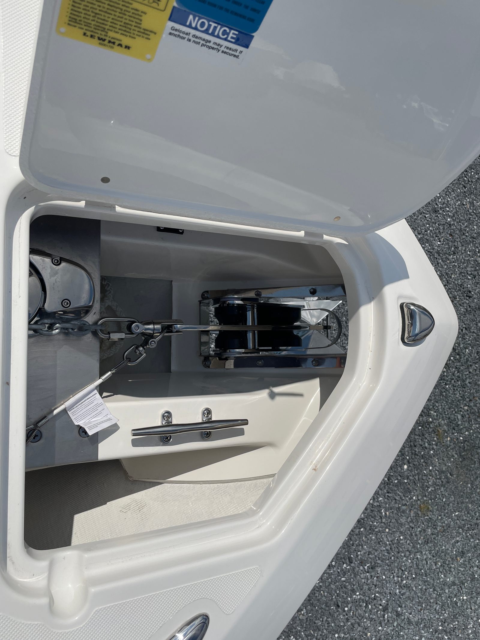This Pursuit DC 266 is loaded with premium features designed to enhance every moment on board. The Neptune Gray hull and Platinum bootstripe create a sophisticated, modern look, while the Carbon helm adds a touch of high-tech elegance. The upgraded white/gray upholstery not only elevates the aesthetic but also provides superior comfort for you and your guests.For those who love to entertain, the fiberglass bow table with both bow and cockpit mounts offers versatile dining and socializing options. The anchor windlass system with remote makes anchoring effortless, allowing you to secure your spot with the push of a button. When the sun sets, the three Sea Blaze Quattro Spectrum underwater lights and four blue LED mid-level cockpit accent lights create a vibrant, inviting atmosphere, perfect for evening cruises or dockside gatherings.Music lovers will appreciate the premium JL Audio stereo upgrade, featuring a custom-tuned 6-channel DSP amp, subwoofer, four sport speakers with blue backlighting, an external antenna, and a Sirius receiver with a three-month subscription. Whether you’re relaxing at anchor or cruising at speed, you’ll enjoy crystal-clear sound throughout the boat.