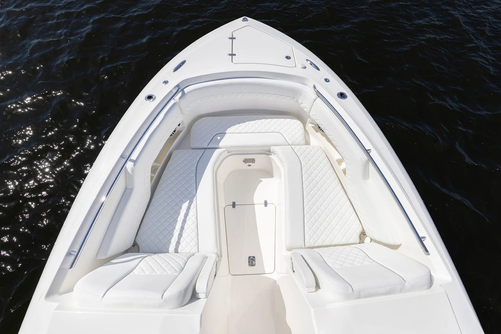 At the heart of the Pursuit DC 306 are twin Yamaha F300 outboard engines, delivering a combined 600 horsepower. This powerful setup ensures exhilarating acceleration, smooth cruising, and reliable performance in a variety of water conditions. Whether you are navigating coastal waters, exploring inland lakes, or heading offshore for a day of adventure, the DC 306’s robust engines provide the confidence and capability you need. The inclusion of a bow thruster enhances maneuverability, making docking and tight turns effortless, even for less experienced captains. With this Dual Console boat for sale, you can expect a responsive and enjoyable ride every time you set out.