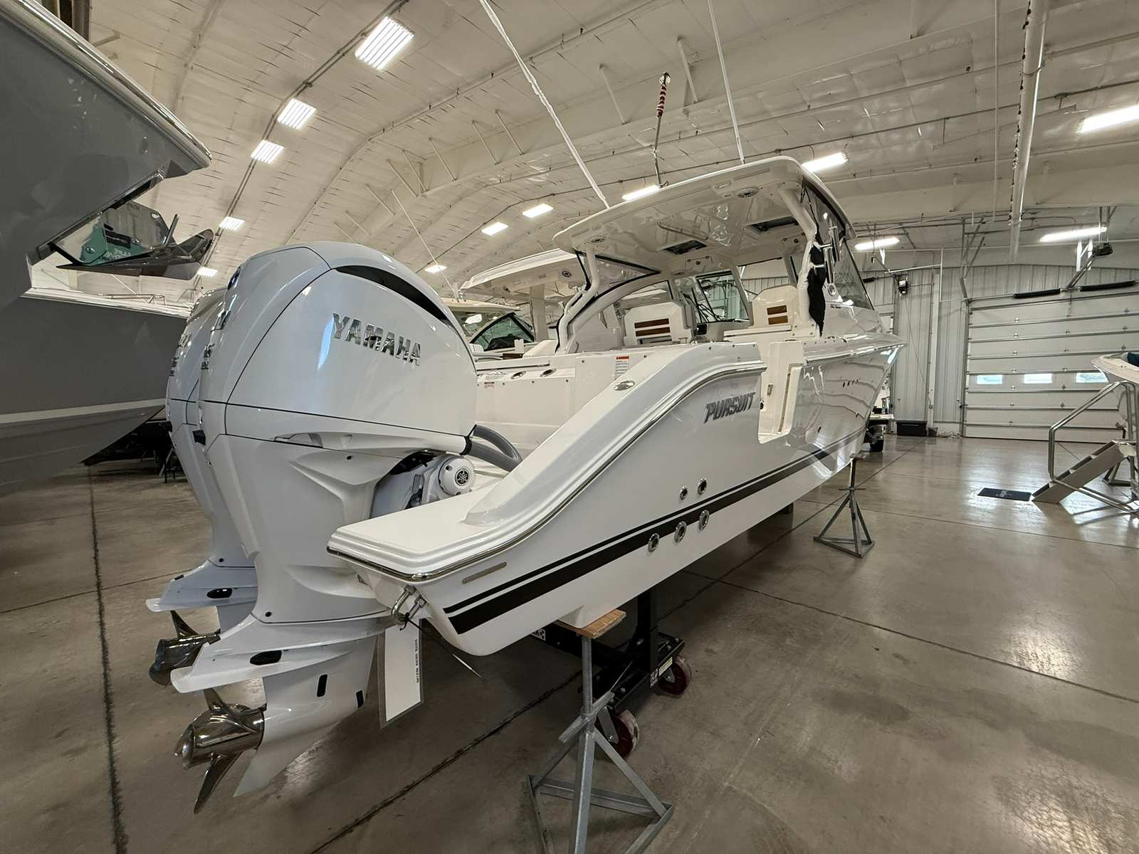 he Pursuit 326 DC is loaded with features that cater to both leisure and adventure. The spacious dual console layout provides separate helm and passenger areas, offering flexibility for different activities. The ergonomically designed helm station ensures easy access to controls and navigation equipment, enhancing the captain’s experience. Plush seating throughout the boat invites relaxation, while the expansive bow and cockpit areas are perfect for sunbathing, dining, or socializing. Storage solutions are thoughtfully integrated, allowing you to stow gear, water toys, and personal items securely. The Pursuit 326 DC also boasts advanced safety features, ensuring peace of mind for you and your guests during every voyage.