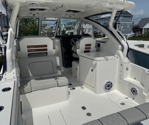 Practicality is at the core of the Pursuit DC 306’s design. The dual console layout provides excellent protection from the elements, allowing you to enjoy your boat in a variety of weather conditions. The dedicated storage solutions, including the fiberglass cockpit table storage and the stainless steel refrigerator/freezer, keep your gear organized and your refreshments chilled. Dockside power ensures that you have the energy you need for extended stays at the marina or overnight trips.The DC 306’s manageable size makes it easy to dock and maneuver, even in crowded marinas or tight spaces. The efficient twin Yamaha engines offer a balance of power and fuel economy, reducing operating costs and maximizing your time on the water. Whether you are heading out for a quick afternoon cruise or planning a weekend getaway, this Pursuit boat for sale is ready to meet your needs.