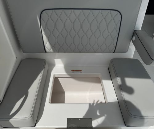 The Pursuit DC 306 is loaded with premium features designed to enhance your boating lifestyle. The multifunction display interface puts navigation and system controls at your fingertips, allowing you to monitor and manage every aspect of your journey with ease. The 120V/60Hz 30 Amp dockside power with cord ensures you have reliable shore power for all your onboard needs, from charging devices to running appliances.For those who love to entertain, the DC 306 offers a premium stereo upgrade featuring JL Audio components, including a custom-tuned 6-channel DSP amplifier, subwoofer, four M6 Sport speakers with blue backlighting, and an external antenna. The Sirius receiver, complete with a three-month subscription, ensures you have access to your favorite music and entertainment wherever you go.Ambiance is elevated with three all-color Sea Blaze Quattro Spectrum underwater lights, creating a captivating glow beneath the waterline for evening cruises or dockside gatherings. The bow table, which converts into a sun pad with a cushion, provides versatile seating and lounging options for guests. The 12V 2.3 cubic foot stainless steel refrigerator/freezer (replacing the standard tackle storage) offers convenient cold storage for refreshments and snacks, making it easy to keep everyone comfortable and satisfied during long days on the water. The fiberglass cockpit table with dedicated storage adds another layer of functionality, ensuring you have space for dining, games, or simply relaxing with friends and family.