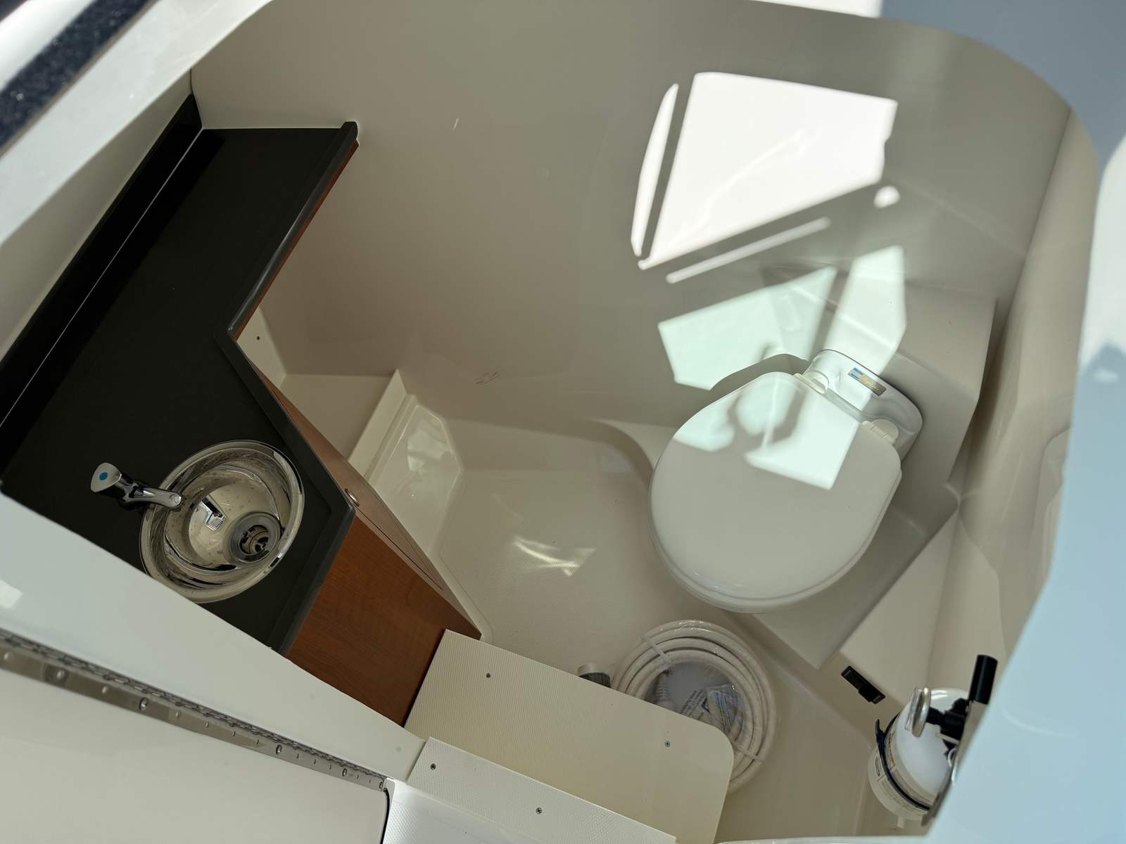 The Pursuit DC 306 is packed with premium features that enhance both functionality and comfort. At the helm, you’ll find a state-of-the-art Garmin widescreen 12" display package, complemented by a second Garmin 12" widescreen display. These advanced electronics provide crystal-clear navigation, fish-finding capabilities, and system monitoring, ensuring you are always in control and informed on the water. The black canvas and bow tonneau cover not only add to the boat’s sleek aesthetic but also provide essential protection from the elements.For those who appreciate convenience and luxury, the DC 306 includes a 120V/60Hz 30 amp dockside power system with cord, allowing you to easily connect to shore power and keep all your onboard systems running smoothly. The 12v 2.3 cubic foot refrigerator/freezer, crafted from stainless steel, ensures your refreshments and snacks stay chilled and ready for any occasion. Every detail, from the stainless steel accents to the thoughtfully designed storage spaces, reflects Pursuit’s dedication to quality and user-friendly design.