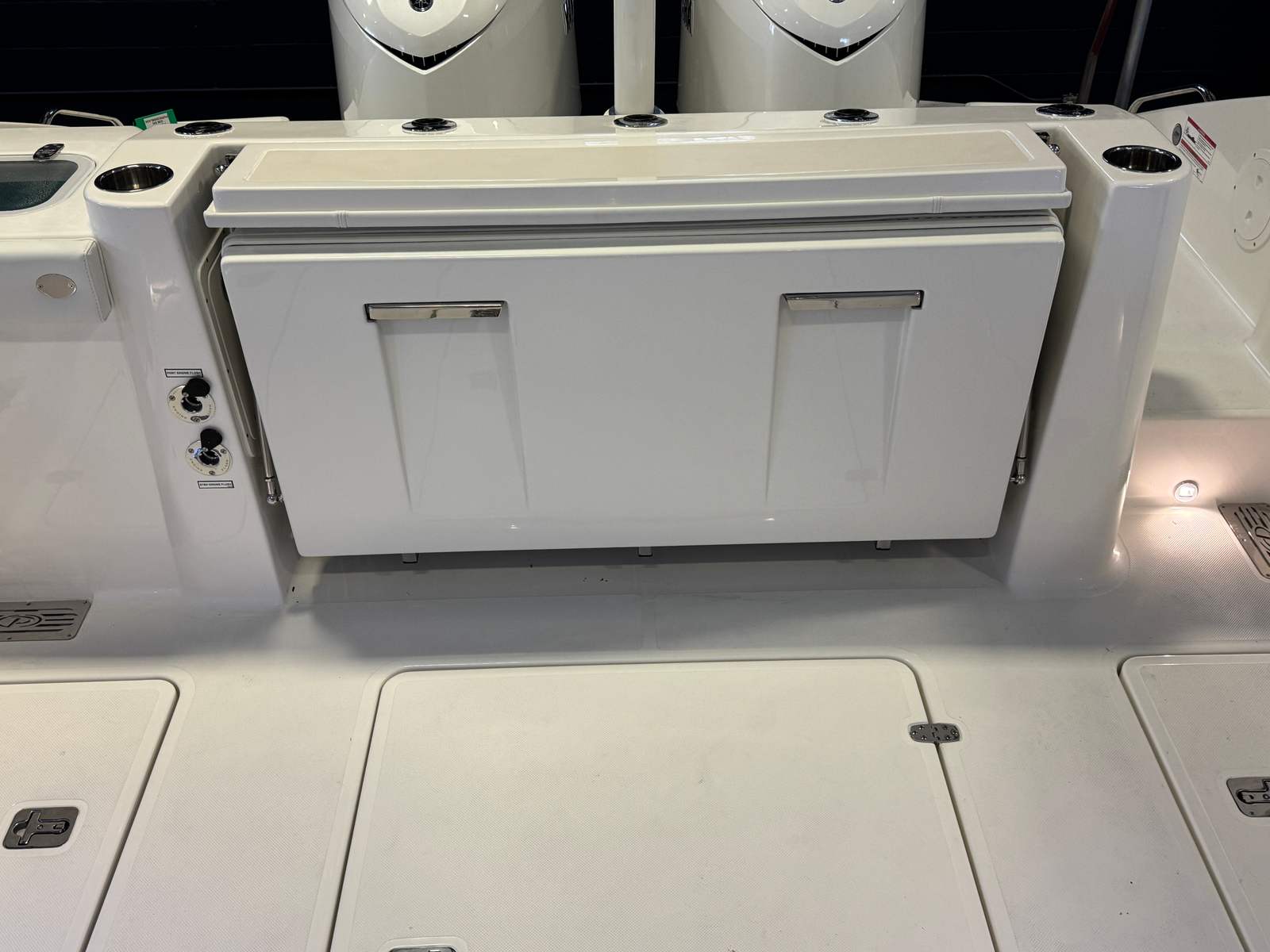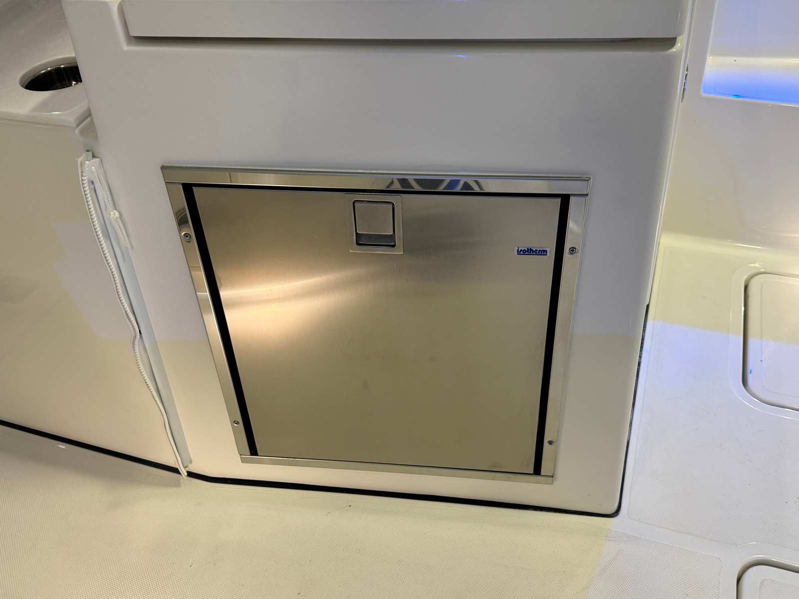 The 2026 Pursuit DC 326 is loaded with premium features that enhance both comfort and convenience. The Multifunction Display Interface keeps you informed and in control, while the manual engine flushing system ensures easy maintenance and longevity for your Yamaha engines. Entertain your guests in style with the bridge deck teak table, which offers both elegance and practicality, and can be conveniently stored when not in use. The custom retractable Makefast sunshade with one-touch operation provides instant relief from the sun, allowing you to create the perfect environment for relaxation or socializing at the touch of a button.For those who appreciate climate control, the air conditioning package with reverse cycle offers 6,000 BTU for the cabin and head, and a powerful 12,000 BTU for the cockpit (requires drop curtain), ensuring comfort no matter the weather. The 12V, 1.7 cu. ft. cooler with chill plate under the aft-facing seat keeps your refreshments perfectly chilled, making it easy to enjoy cold drinks and snacks throughout your day on the water.