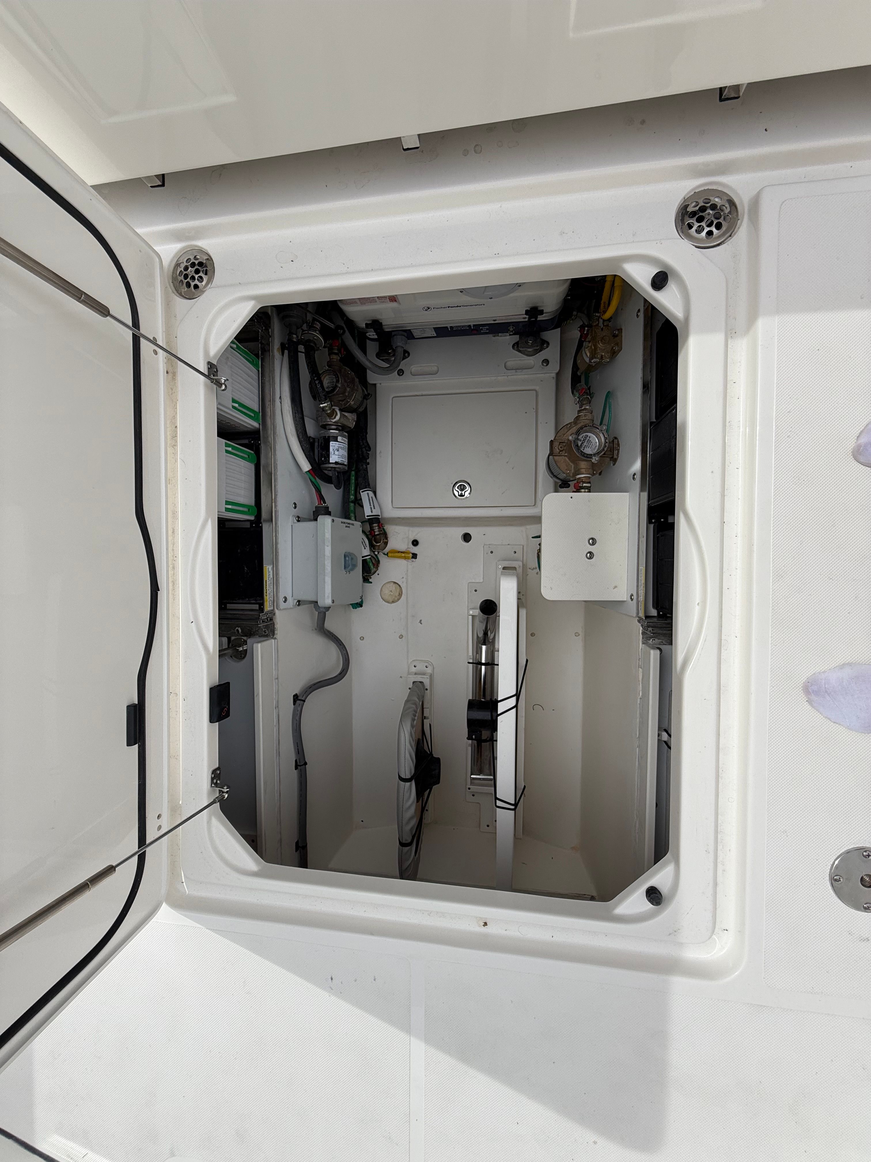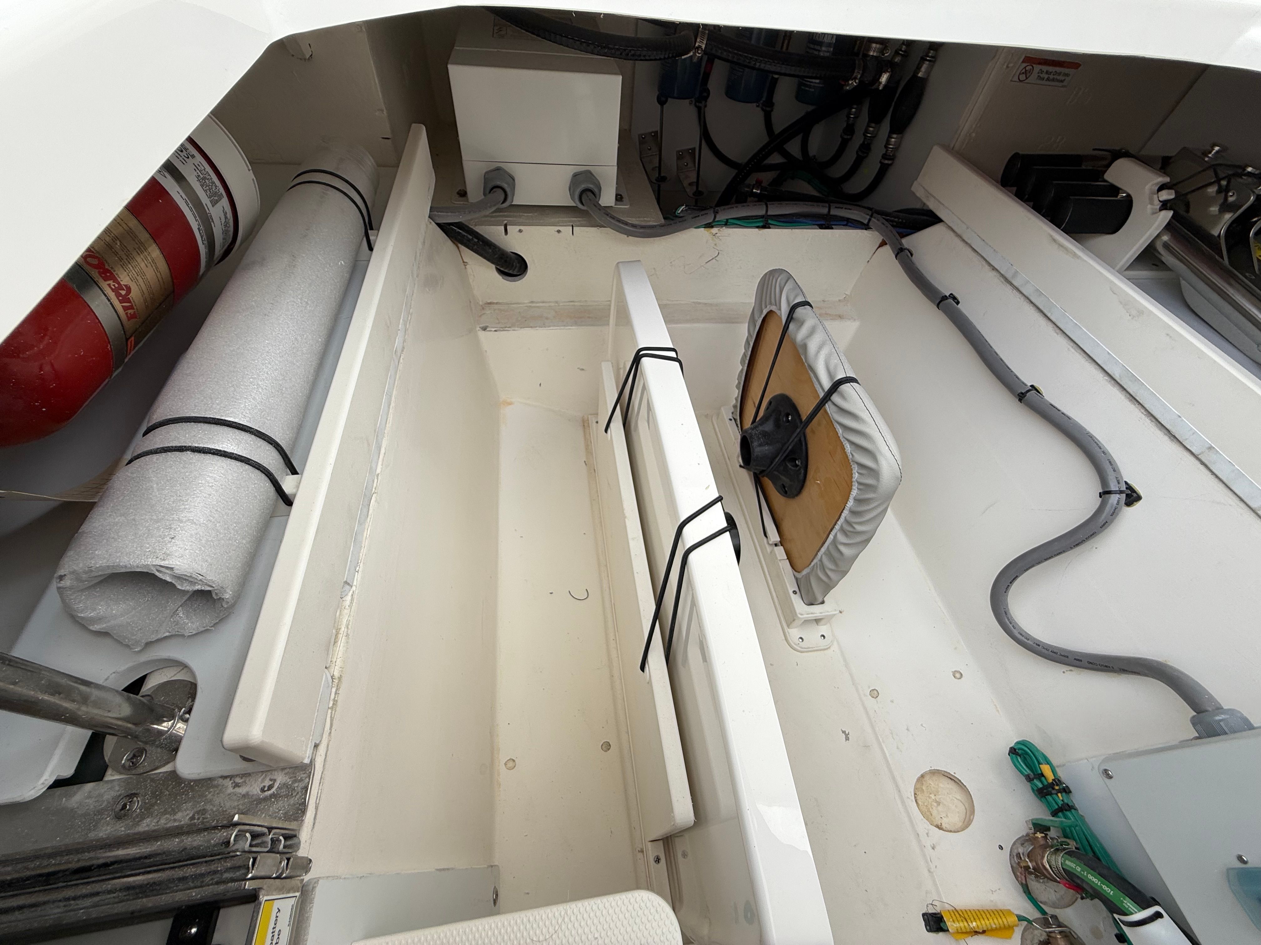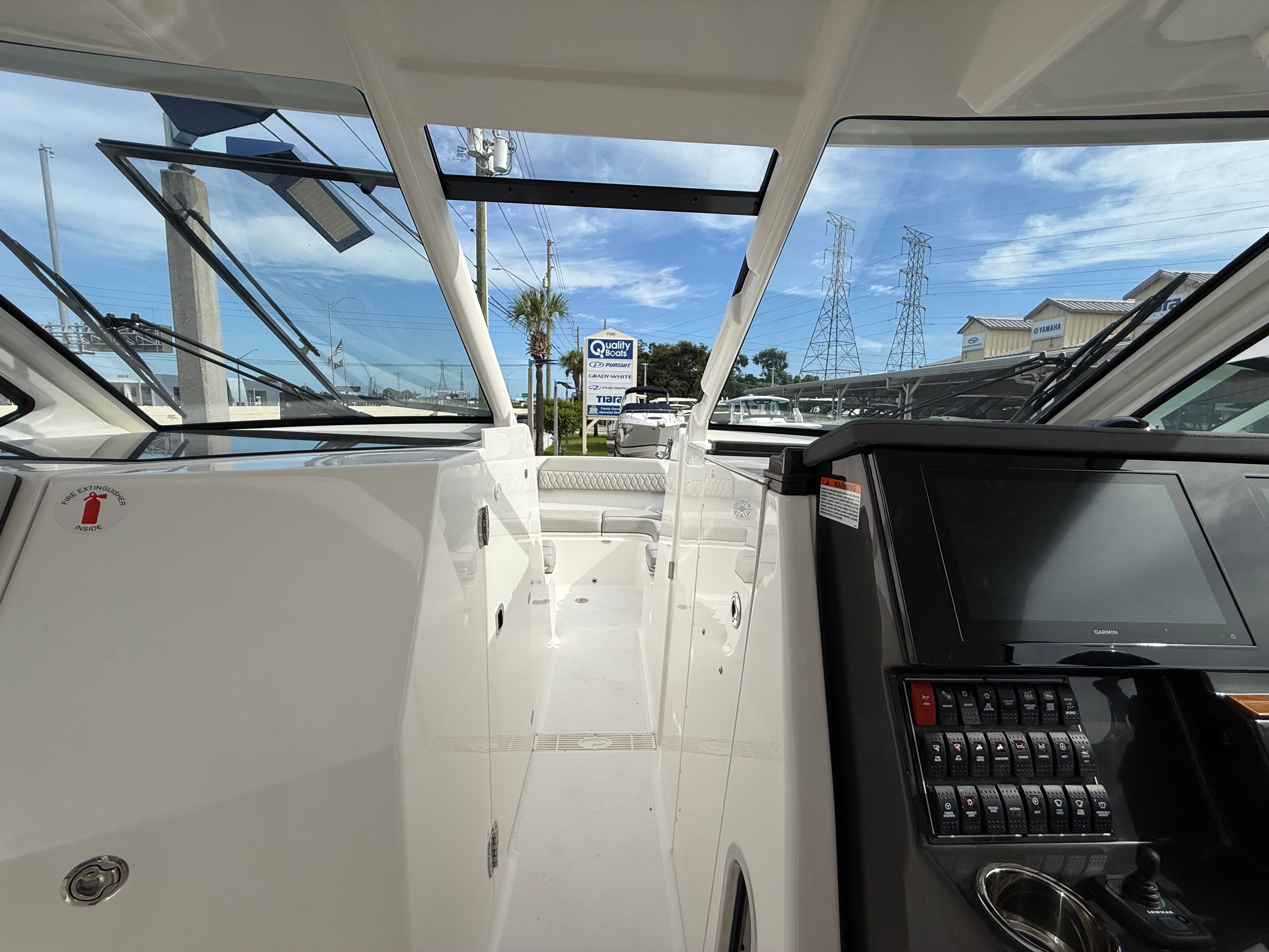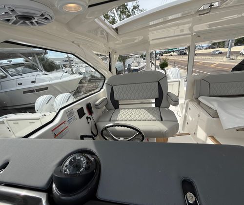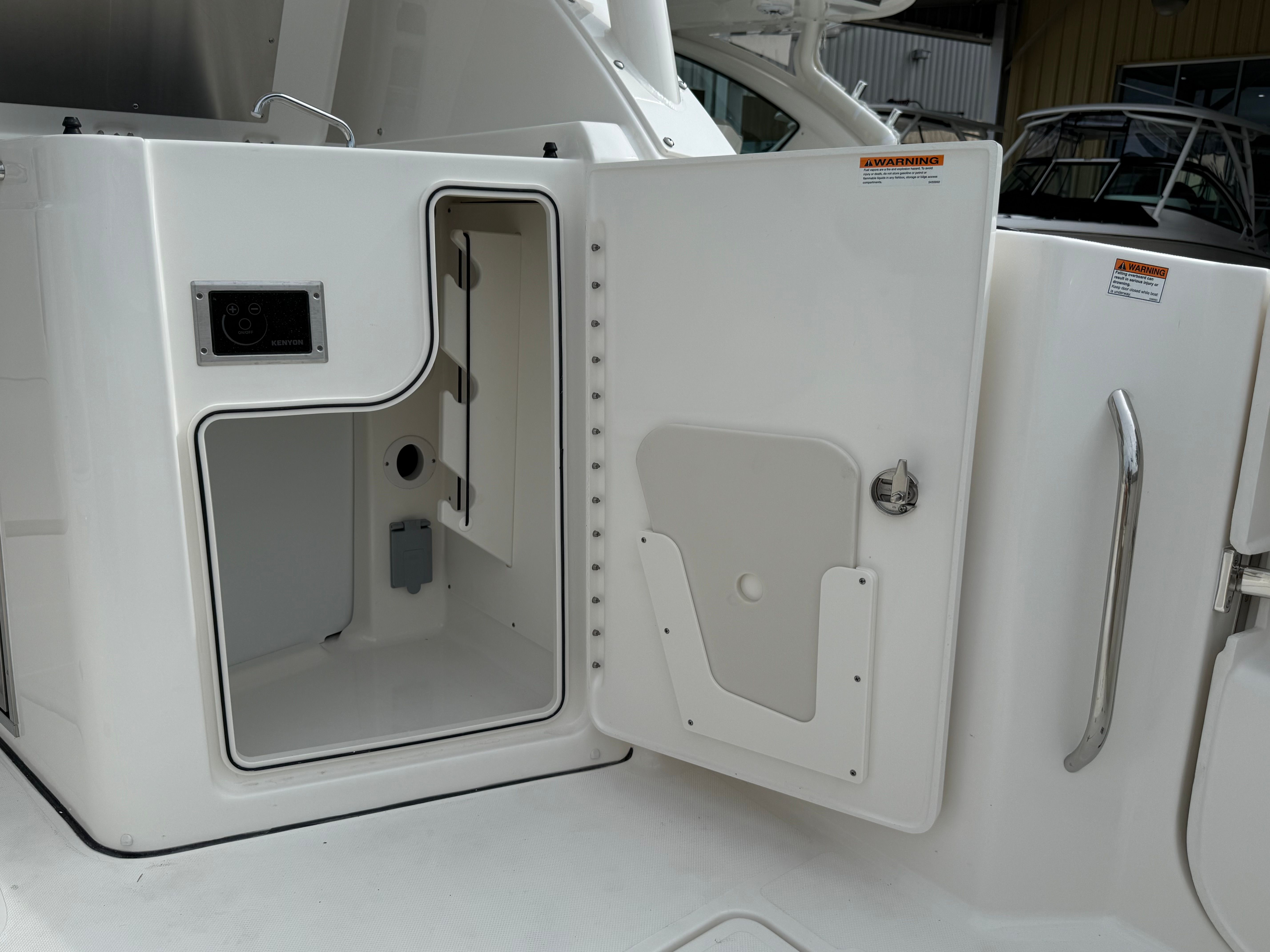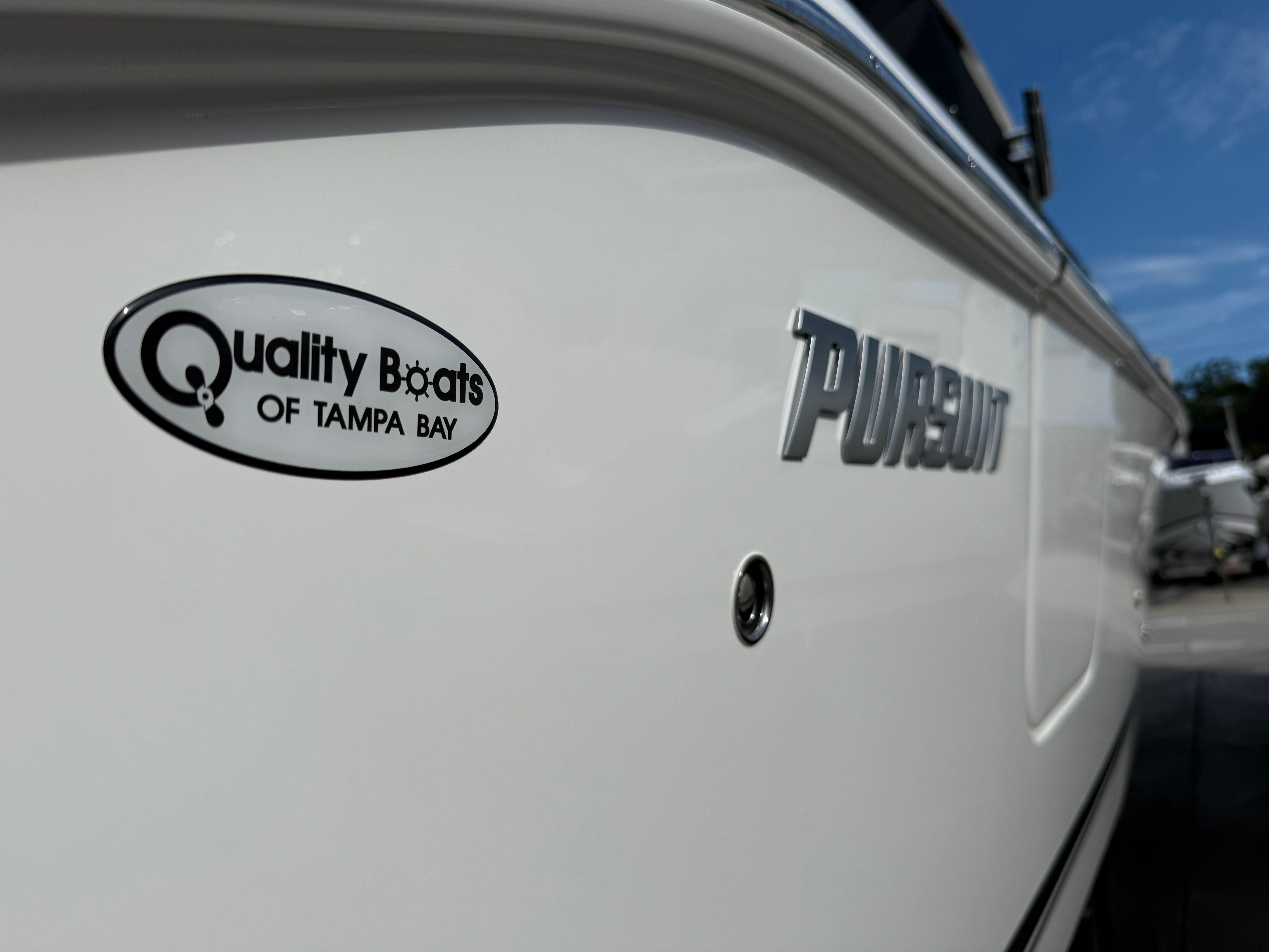 The Pursuit DC 365 is loaded with premium features designed to enhance your time on the water. The Fresh White hull with Black boot stripe and accent gives the boat a modern, elegant look, while the Carbon helm and footrest add a touch of sophistication to the command center. The interior, finished in Tranquil Sea, creates a serene atmosphere, perfect for unwinding after a day of adventure.Comfort is paramount, with a powerful 240V/60HZ 16,000 BTU air conditioning system in the cockpit, ensuring you and your guests stay cool even on the hottest days. Entertainment is elevated with an upgraded amp and speakers featuring zone control and Sirius, allowing you to set the perfect mood for any occasion. The forward poly table with sunpad filler and cushion provides a versatile space for dining, lounging, or sunbathing, while the bridgedeck teak table with storage adds a touch of luxury and practicality.Navigation and control are effortless thanks to the Garmin widescreen 16" display package, offering cutting-edge technology for chart plotting, fish finding, and system monitoring. Every feature is thoughtfully integrated to maximize convenience, safety, and enjoyment, making this Pursuit boat for sale a standout in its class.