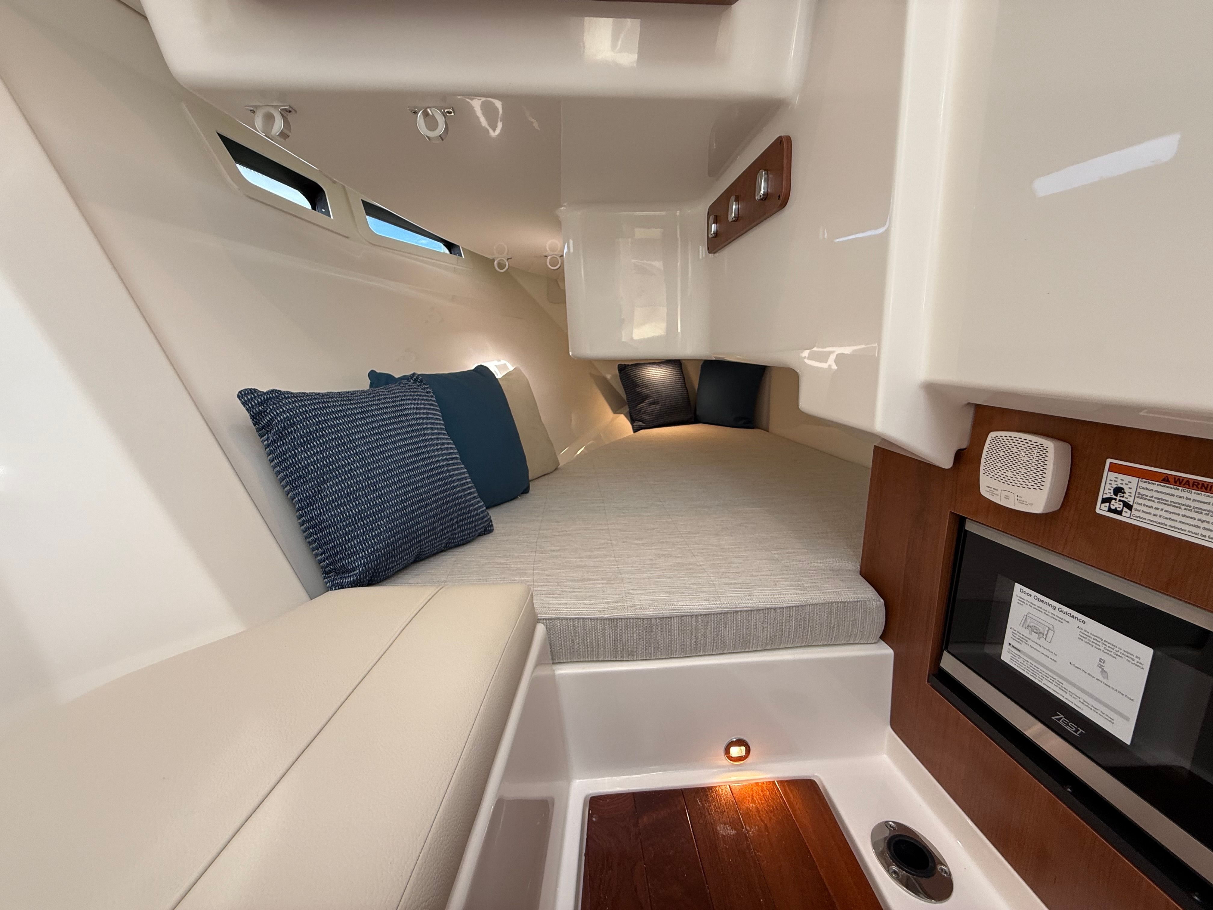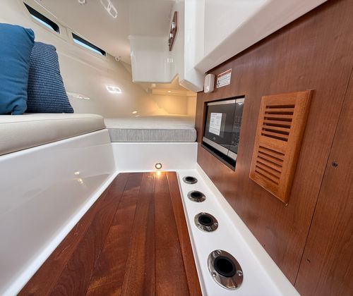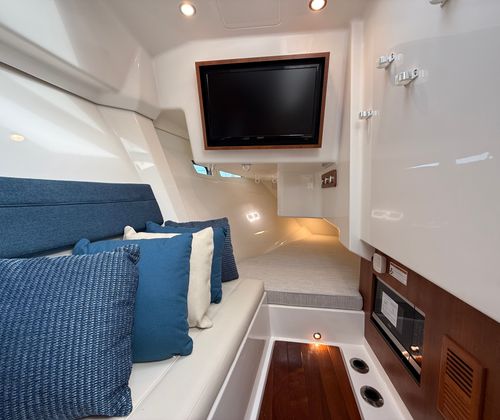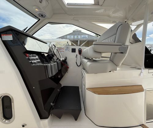 The Pursuit DC 365 is as practical as it is luxurious. Its generous length and smart layout offer ample storage for gear, supplies, and personal items, keeping the deck clutter-free and organized. Docking is simplified by the boat’s responsive handling and advanced navigation systems, making it easy to maneuver in tight spaces or busy marinas.Fuel efficiency is enhanced by the modern Yamaha engines, allowing you to spend more time on the water and less time refueling. The integrated tables and storage solutions make entertaining effortless, while the air-conditioned cockpit ensures comfort during long days at sea. Whether you’re planning a fishing trip, a family picnic, or a sunset cruise, the DC 365 adapts to your needs, providing a seamless and enjoyable boating experience.