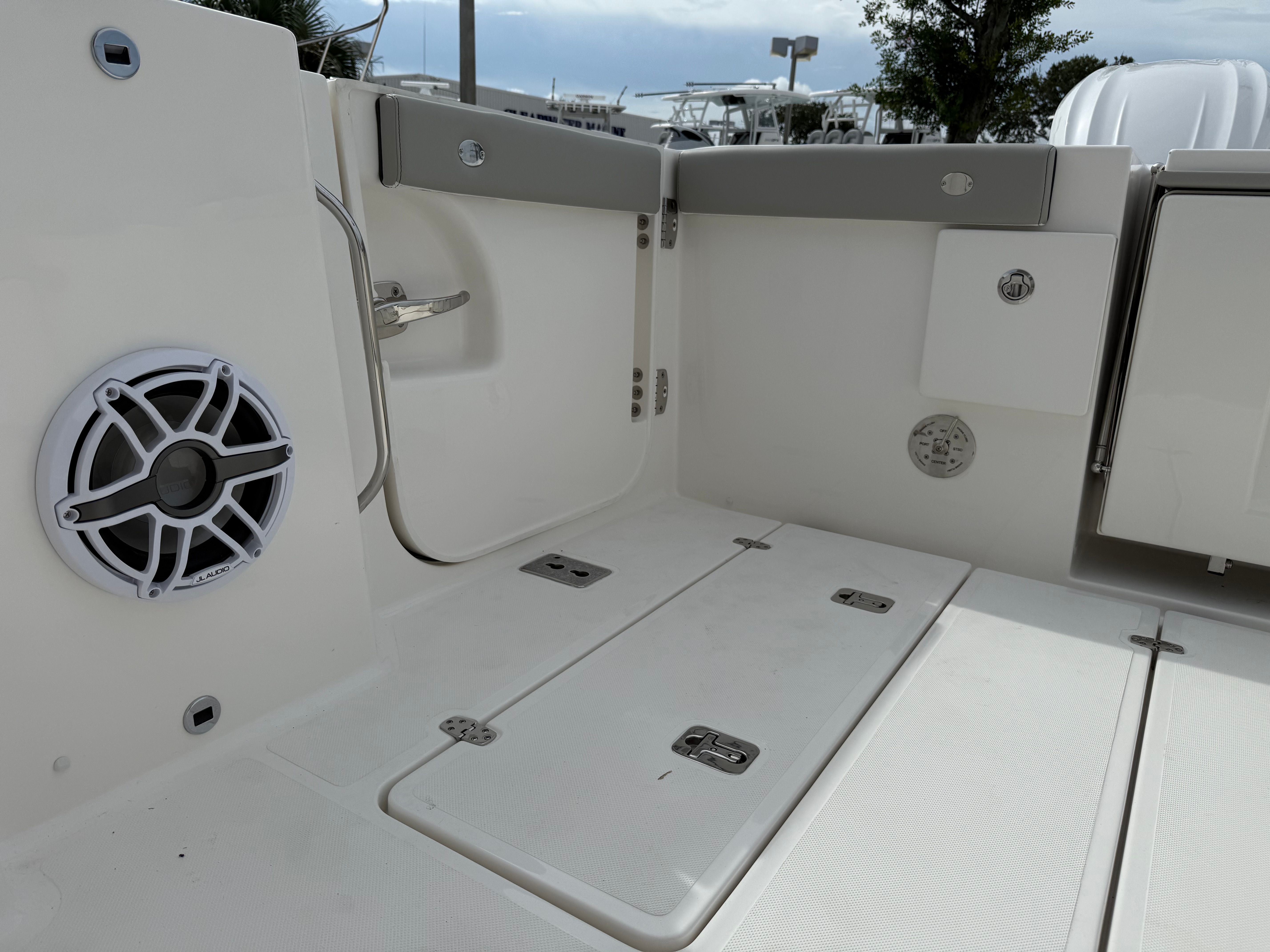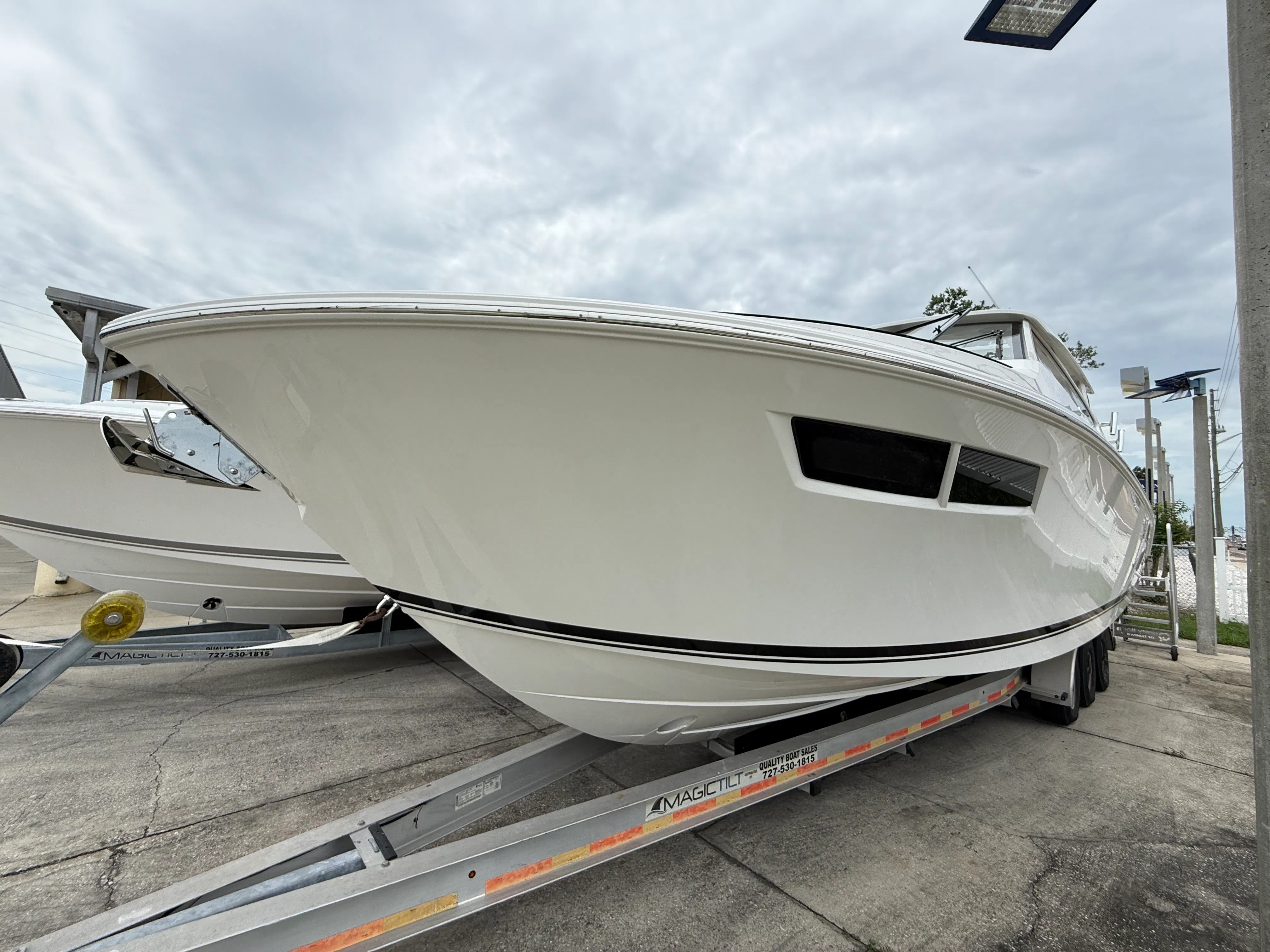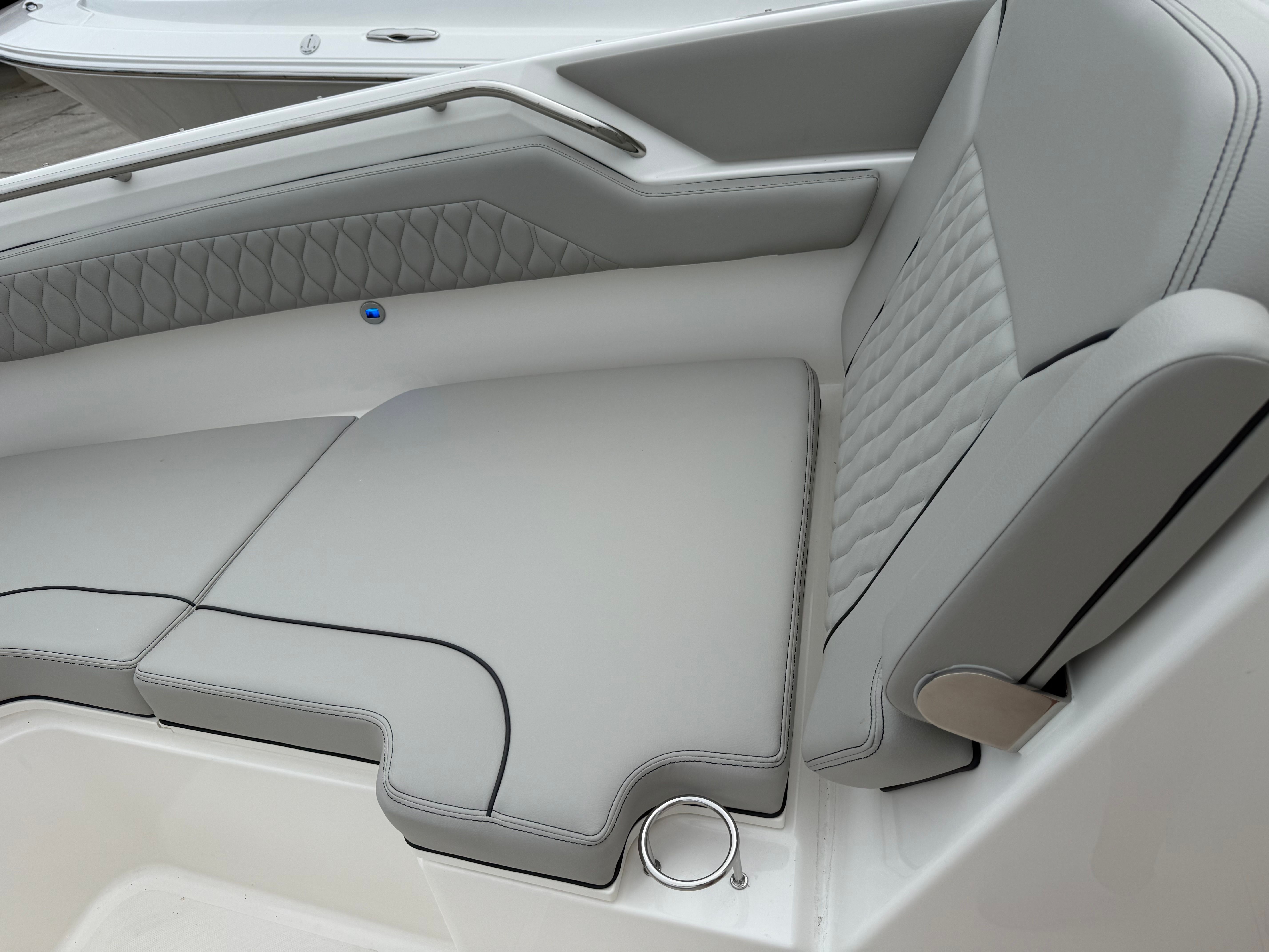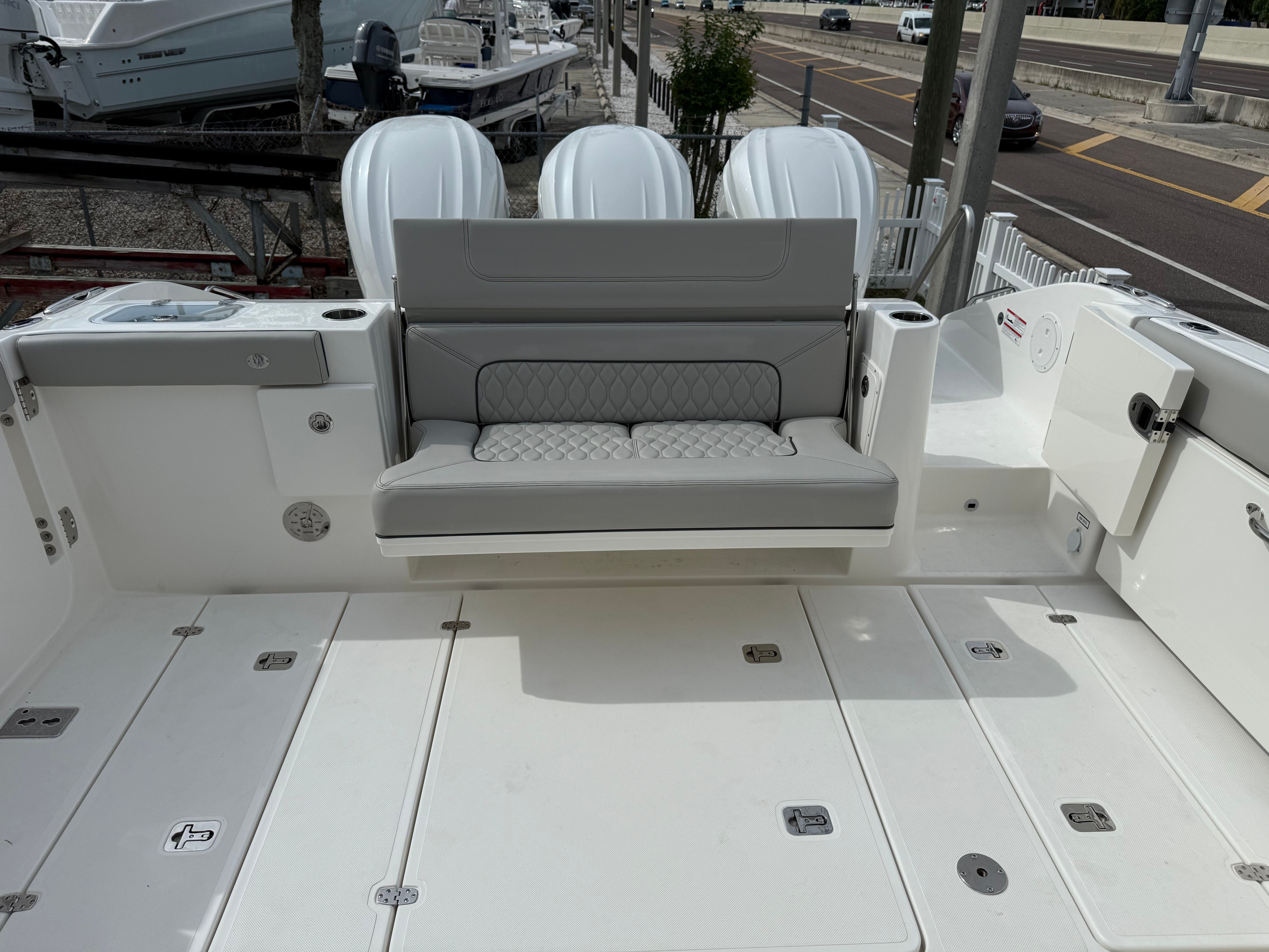 Powering the Pursuit DC 365 are three formidable Yamaha F350 engines, delivering a combined 1,050 horsepower. This triple-engine setup ensures exhilarating acceleration, smooth cruising, and reliable performance in various conditions. Whether you’re heading out for a day of fishing or planning a weekend getaway, the DC 365’s robust powertrain provides the confidence and capability to tackle open waters with ease. The advanced engineering behind the Yamaha F350 engines guarantees efficiency, durability, and low maintenance, making this Dual Console boat for sale a smart investment for those who value both power and peace of mind.