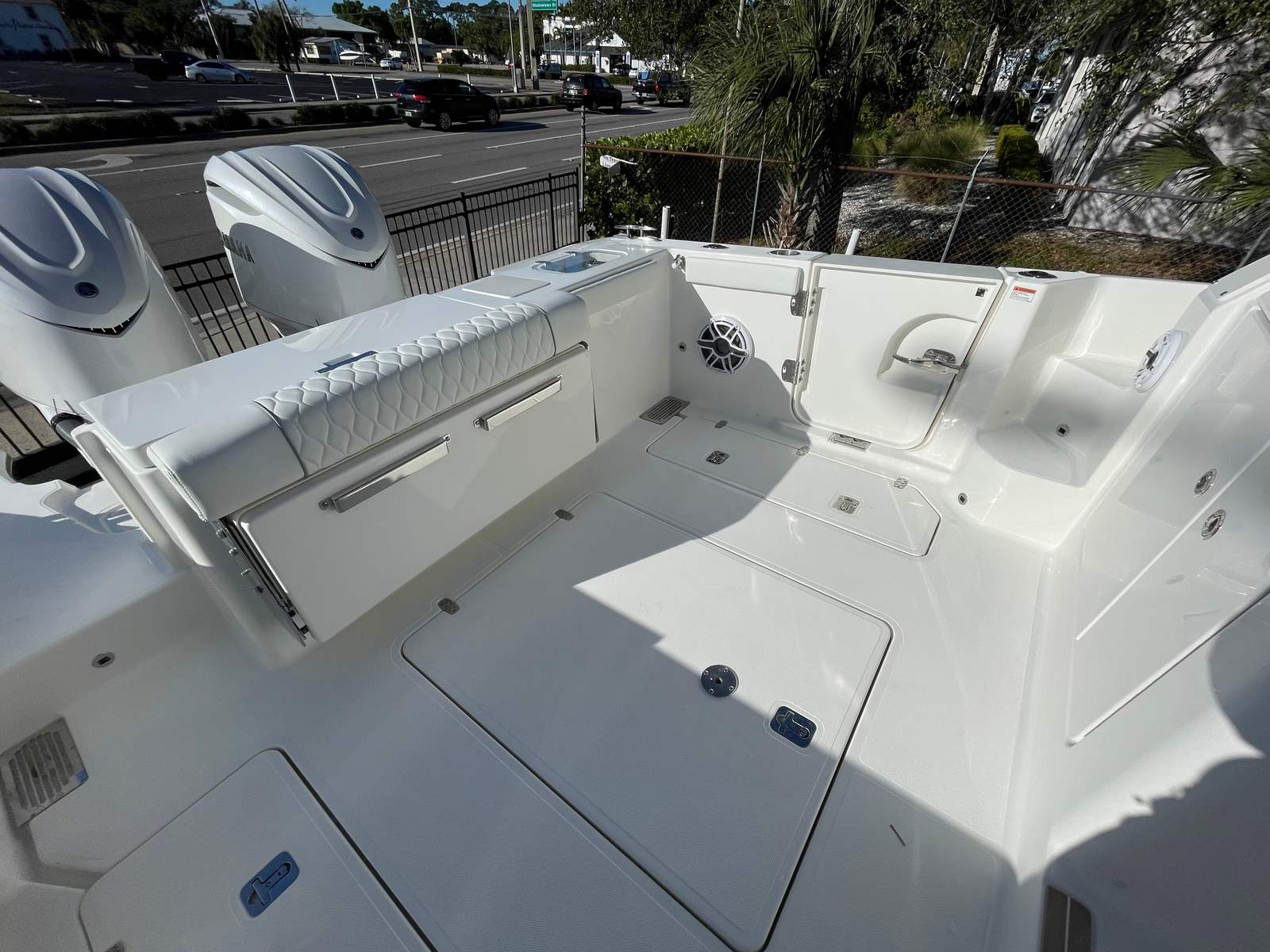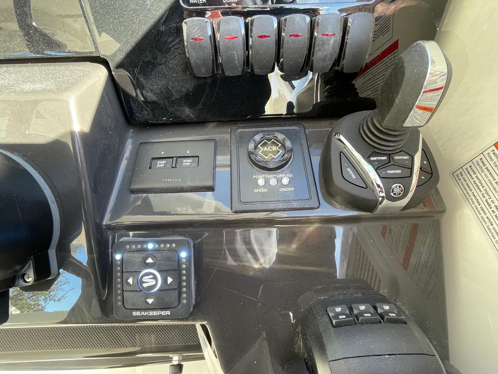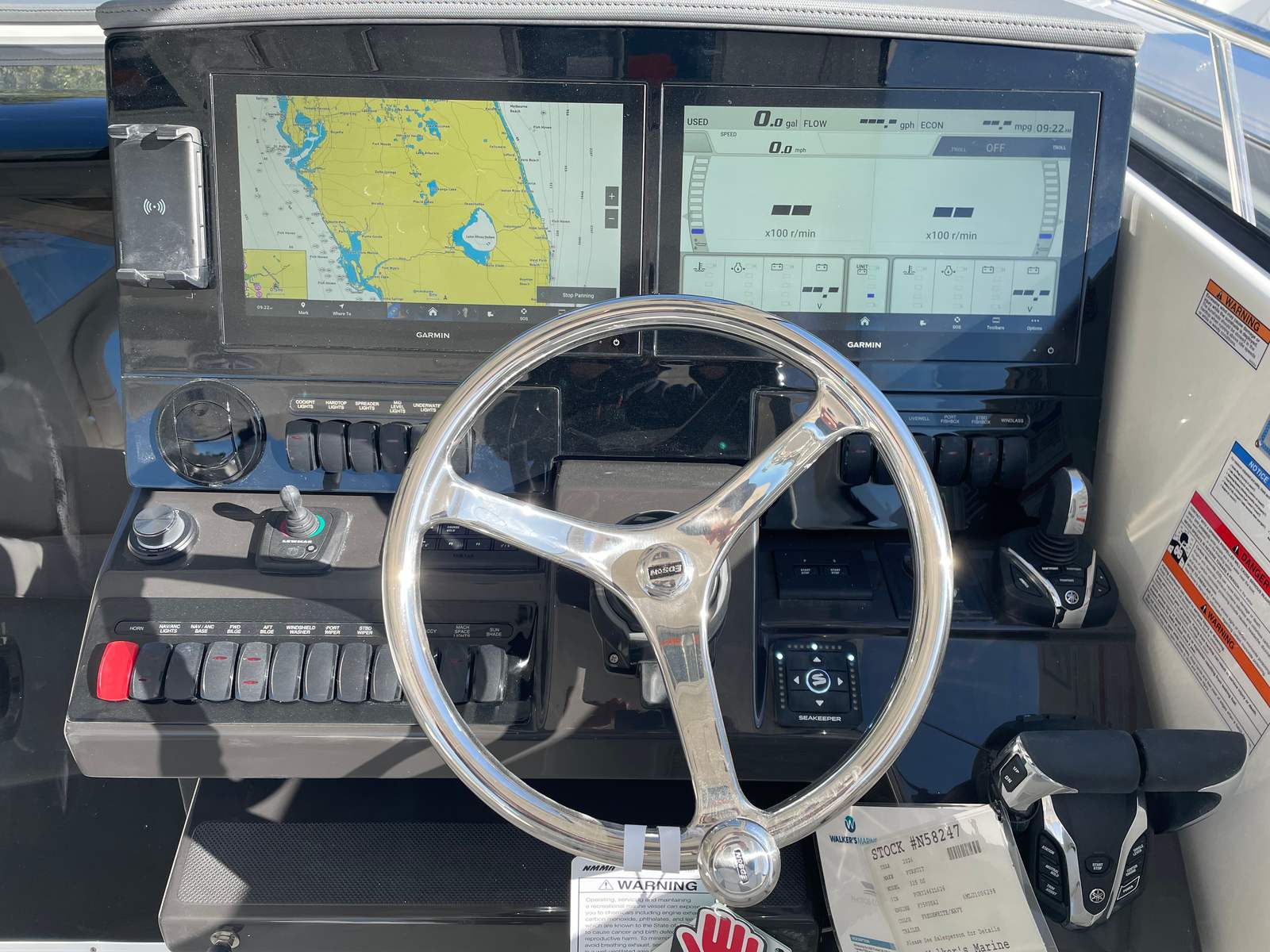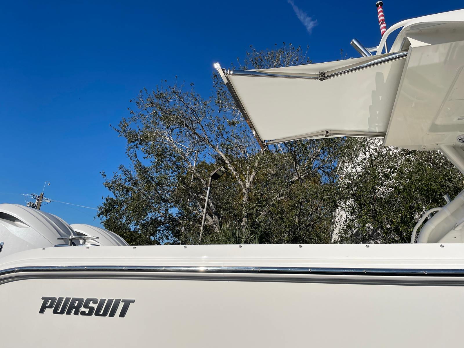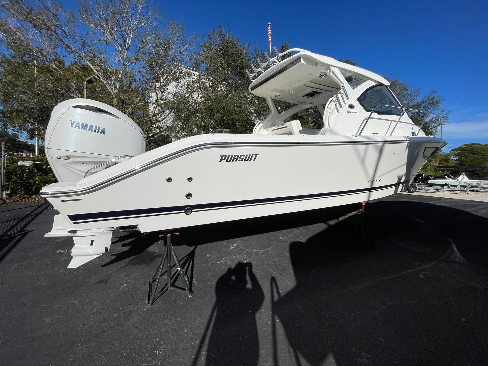The Pursuit OS 325 is as practical as it is luxurious. Its thoughtful design includes ample storage for gear, supplies, and personal items, keeping the deck clutter-free and organized. The boat’s manageable length of 34.5 feet strikes the perfect balance between spaciousness and ease of handling, making it ideal for both seasoned captains and newcomers alike. The efficient twin Yamaha engines not only deliver impressive performance but also contribute to fuel efficiency, allowing you to spend more time exploring and less time refueling.Docking is a breeze thanks to the Yamaha Joystick Control, which provides precise control in tight spaces and crowded marinas. The generator and diesel tank offer peace of mind during extended trips, ensuring you have the power you need for all your onboard systems. The climate-controlled cabin adds another layer of comfort, making the OS 325 a versatile choice for a wide range of activities and weather conditions.