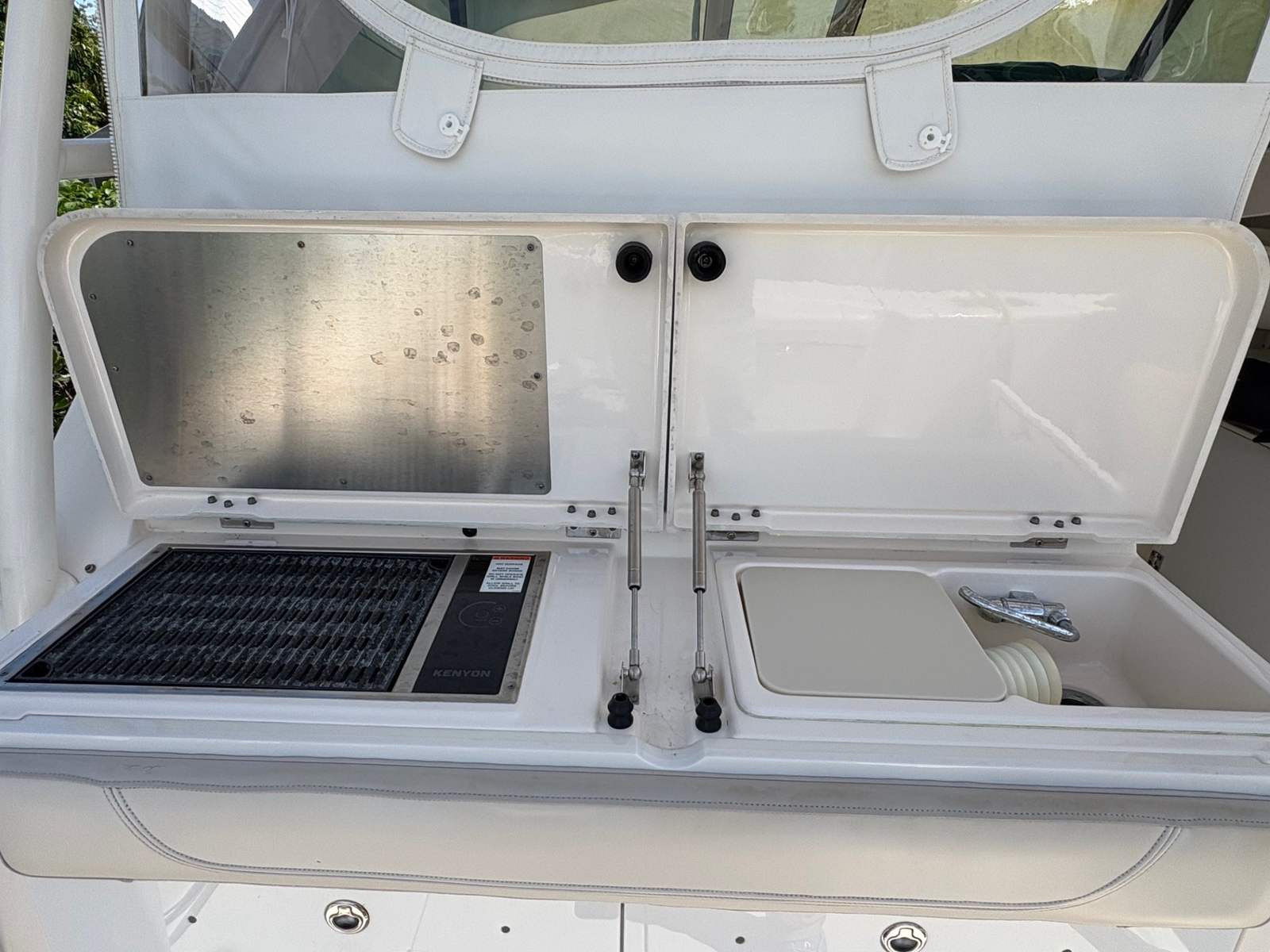 Powering the Pursuit OS 345 are two high-performance engines, delivering a combined 700 horsepower. With only 360 engine hours, these engines offer reliability and plenty of life for future adventures. The twin-engine setup ensures smooth acceleration, responsive handling, and the confidence to tackle a variety of water conditions. Whether you’re cruising along the coastline, heading to your favorite fishing spot, or embarking on a weekend getaway, the OS 345’s power and agility make every journey enjoyable.