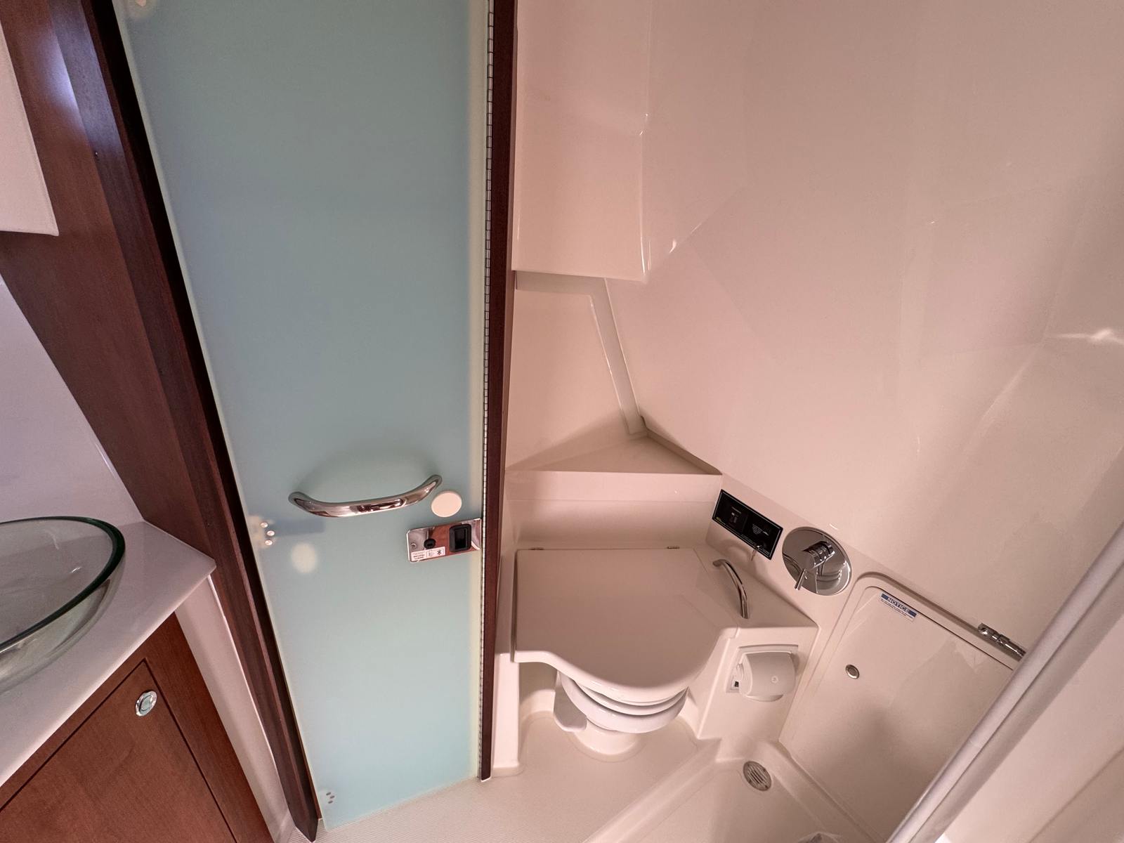 Step aboard the Pursuit OS 355 and you’ll immediately notice its thoughtful design and luxurious amenities. The helm features a sleek carbon finish, offering a modern and ergonomic command center for the captain. The interior, styled in Tranquil Sea, creates a serene and inviting atmosphere, perfect for relaxing after a day of adventure. The bridgedeck teak table, complete with dedicated storage, provides a versatile space for dining, socializing, or simply enjoying the view.Comfort is paramount on this cruiser, thanks to the cockpit air conditioning with reverse cycle heat (240V / 60Hz, 16,000 BTU), ensuring a pleasant environment no matter the weather. The custom hardtop boasts an integrated stainless steel electric retractable Makefast sunshade with one-touch operation, allowing you to effortlessly adjust your exposure to the sun. For those who love to bask in the sunshine, the forward deck sunpad offers a luxurious spot to unwind, while the folding gunwale seat on the starboard side adds flexible seating options for guests.