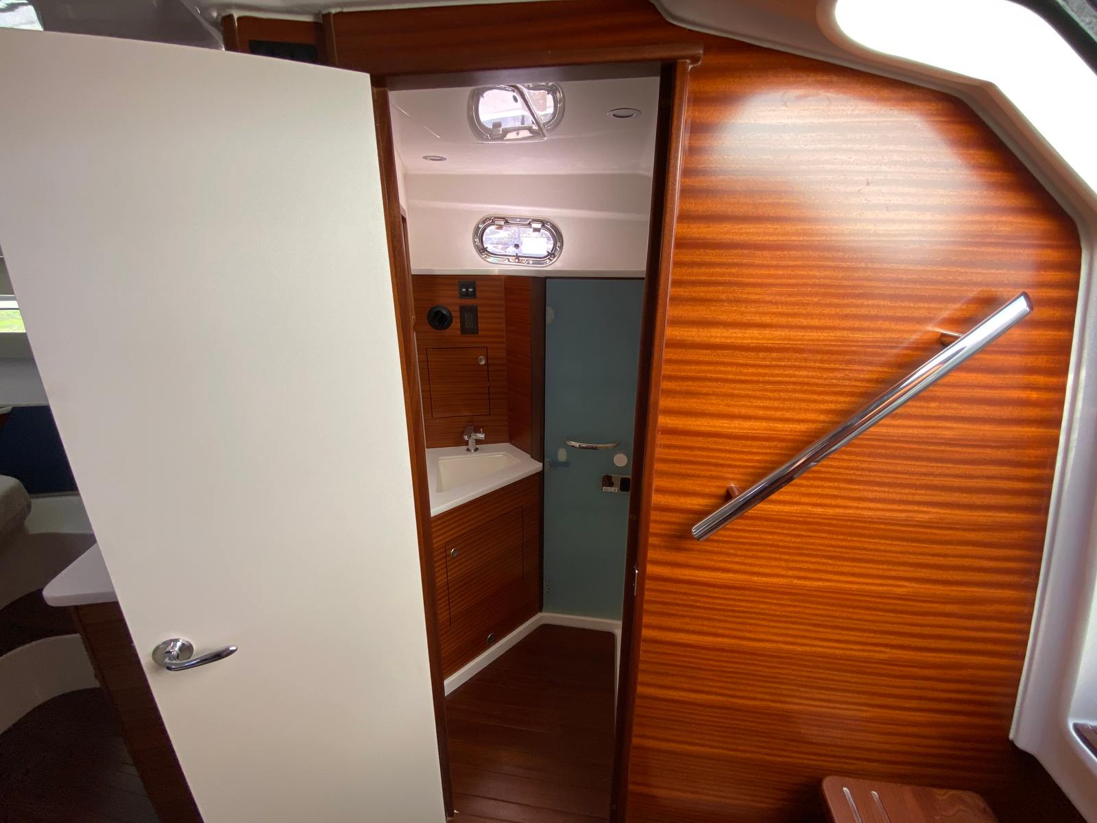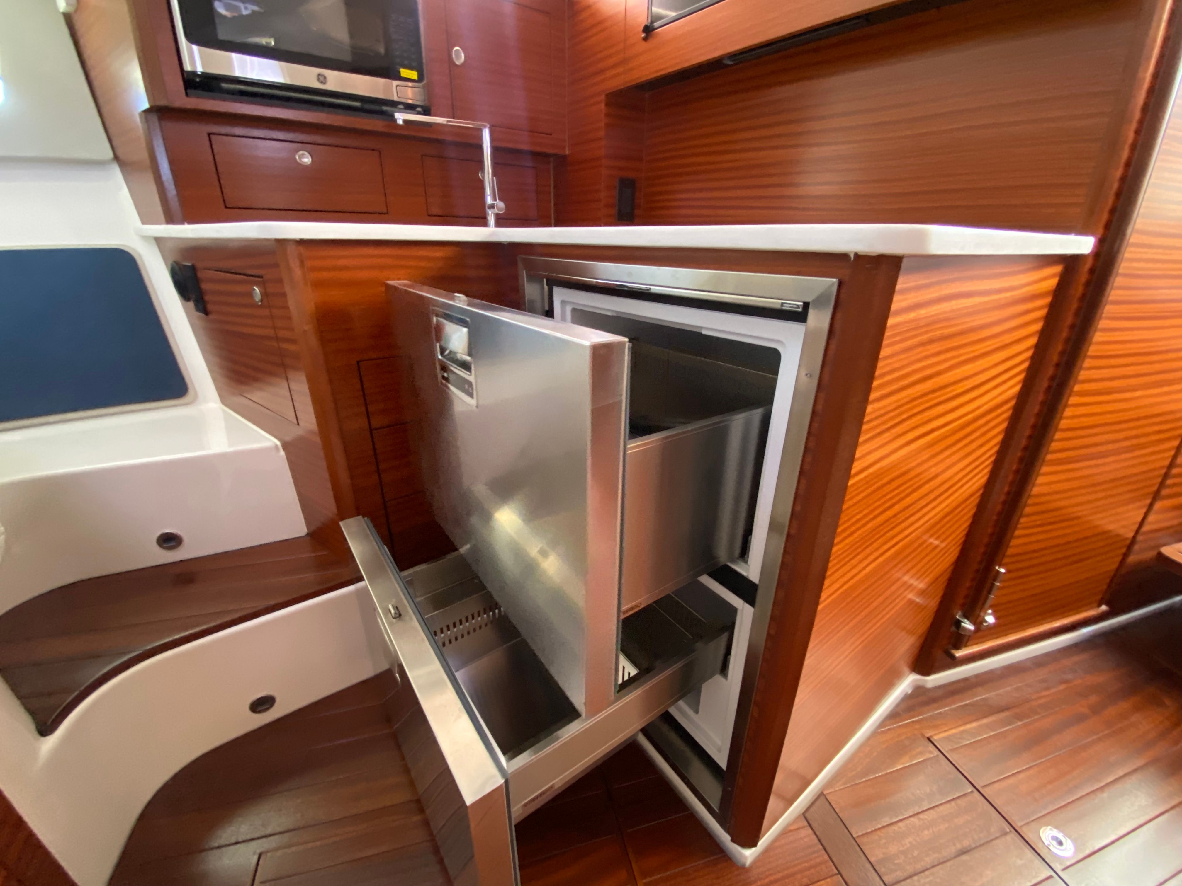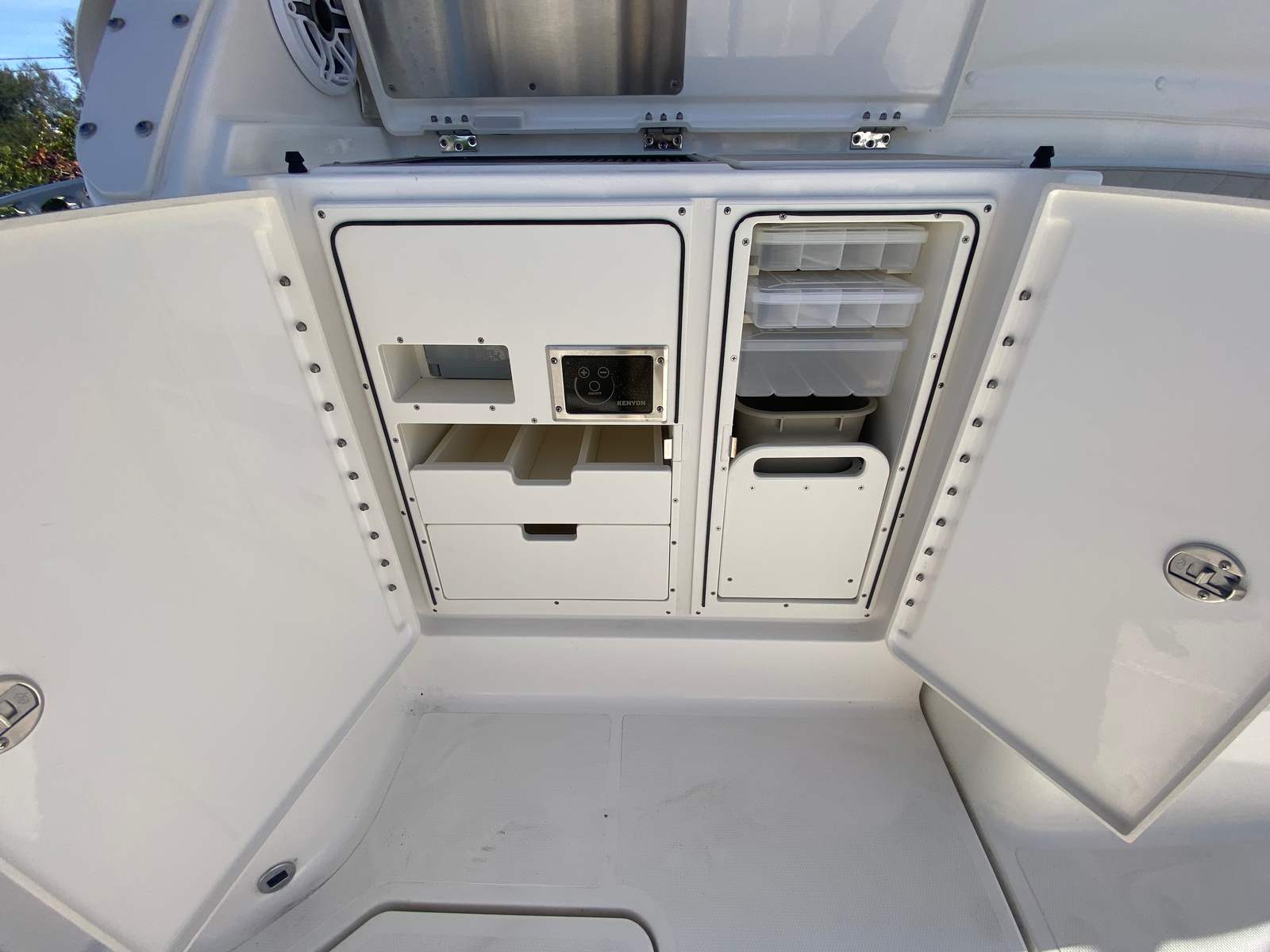 Practicality meets elegance in the Pursuit OS 405. The thoughtfully designed cockpit and helm area make docking and maneuvering straightforward, even in busy marinas or tight spaces. The advanced Garmin electronics suite simplifies navigation and enhances safety, while the aft-facing camera provides added visibility when backing into slips or monitoring activity on the swim platform.Storage is abundant throughout the vessel, allowing you to bring along all the gear, supplies, and personal items you need for extended trips. The efficient triple-engine configuration not only delivers impressive speed but also optimizes fuel consumption, making longer journeys more economical. The retractable cockpit sunshade and protective side curtains ensure you can make the most of your time on the water, regardless of the weather.