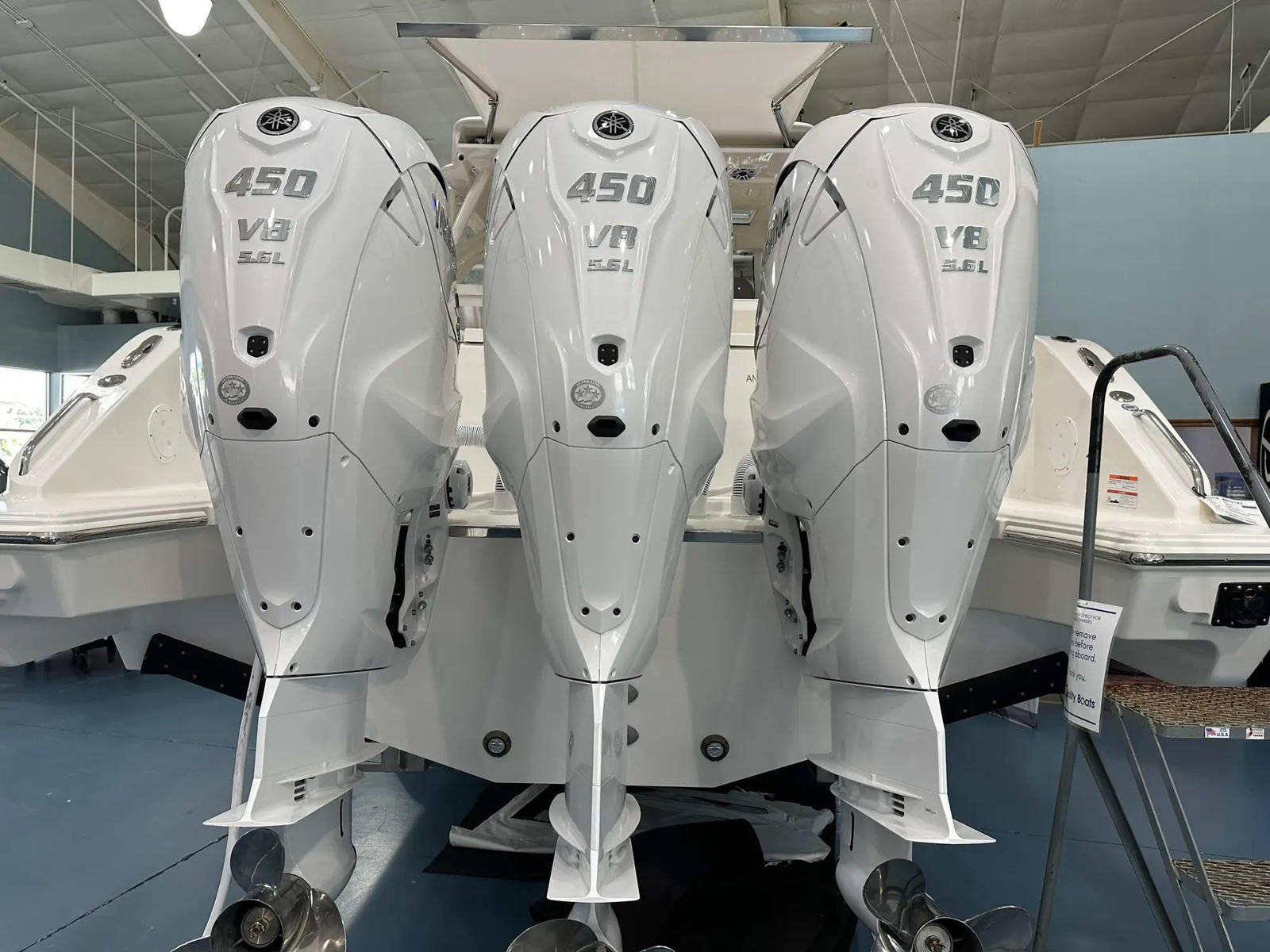 Power and precision define the Pursuit OS 405’s performance. Equipped with three robust engines delivering a combined 1350 horsepower, this cruiser is built for exhilarating speed and smooth handling. Whether you are cruising along the coastline, heading offshore for a fishing expedition, or simply enjoying a sunset ride, the OS 405 offers responsive acceleration and steady maneuverability. The triple-engine setup ensures you have the power to tackle a variety of water conditions with confidence, while also providing the reliability and efficiency that Pursuit boats are known for.