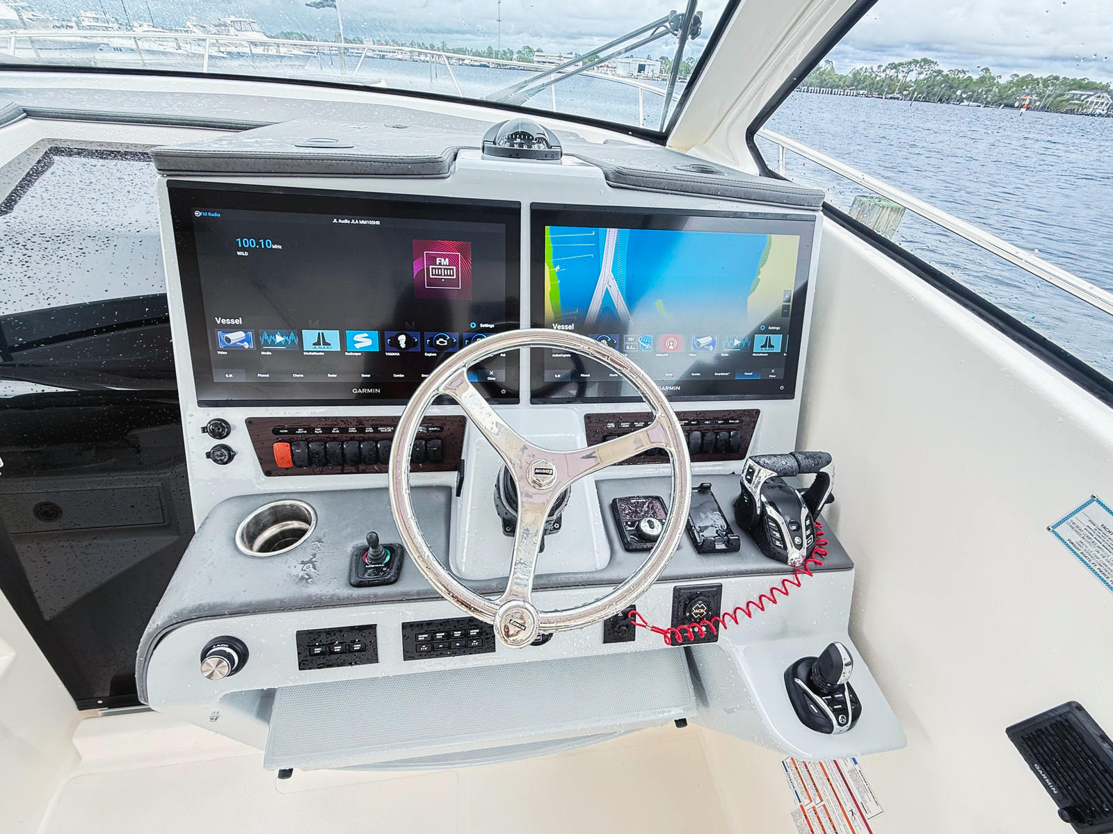 - Triple Yamaha® Digital 450 XTO (Pearlescent White) w/Integrated Electric Steering (DES), Helm Master® EX Digital Electronic Control (DEC) and Yamaha® Joystick Control with Full Maneuverability (Set PointTM and Autopilot), Multifunction Display Interface, Manual Engine Flushing System