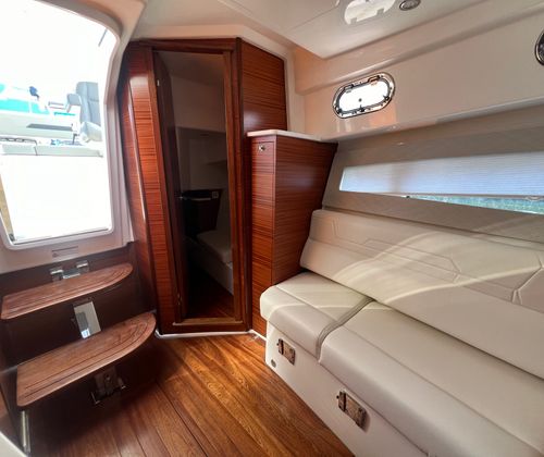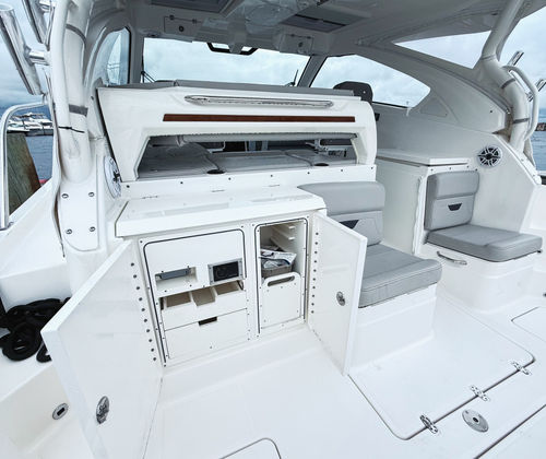 Owning the Pursuit OS 405 means embracing a lifestyle of fun, relaxation, and adventure. This cruiser is designed for those who love to entertain, with spacious decks and comfortable seating that invite friends and family to gather and create lasting memories. The advanced entertainment system ensures your favorite music sets the perfect mood, while the underwater LED lights transform every evening into a celebration.The OS 405’s thoughtful layout and premium finishes provide a luxurious environment for both short excursions and extended trips. Whether you are sunbathing on deck, enjoying a meal in the cockpit, or simply taking in the views, every moment aboard this Pursuit boat for sale is elevated by its attention to detail and commitment to comfort.