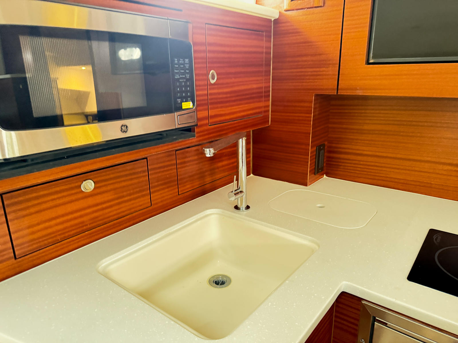 Powering the Pursuit OS 405 are three high-performance engines, delivering a combined 1,350 horsepower. This impressive setup ensures that you have all the muscle you need for quick acceleration, smooth cruising, and confident handling in a variety of sea conditions. Whether you are navigating coastal waters or heading offshore, the OS 405’s triple-engine configuration provides the speed, agility, and reliability that seasoned boaters expect from a premium cruiser. With only 5 hours on the engines, you can enjoy peace of mind knowing that this vessel is virtually brand new and ready for countless adventures.