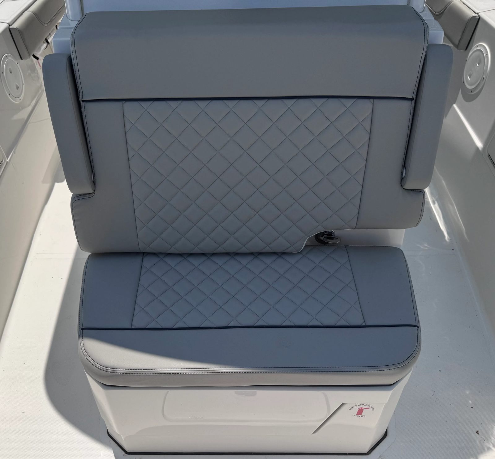 - Premium Helm Seating w/Four (4) Folding Armrests, Articulating Flip-up Bolsters, Upgraded Seat Slide with Fore/Aft Adjustments, and Edson® 316L SS Steering Wheel with Control Knob and Non-Slip Grip