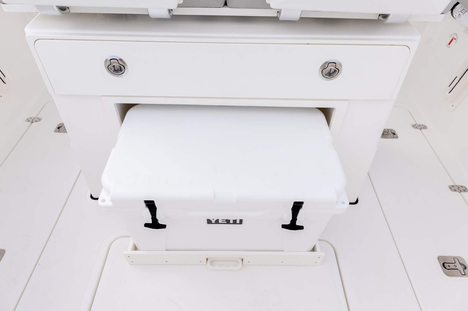 The Pursuit S 248 is loaded with features designed to enhance your time on the water. The Bow Beach Boarding Ladder, complete with a fresh water washdown at the bow (when the Fresh Water System option is selected), makes it easy to transition from sand to deck, keeping your boat clean and comfortable. The Windlass Anchor System with remote operation allows for effortless anchoring, giving you more time to relax and enjoy your surroundings. For added convenience, the electric fresh water head with a 6-gallon holding tank (requires the Fresh Water System option) provides comfort and privacy during extended trips.When the sun sets, the underwater lights—three all-color Sea Blaze Quattro Spectrum units—illuminate the water beneath your boat, creating a mesmerizing ambiance for evening cruises or dockside gatherings. Every detail, from the carbon helm to the Sea Salt upholstery, is crafted for durability, comfort, and visual appeal, ensuring your Pursuit boat stands out in any marina.
