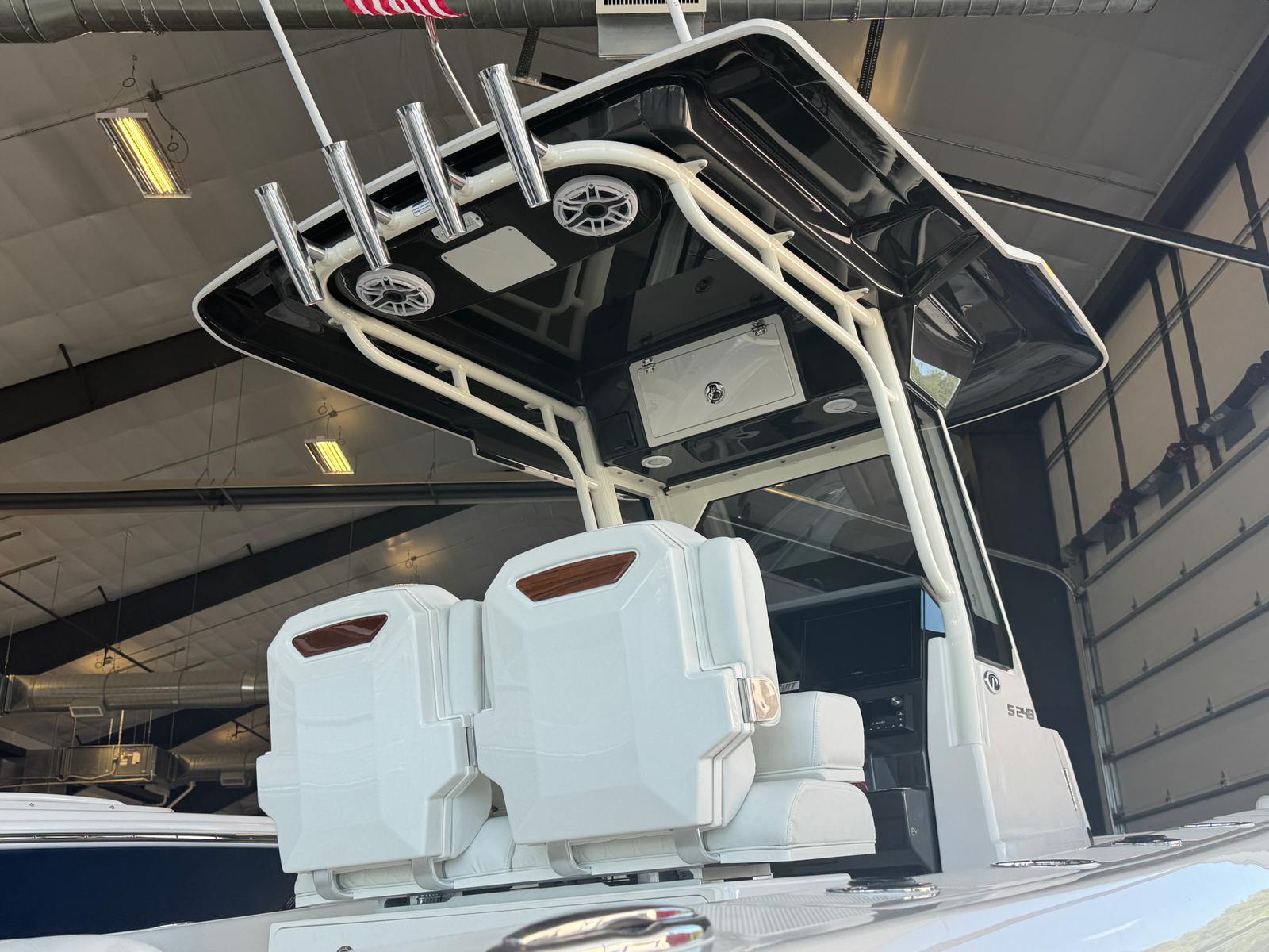 - Premium Helm Seating w/Four (4) Folding Armrests, Articulating Flip-up Bolsters, Upgraded Seat Slide with Fore/Aft Adjustments, and Edson® 316L SS Steering Wheel with Control Knob and Non-Slip Grip