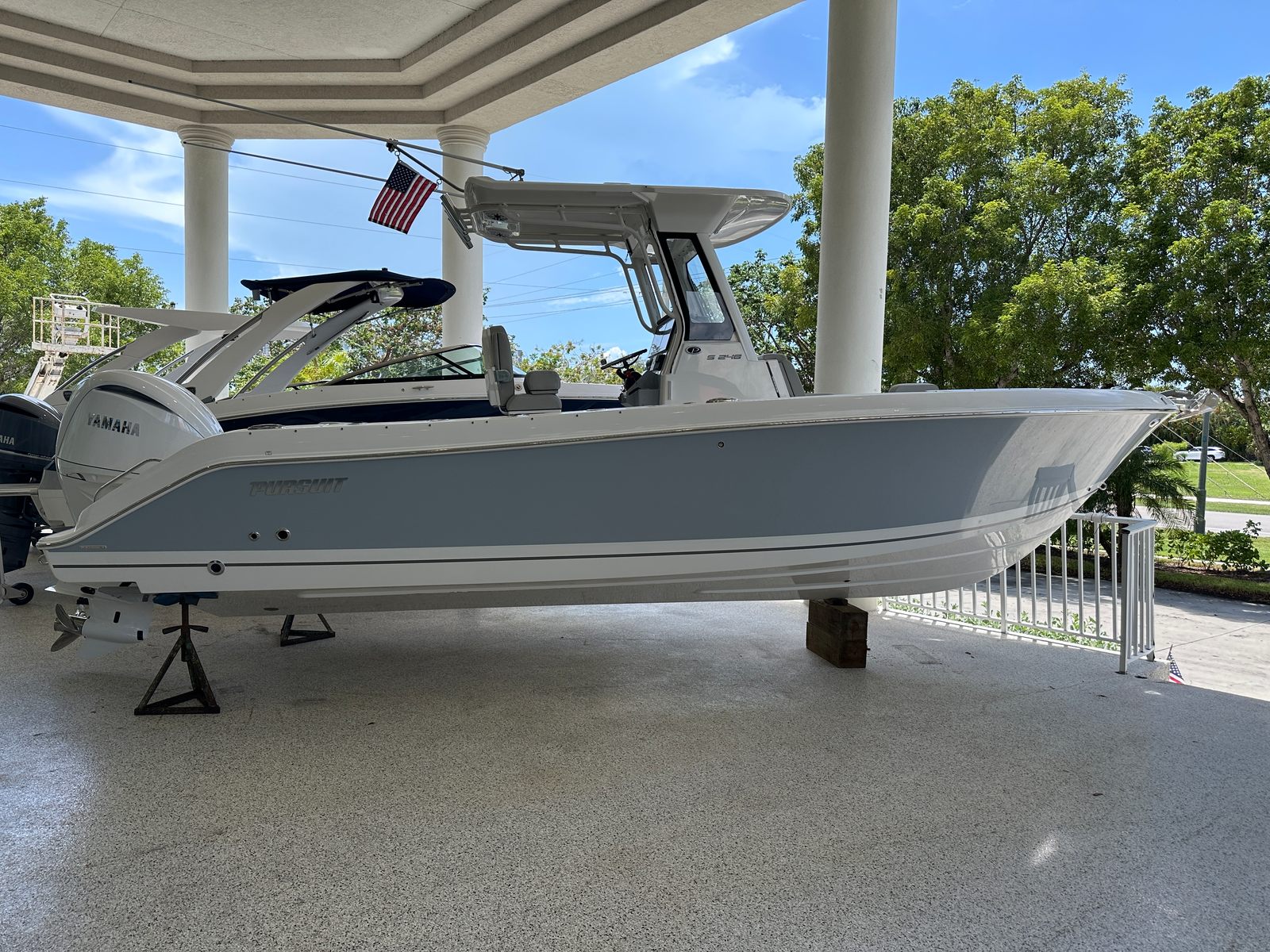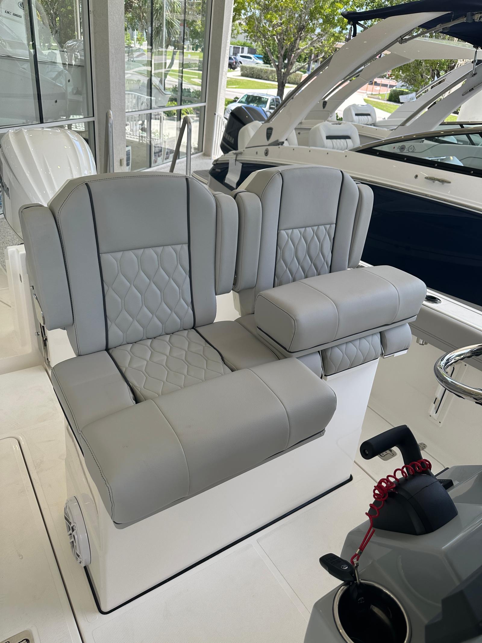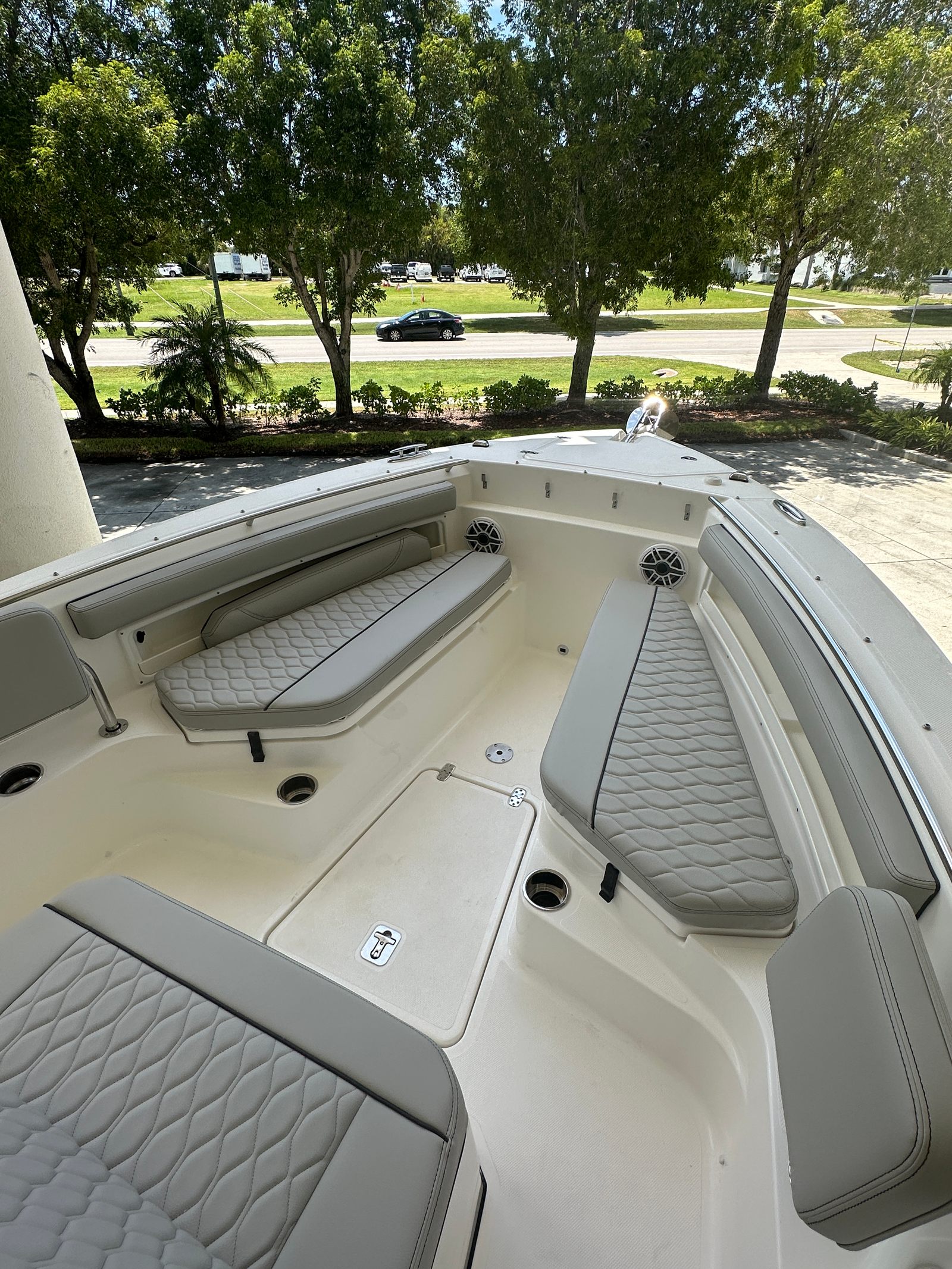 At the heart of the Pursuit S 248 is a powerful Yamaha F300 engine, delivering an impressive 300 horsepower. This single-engine setup is renowned for its reliability, smooth operation, and fuel efficiency, making it an ideal choice for both long-distance cruising and quick trips to your favorite fishing spot. The Yamaha F300 ensures that this center console boat for sale offers responsive handling and exhilarating acceleration, allowing you to navigate coastal waters, bays, and offshore environments with confidence and ease. Whether you are chasing the next big catch or enjoying a leisurely cruise, the Pursuit S 248’s performance capabilities are sure to exceed your expectations.