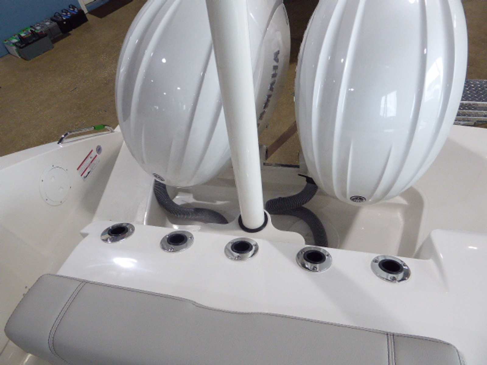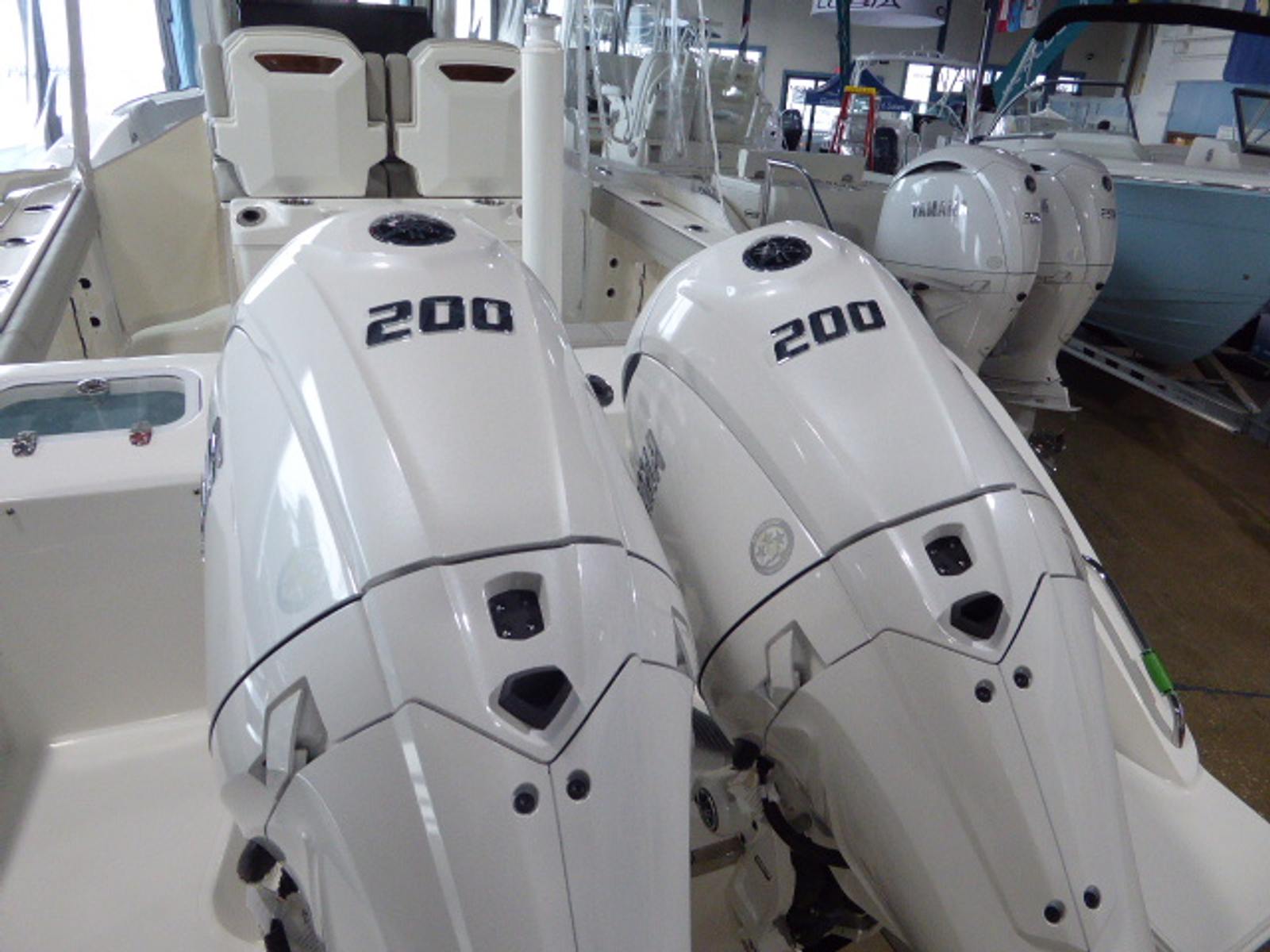 - Twin Yamaha Digital F200 (Pearlescent White) with Digital Electronic Steering (DES) and Helm Master EX Digital Electronic Control (DEC) (does not include joystick control)