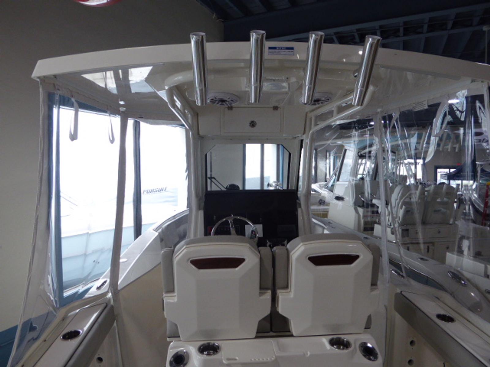 The 2025 Pursuit S 268 Center Console stands out with its sleek lines and contemporary design. Measuring 27.33 feet in length, this new model offers ample space for family, friends, and gear, making it ideal for both serious anglers and those who love to cruise in style. The Fresh White hull, accented by a bold Black bootstripe, gives the boat a modern, sophisticated look that turns heads at the marina and on open water. The carbon helm and Fresh White hardtop liner add to the vessel’s upscale aesthetic, ensuring you’ll enjoy every moment spent aboard.