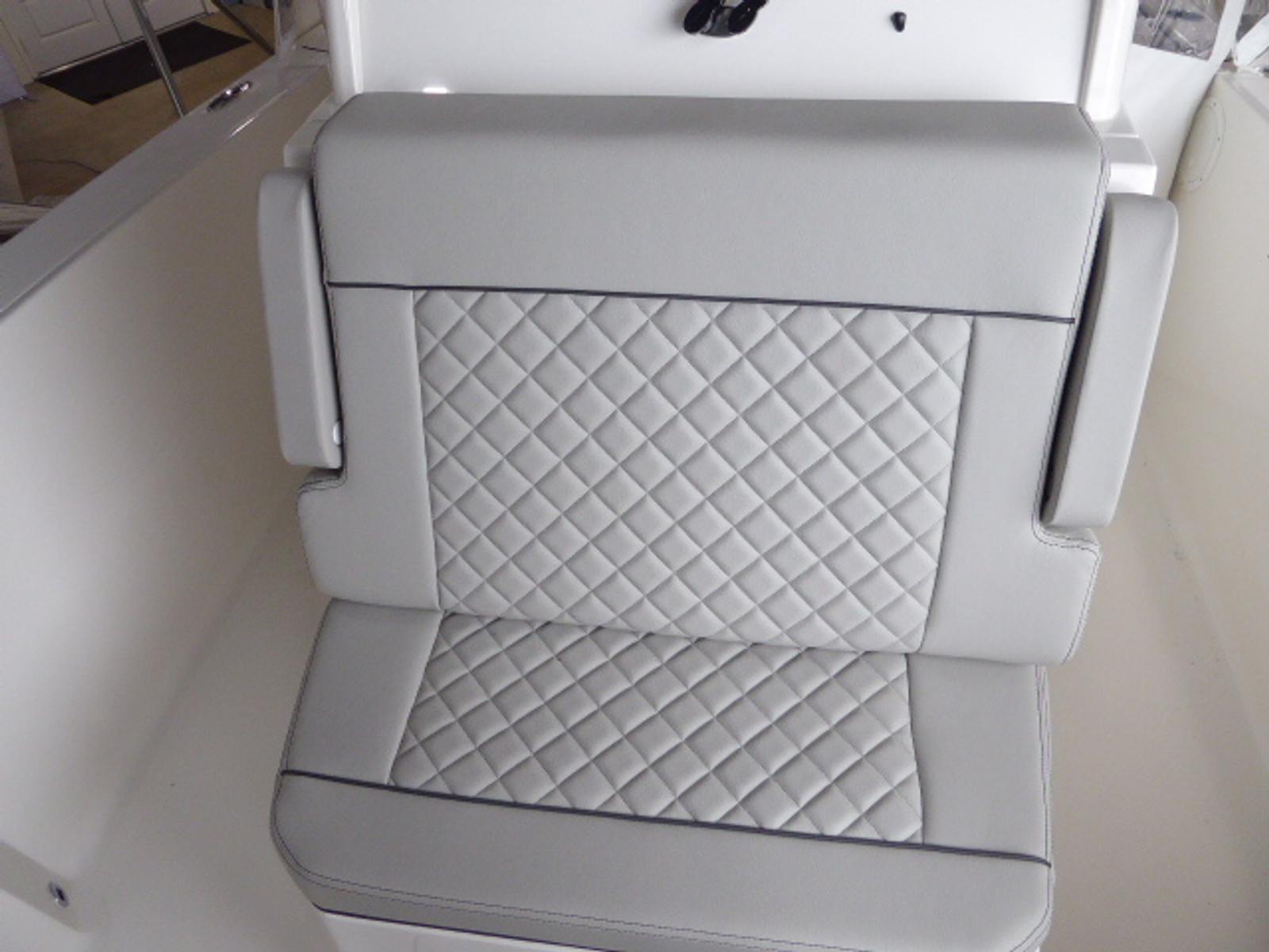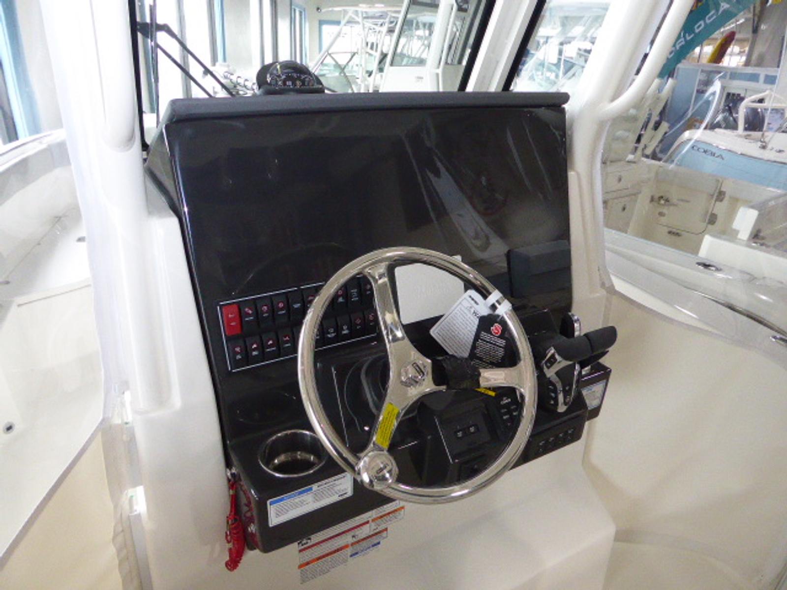 - Premium Helm Seating w/Four (4) Folding Armrests, Articulating Flip-up Bolsters, Upgraded Seat Slide with Fore/Aft Adjustments, and Edson® 316L SS Steering Wheel with Control Knob and Non-Slip Grip