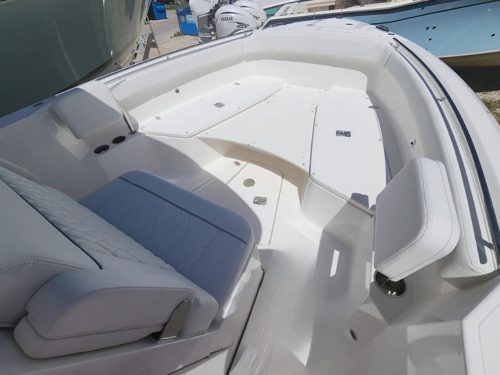 Practicality is at the heart of the Pursuit S 268’s design. The Anchor Windlass System with remote simplifies the anchoring process, saving time and effort during stops. The portlight in the console provides fresh air and natural light, enhancing comfort during extended trips. Dedicated storage for the bow/cockpit table ensures your space remains uncluttered and organized, while the fold-down seating options maximize versatility for different activities.The dual-engine setup not only boosts performance but also adds a layer of safety and reliability, making docking and maneuvering more manageable. The boat’s length and layout strike a balance between spaciousness and ease of handling, making it suitable for both seasoned boaters and newcomers. Fuel efficiency and maintenance are optimized through Pursuit’s engineering, ensuring you spend more time enjoying the water and less time worrying about upkeep.