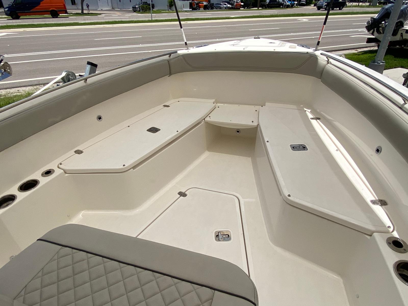 This Center Console boat for sale is as practical as it is luxurious. The windlass/anchoring system streamlines the process of securing your boat, saving time and effort during stops. The dual Garmin displays offer reliable navigation, helping you chart your course and avoid hazards with precision. The leaning post cover protects key areas from wear and tear, while the hardtop and windshield shield you from the elements.Storage solutions throughout the Pursuit S 268 make it easy to stow gear, tackle, and personal items, keeping the deck organized and clutter-free. The efficient engine setup ensures you get the most out of every gallon of fuel, making longer trips more enjoyable and cost-effective. Docking is simplified by the boat’s responsive handling, allowing you to maneuver confidently in tight spaces.