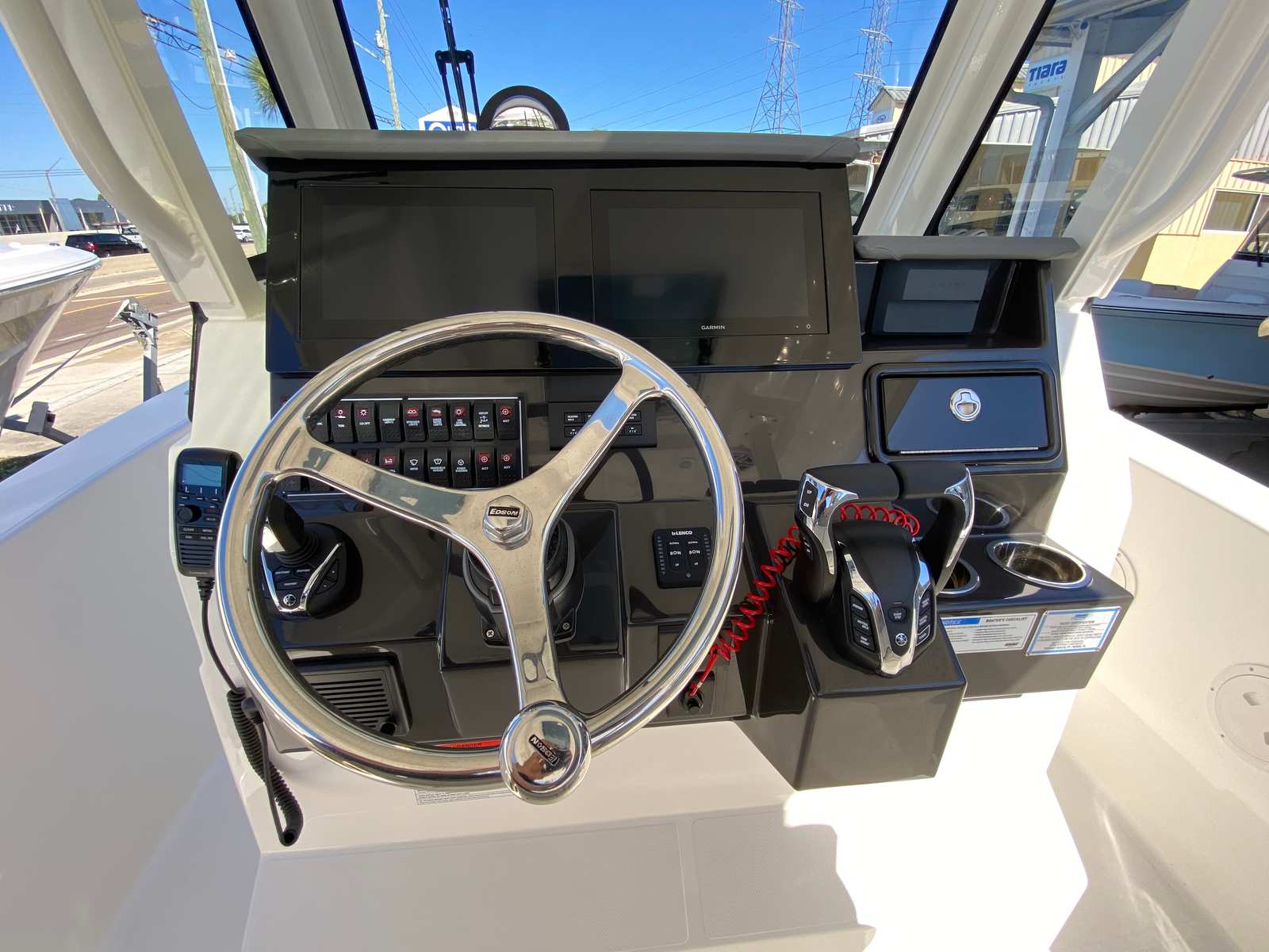 The Pursuit S 288 is as practical as it is stylish. The center console design provides excellent visibility and easy access to all areas of the boat, making it ideal for both novice and experienced boaters. The joystick control system simplifies docking, even in challenging conditions, while the side door boarding ladder ensures that everyone can get on and off the boat safely.Storage solutions are thoughtfully integrated throughout the boat, including dedicated space for the cockpit table and sunshade. The efficient layout allows you to bring along all the gear and supplies you need for a day on the water without sacrificing comfort or mobility. The combination of performance, maneuverability, and user-friendly features makes the S 288 a smart choice for anyone seeking a versatile and reliable center console boat for sale.