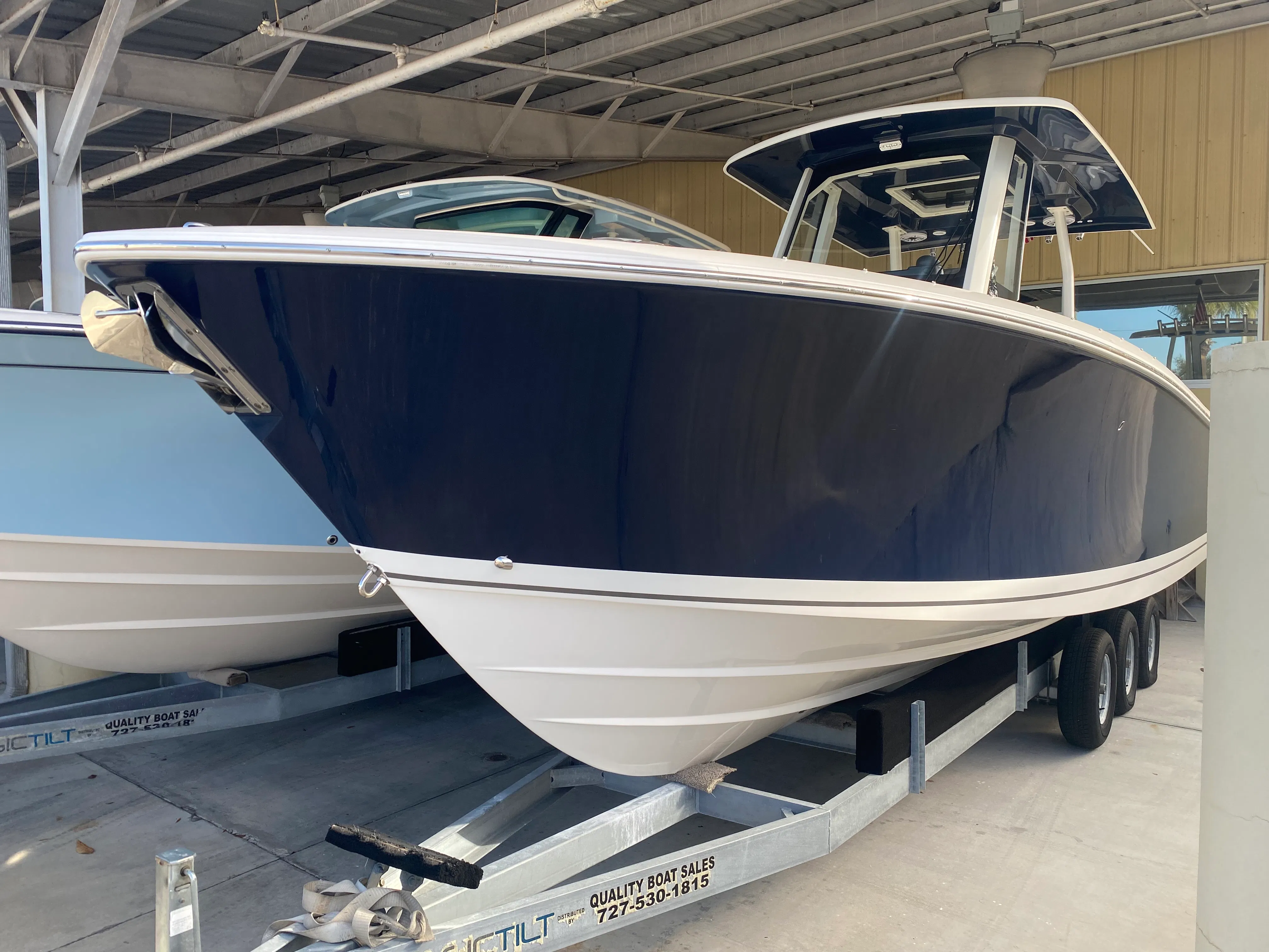 The 2025 Pursuit S 288 Center Console boat stretches to an impressive 30 feet in length, offering ample space for relaxation, entertainment, and on-water activities. With its sleek Flag Blue hull color and stylish Boot Stripe in Arctic White/Quartz Gray, this boat commands attention at every marina and on every waterway. The new condition ensures you will be the first to enjoy all the modern amenities and advanced engineering that Pursuit is renowned for. The S 288 model is meticulously crafted to deliver a seamless blend of style and substance, making it a top contender among Center Console boats for sale.