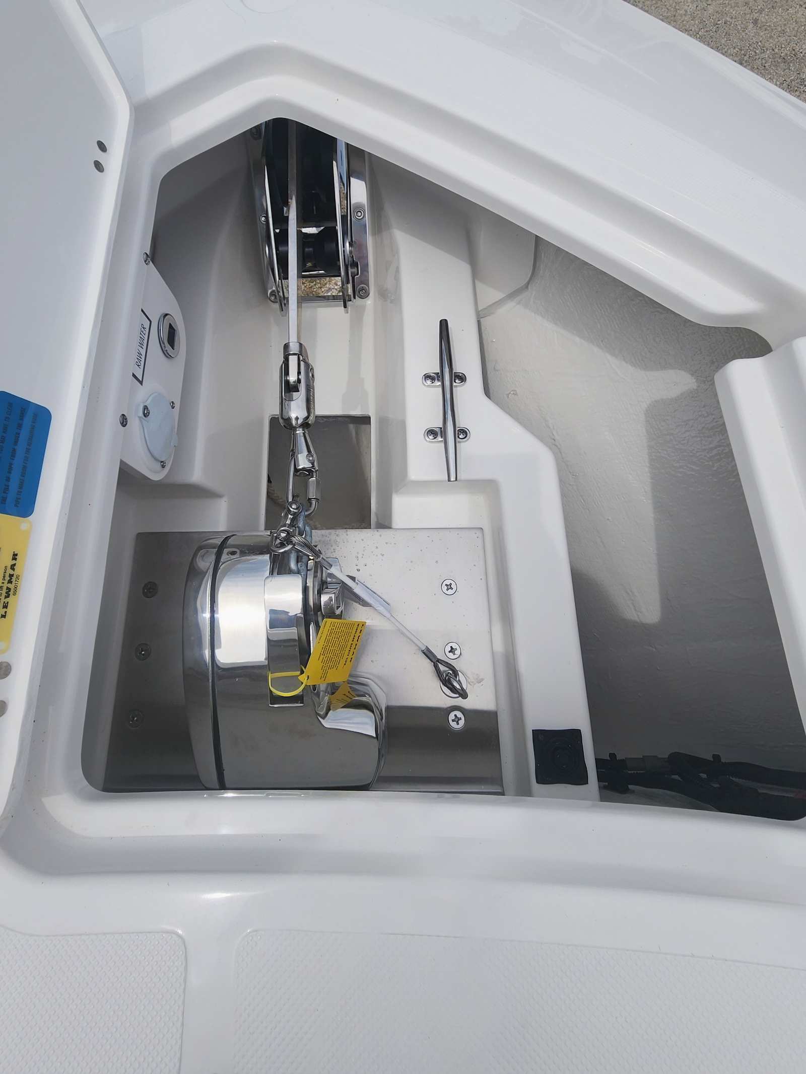 The Pursuit S 288 is loaded with features that elevate your boating experience. The helm and footrest are finished in a stylish Carbon color, creating a modern and comfortable command center for the captain. The hardtop liner matches the Fresh White hull, enhancing the boat’s cohesive and elegant aesthetic. A hullside boarding door ladder offers convenient access for swimmers, divers, or anyone boarding from the dock, while the 110V/60HZ dockside power with battery charger ensures your onboard systems stay powered up and ready for action.For those who love to enjoy the water after sunset, the S 288 is equipped with three all color spectrum underwater lights. These lights not only add a dramatic visual effect but also enhance safety and visibility during evening outings. The absence of a bow thruster is offset by the intuitive joystick system, which provides precise control for docking and close-quarters maneuvering.