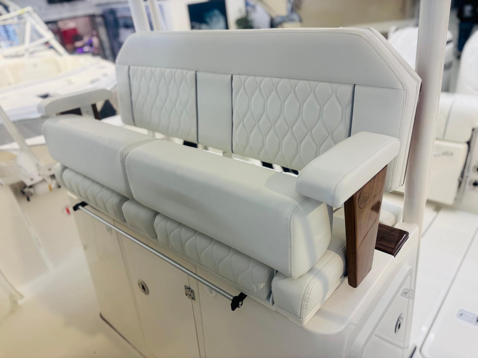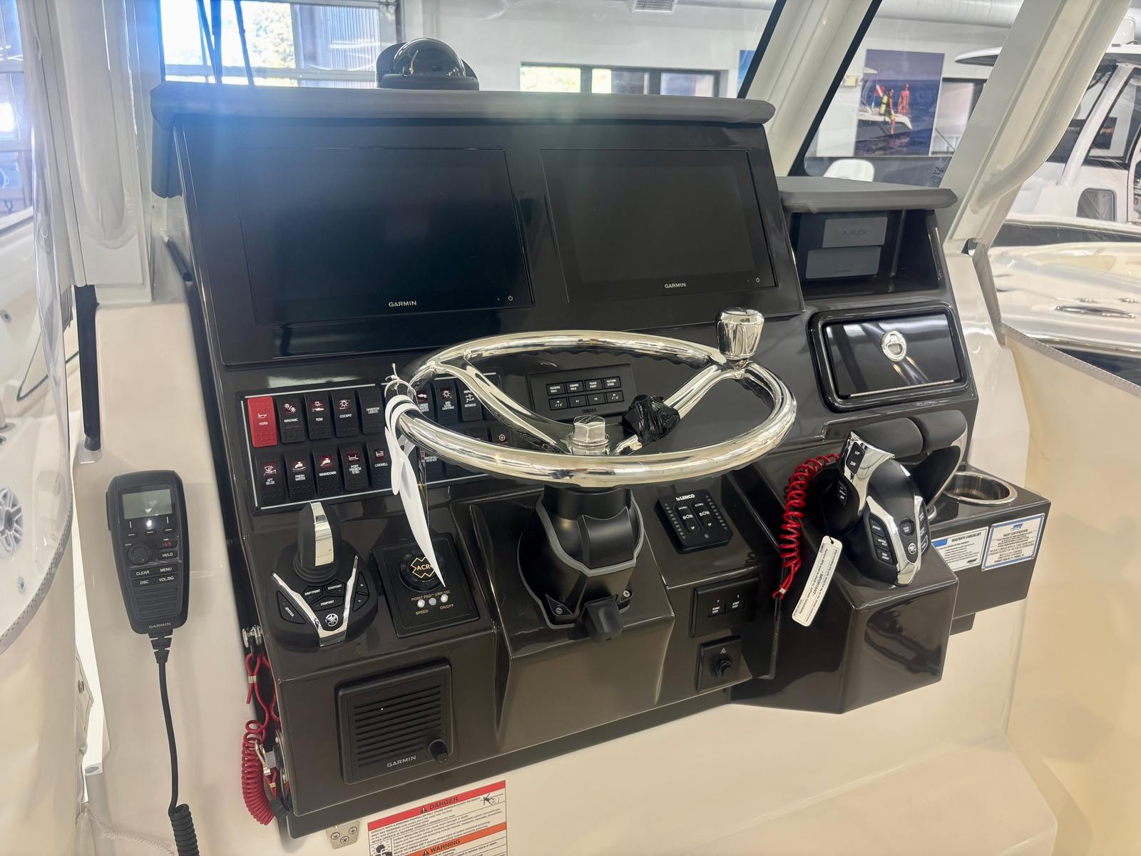 Power and precision define the performance of the Pursuit S 288. Equipped with twin Yamaha Digital F300 V6 Offshore engines in a striking Pearlescent White finish, this center console boasts a combined 600 horsepower. The integrated Digital Electric Steering (DES) and Helm Master EX Digital Electronic Control (DEC) system provide smooth, responsive handling, ensuring you are always in command, whether navigating tight marinas or cruising open waters. The Multifunction Display Interface offers real-time engine data and navigation information at your fingertips, while the manual engine flushing system helps maintain peak performance and longevity. For those seeking the ultimate in maneuverability, the Yamaha Joystick Control with full maneuverability, Set Point, and Autopilot features makes docking and close-quarters handling effortless, giving you confidence in any situation.