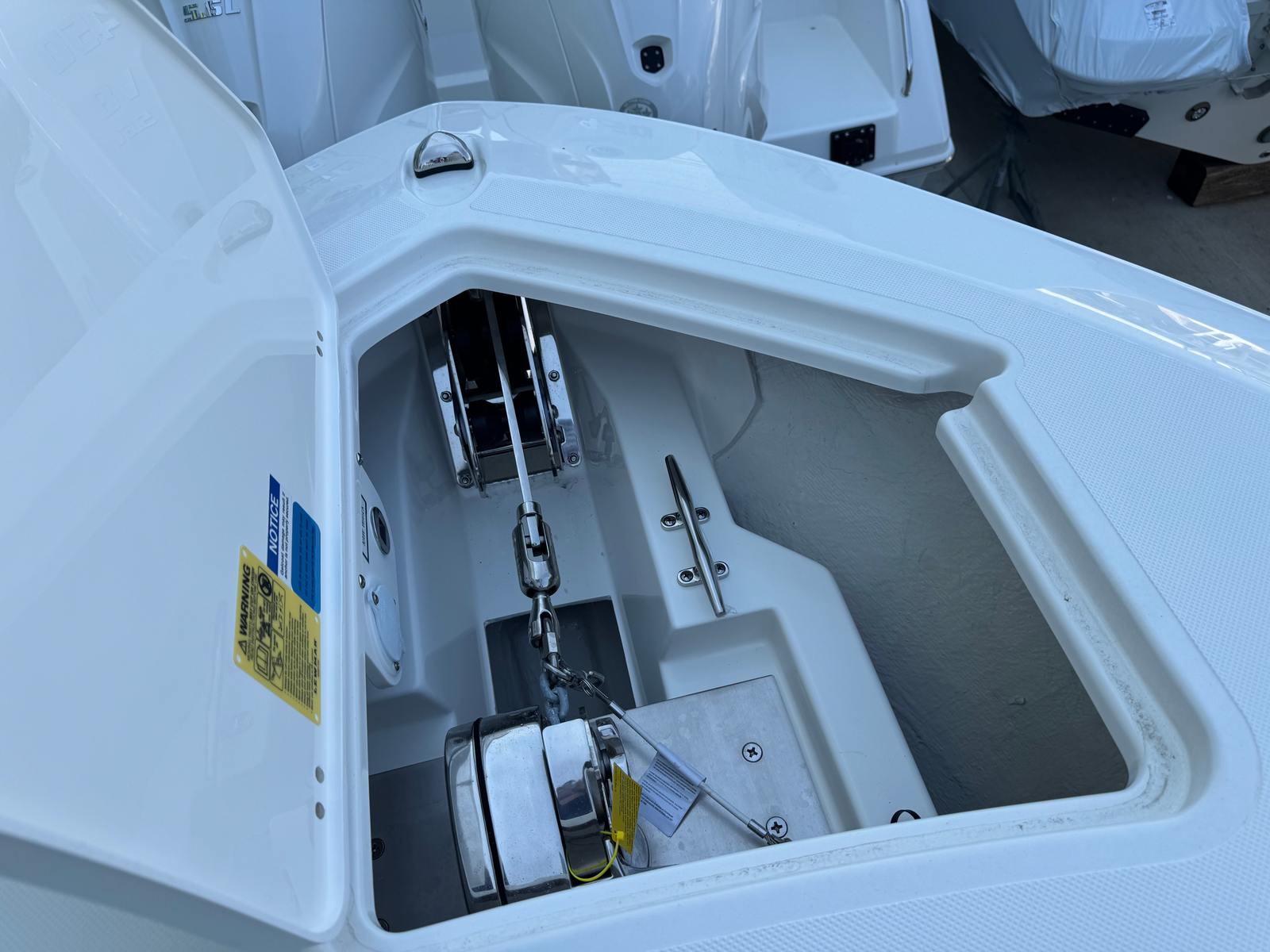 Step aboard the Pursuit S 288 and discover a world of innovative features designed to enhance your boating experience. The helm is outfitted with a GARMIN WIDESCREEN 12" DISPLAY PKG, complemented by a second GARMIN WIDESCREEN 12" DISPLAY, providing state-of-the-art navigation and system monitoring at your fingertips. The helm itself boasts a striking Flag Blue finish, while protective Blue Helm Seat and Instrument Covers keep your controls looking pristine.Comfort and style are evident throughout the boat, with a Blue Bow Tonnean Cover offering shade and protection for the forward seating area. The hardtop liner in fresh white adds a touch of elegance and ensures a cool, comfortable environment even on the sunniest days. Entertain guests with the versatile Bow/Cockpit Table, crafted from durable fiberglass and featuring dedicated storage for convenience. For those seeking relaxation, the Bow Mediterranean Style Sunshade is easily stowable, providing a luxurious retreat from the midday sun.