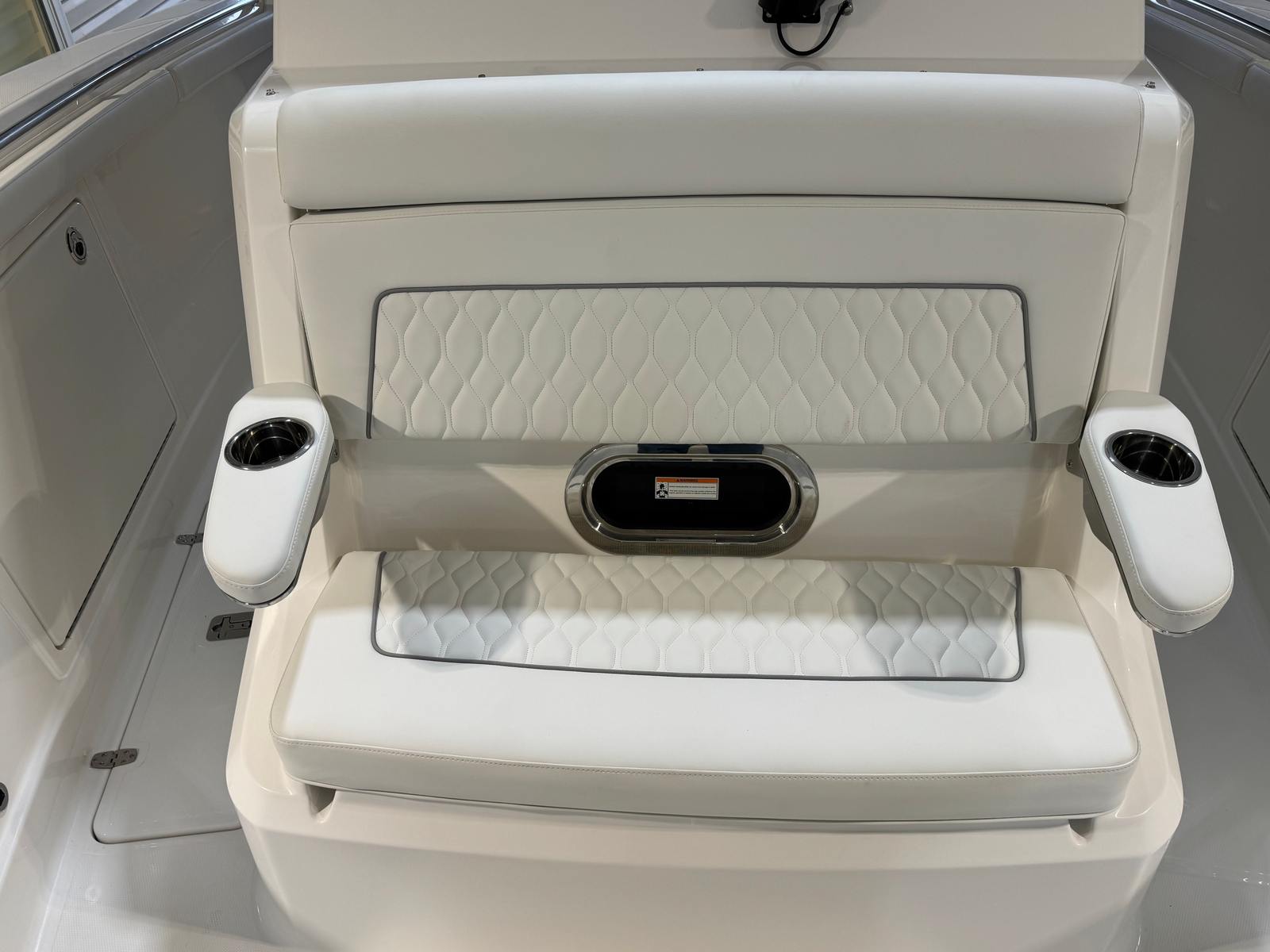 The Pursuit S 328 is as practical as it is stylish. The joystick control simplifies docking, making it easy to maneuver in marinas or tight slips. The efficient twin Yamaha F350 engines offer impressive performance without compromising on fuel economy, allowing you to spend more time on the water and less time refueling. The cockpit drawer 12V refrigerator adds a touch of convenience, ensuring your snacks and beverages are always within reach. The boat’s thoughtful layout provides plenty of storage for gear, water toys, and personal items, keeping the deck clutter-free and organized. The durable materials and high-quality finishes are designed to withstand the rigors of marine life, ensuring your investment remains in top condition for years to come.