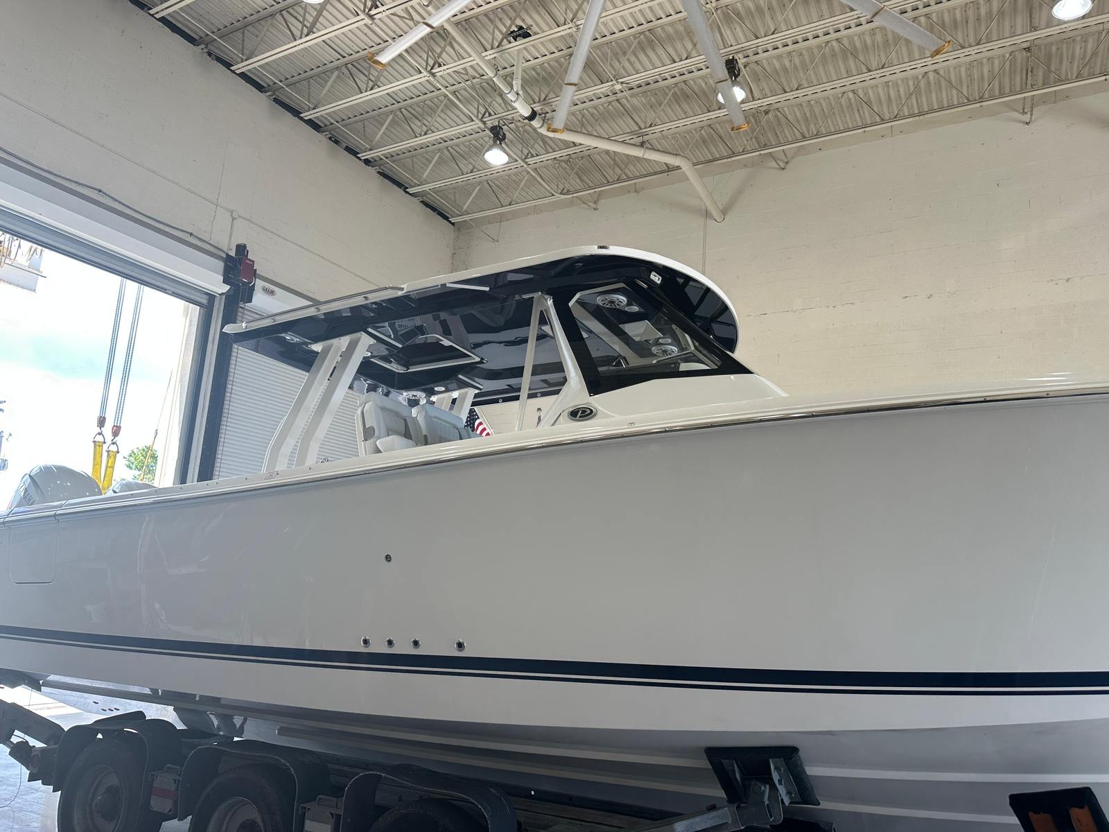The 2026 Pursuit S 358 Center Console is a testament to Pursuit’s commitment to quality and innovation. Measuring an impressive 37.33 feet in length, this boat provides ample space for relaxation, entertainment, and adventure. The sleek Fresh White hull, accented with a Navy boot stripe and navy accent, ensures that this vessel turns heads wherever it goes. The new condition of this Center Console boat for sale means you will be the first to enjoy its pristine features and cutting-edge technology.