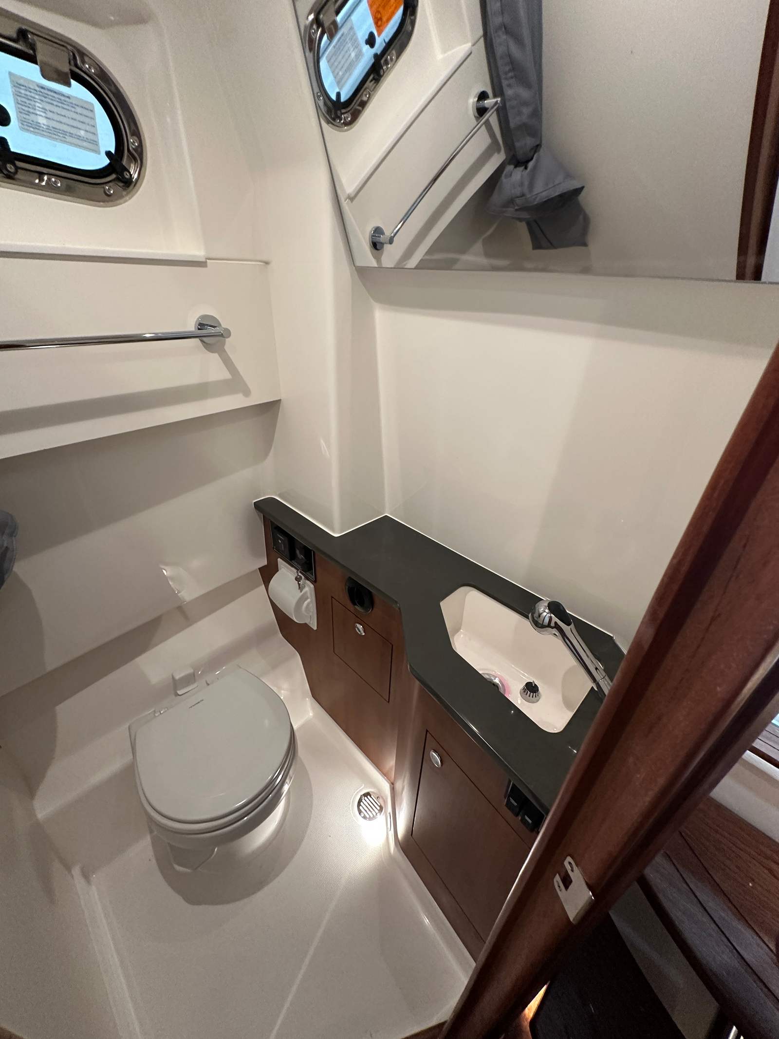 The Pursuit S 358 is packed with premium features designed to enhance your boating experience. One of the standout features is the Seakeeper Gyro Stabilization System, which significantly reduces boat roll, ensuring a stable and comfortable ride even in choppy conditions. The hardtop liner in Flag Blue adds a touch of elegance, while the helm and footrest in Carbon provide both style and ergonomic comfort.Inside, the Tranquil Sea interior and White Exterior Upholstery Sport create a sophisticated and inviting atmosphere. The 120V/60HZ 5.0KW Diesel Genset ensures you have reliable power for all your onboard needs, while the 110V/60HZ 6K BTU Cabin Air Conditioning keeps the cabin cool and comfortable, no matter the weather outside. Every detail, from the hull color to the upholstery, has been carefully selected to provide both aesthetic appeal and practical functionality.