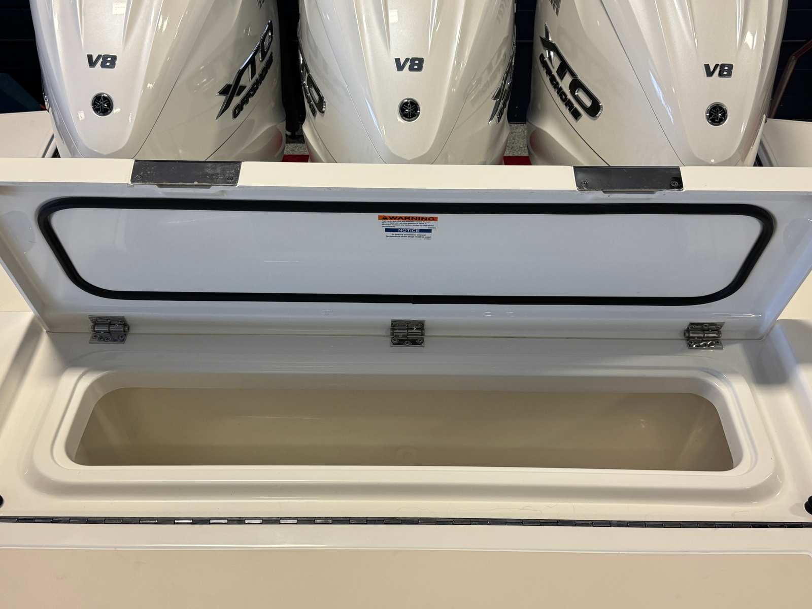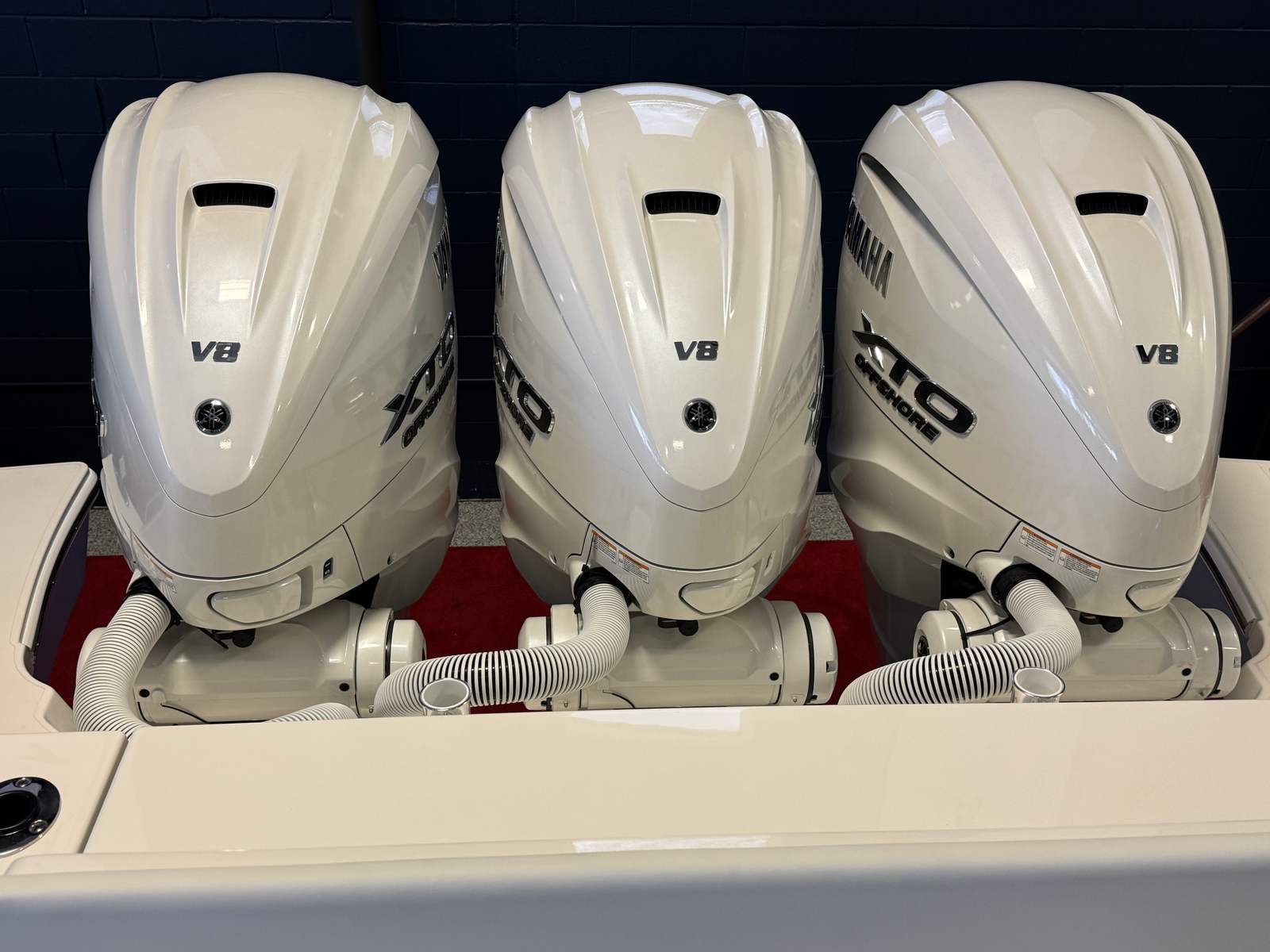 - Triple Yamaha® Digital 450 XTO (Pearlescent White) w/Integrated Electric Steering (DES), Helm Master® EX Digital Electronic Control (DEC) and Yamaha® Joystick Control with Full Maneuverability (Set PointTM and Autopilot), Multifunction Display Interface and Manual Engine Flushing System