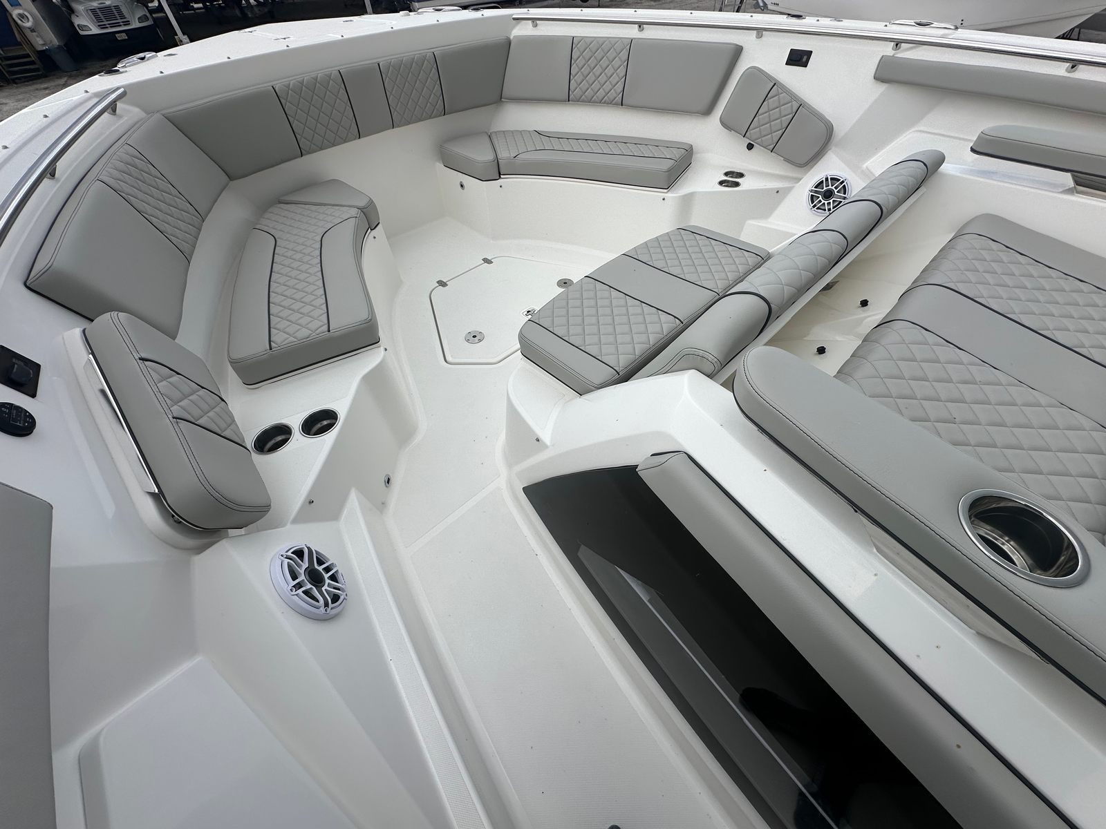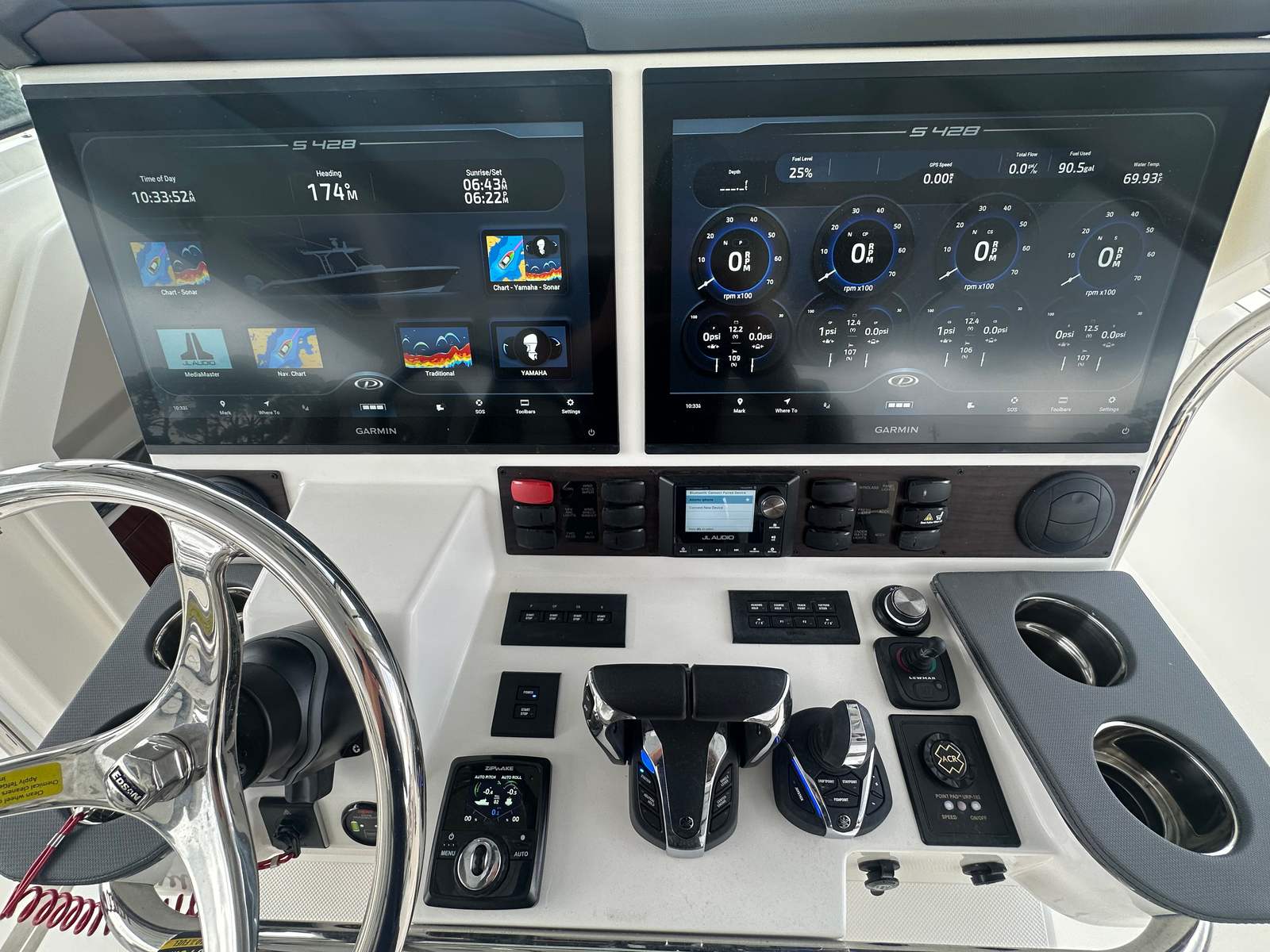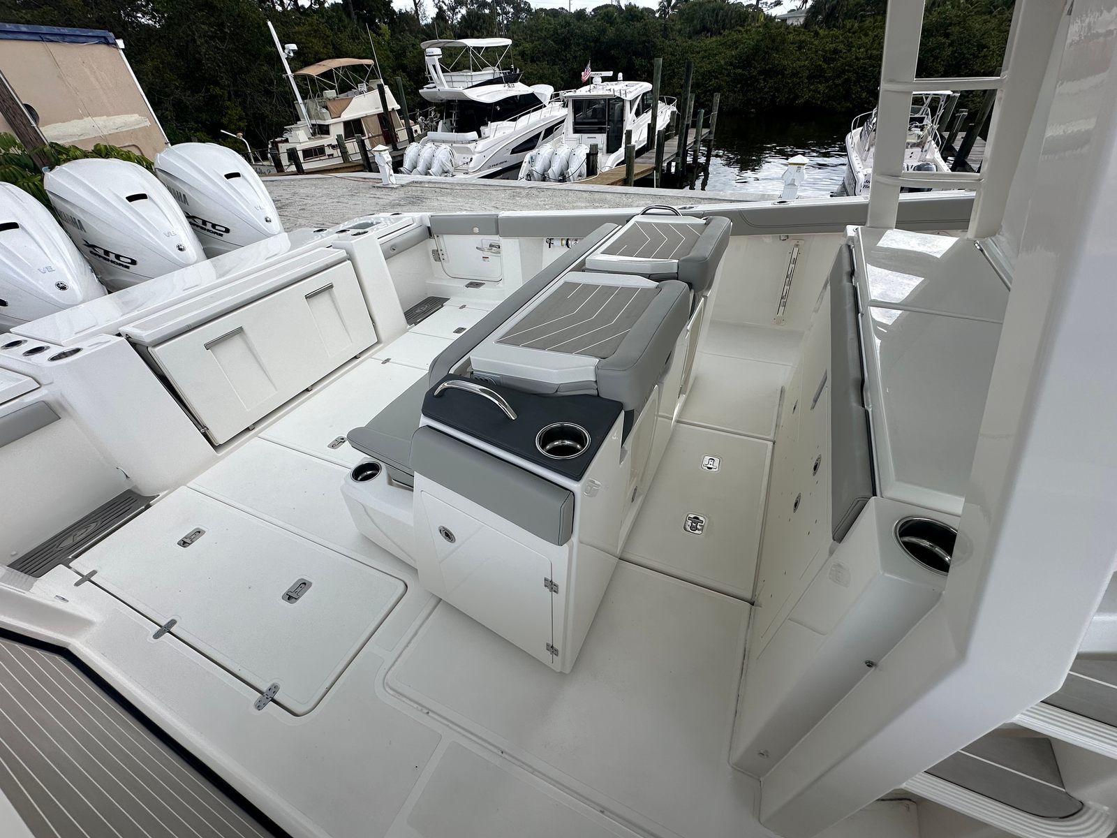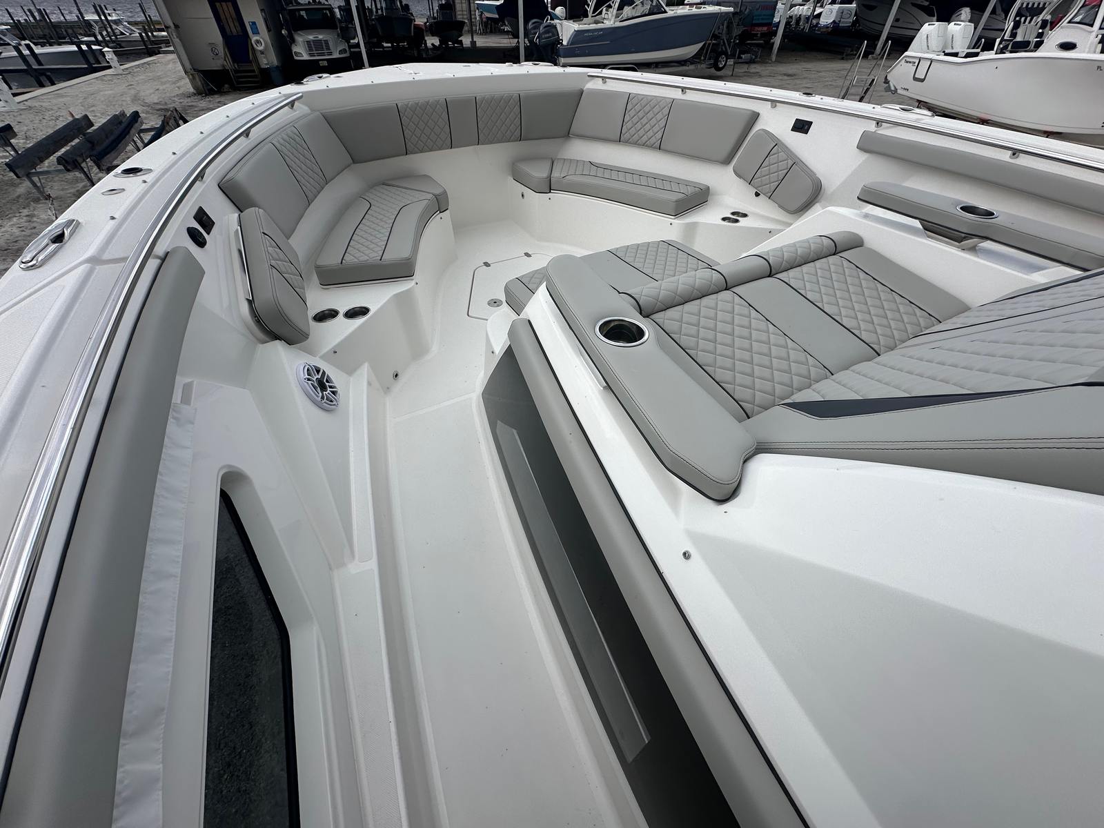 Powering the Pursuit S 428 are four Yamaha Quad XF450XTO2 engines, delivering a jaw-dropping combined 1800 horsepower. This powerhouse configuration ensures exhilarating speed, smooth acceleration, and reliable performance in a variety of sea conditions. Full maneuverability is at your fingertips, allowing for precise handling whether you’re docking in tight marinas or navigating open waters. The advanced Seakeeper Gyro Stabilization System further enhances your ride, minimizing roll and providing a stable, comfortable experience even when the waves pick up. With this level of performance, the S 428 is ready to tackle long-range adventures, high-speed runs, and everything in between.