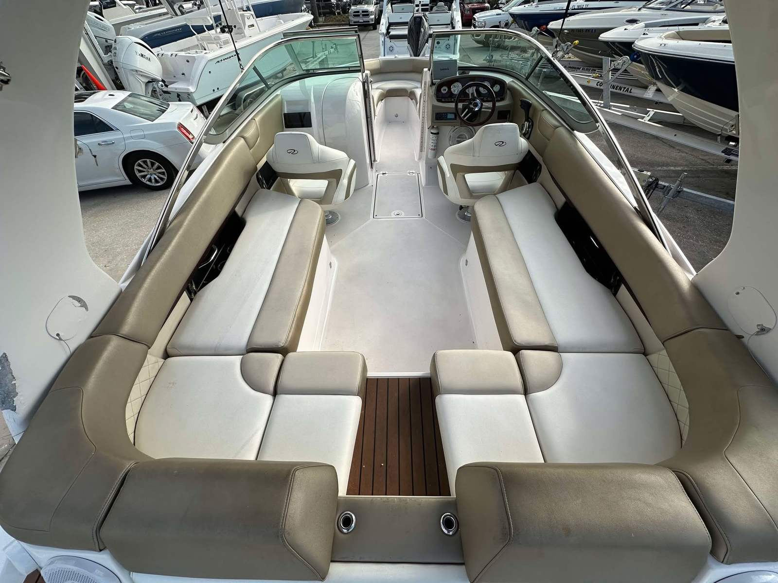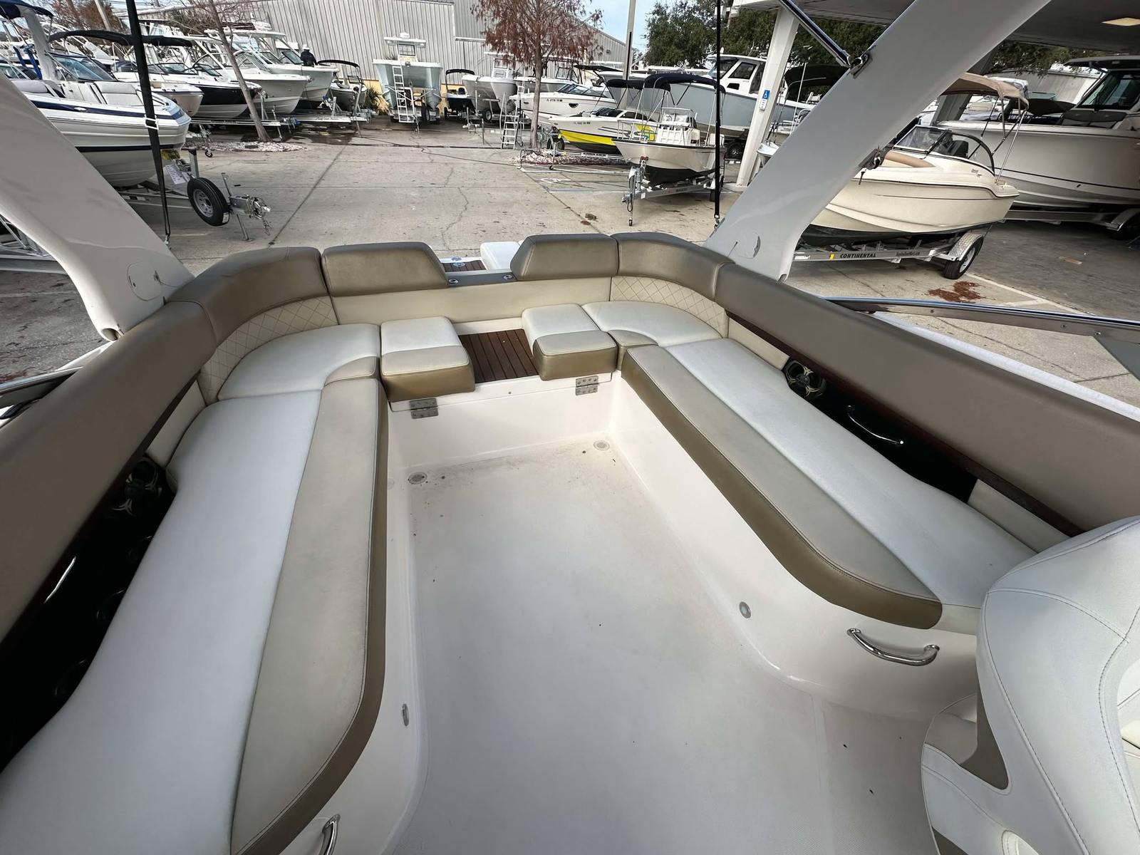 The Regal 2500 Bowrider is designed with practicality in mind. Its manageable size makes docking and maneuvering a breeze, even for those new to boating. The single-engine setup simplifies maintenance and reduces operating costs, while still delivering impressive performance. Storage options on board allow you to stow away gear, snacks, and personal items, keeping the deck clutter-free and organized.Fuel efficiency is another advantage of this Bowrider boat for sale. The Regal 2500’s engine is engineered to provide plenty of power without excessive fuel consumption, helping you enjoy longer outings without frequent refueling stops. The boat’s durable construction ensures it can handle a variety of conditions, from calm lakes to coastal waters, giving you the freedom to explore new destinations with confidence.