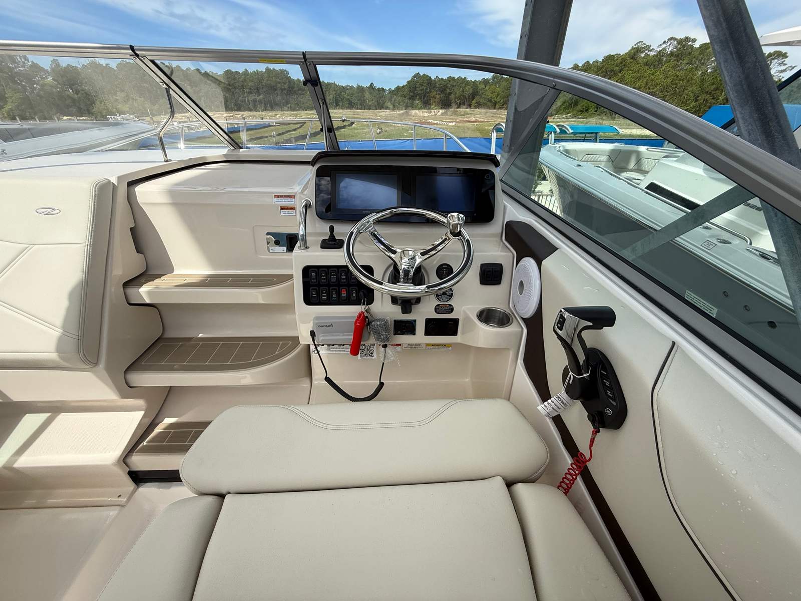 At the heart of the Regal 26 XO is a powerful Yamaha V6 350HP engine with integrated steering, finished in a crisp white that complements the boat’s sophisticated aesthetic. This single-engine setup provides an exhilarating blend of speed, agility, and fuel efficiency, making it ideal for both leisurely cruises and spirited adventures. The 350 horsepower ensures smooth acceleration and confident handling, while the integrated steering system offers precise control and effortless maneuverability. Whether you’re navigating open waters or docking in tight spaces, the Regal 26 XO’s performance is both responsive and reliable.