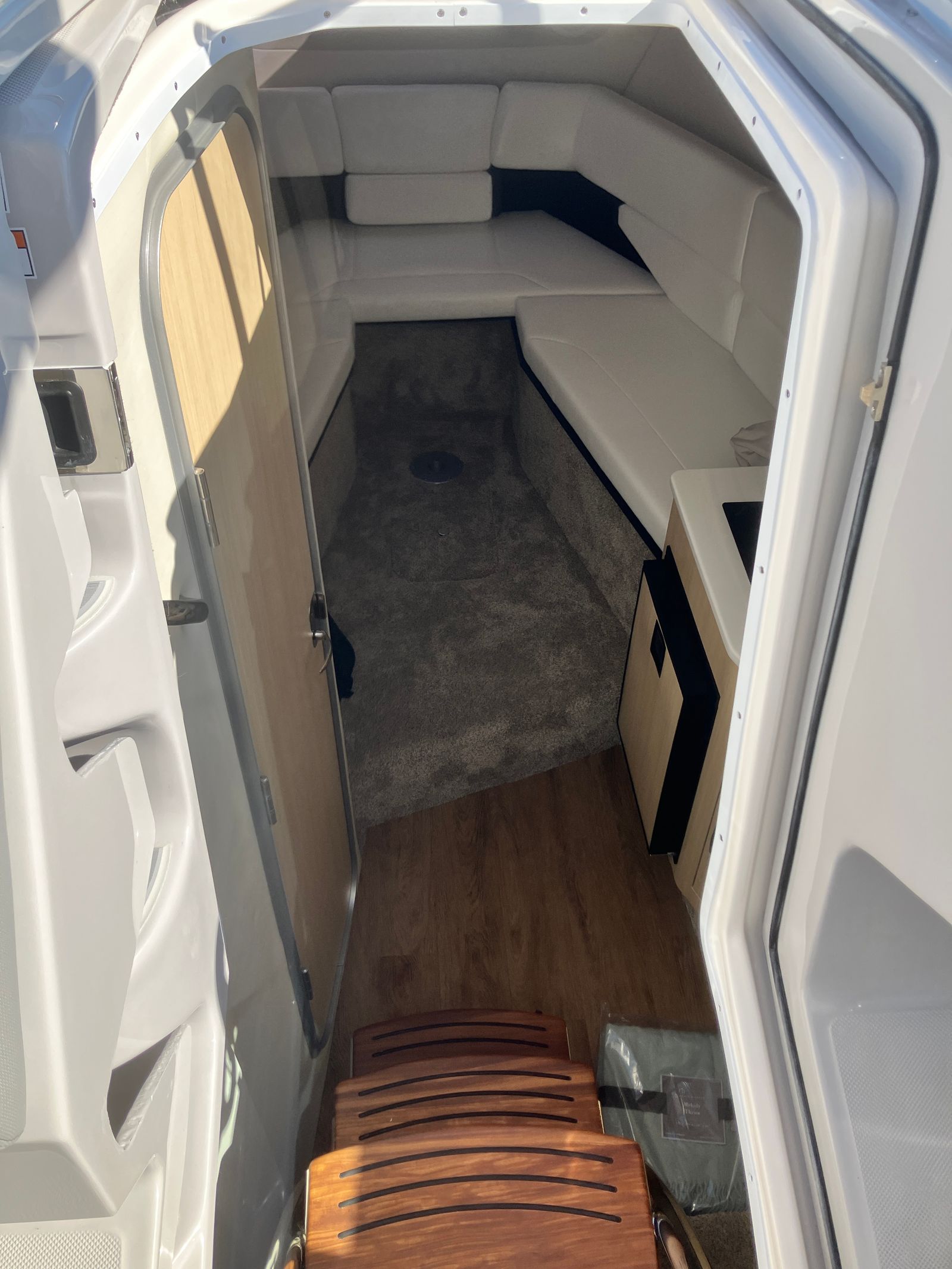 The Regal 26 XO is designed with practicality in mind, making it an ideal choice for a wide range of boating activities. The generous length and smart layout provide ample storage for gear, water toys, and provisions, ensuring you have everything you need for a day on the water or an overnight adventure. The ease of docking, thanks to the integrated steering and responsive handling, means you can confidently navigate marinas and tight spaces without stress.Fuel efficiency is another key advantage, allowing you to spend more time exploring and less time refueling. The durable SeaDek swim platform not only enhances safety but also simplifies boarding and disembarking, making it easy for guests of all ages to enjoy the water. The Steel Grey canvas offers reliable protection from the sun and rain, ensuring your comfort no matter the weather conditions.