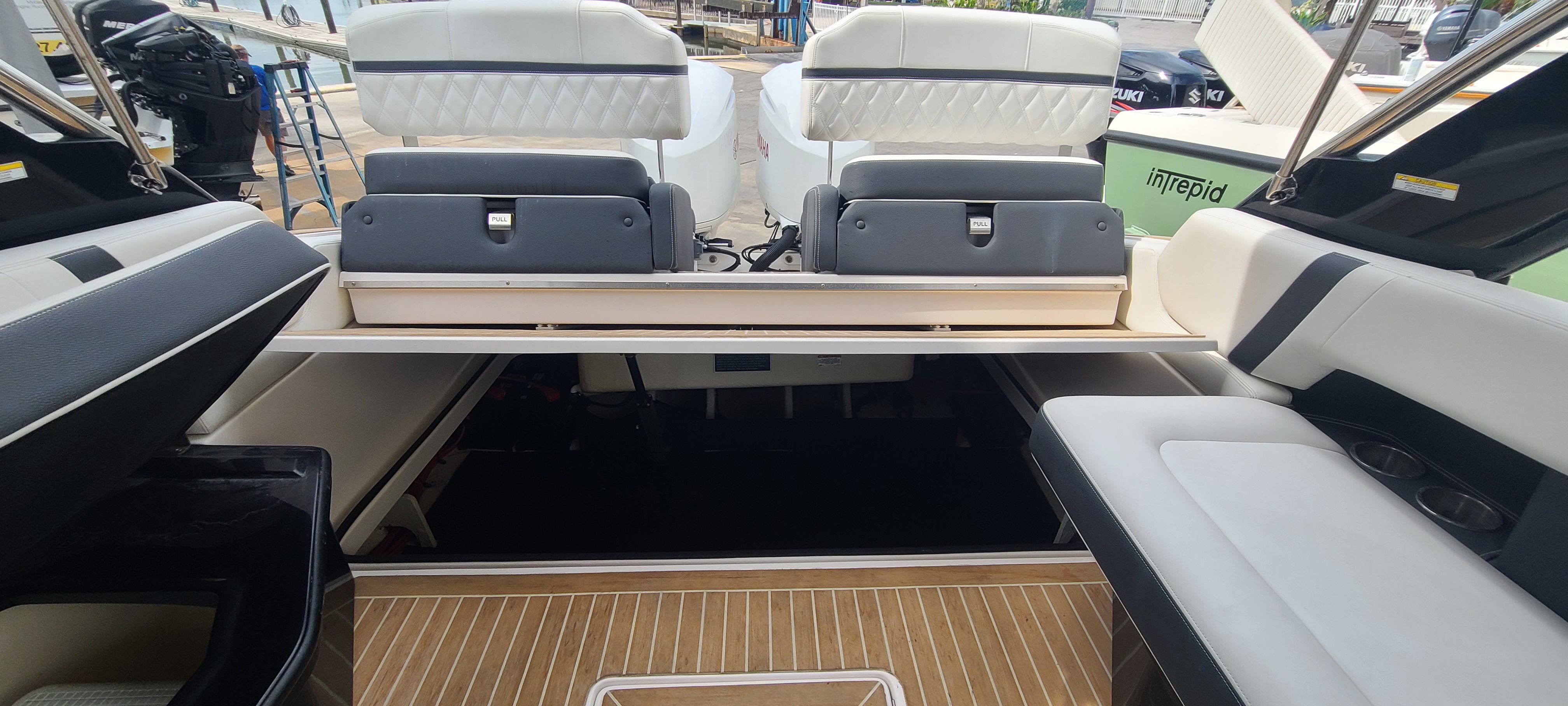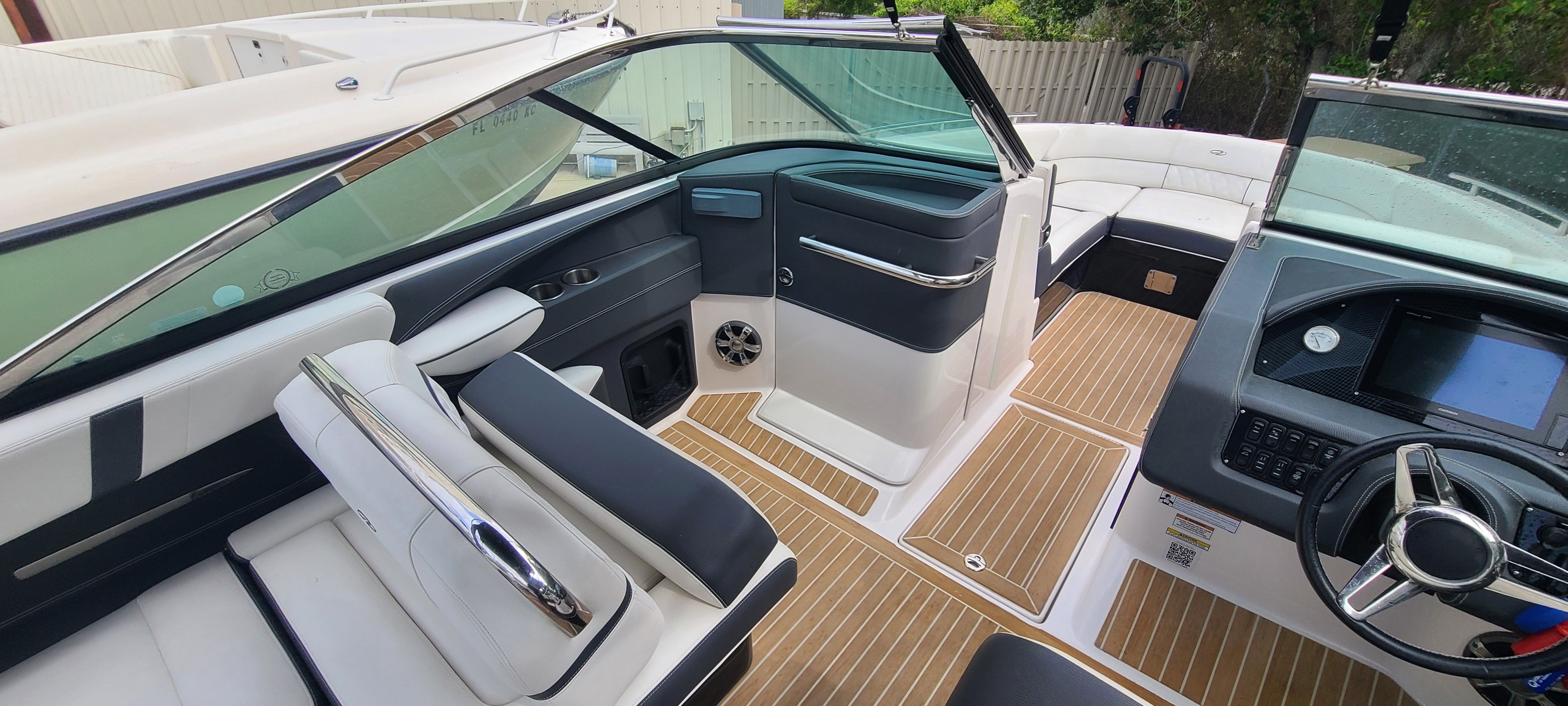 The Regal 29 OBX is as practical as it is stylish. Its generous storage options make it easy to bring along everything you need for a day on the water, from water sports equipment to picnic supplies. The boat’s design allows for easy docking and maneuvering, even in crowded marinas, thanks to its responsive twin engines. Fuel efficiency is another key benefit, allowing you to spend more time enjoying the water and less time at the fuel dock. The durable construction and quality materials ensure that this used bowrider boat for sale will continue to provide reliable performance and low maintenance for years to come.