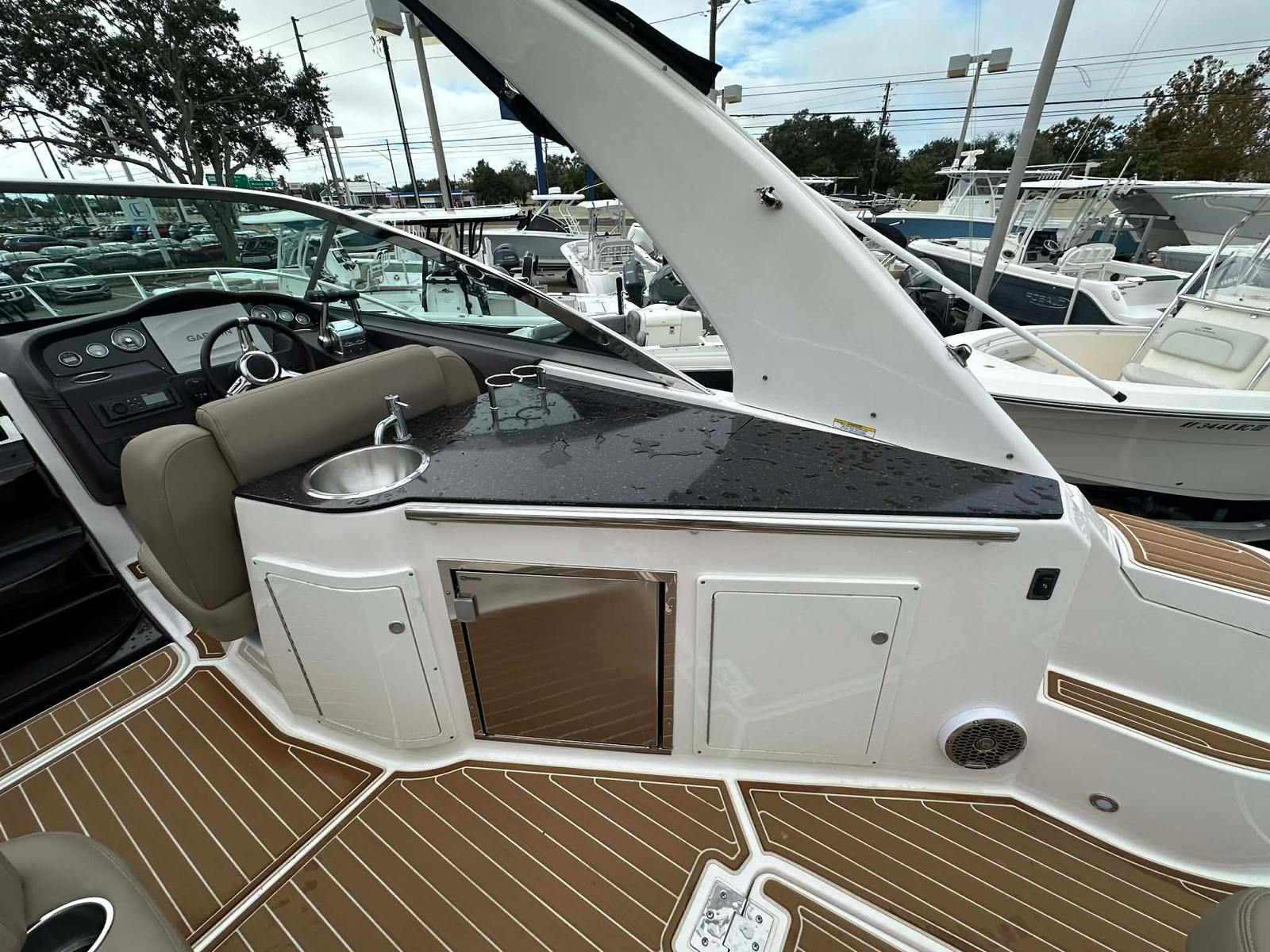 The 2015 Regal 32 Express is packed with features that elevate your boating experience. The spacious cockpit is designed for socializing, with ample seating and a layout that encourages conversation and relaxation. The helm is equipped with intuitive controls, ensuring that captaining this cruiser is both enjoyable and stress-free. Below deck, the cabin offers a welcoming retreat, perfect for overnight stays or escaping the midday sun. The attention to detail in the fit and finish is evident throughout, reflecting Regal’s commitment to quality and comfort.This used Regal boat for sale boasts a range of amenities that cater to both leisure and practicality. The generous deck space is ideal for sunbathing, dining, or simply enjoying the view. Storage compartments are thoughtfully integrated, providing plenty of room for gear, water toys, and personal belongings. The overall design emphasizes both style and functionality, ensuring that every outing is as enjoyable as it is effortless.