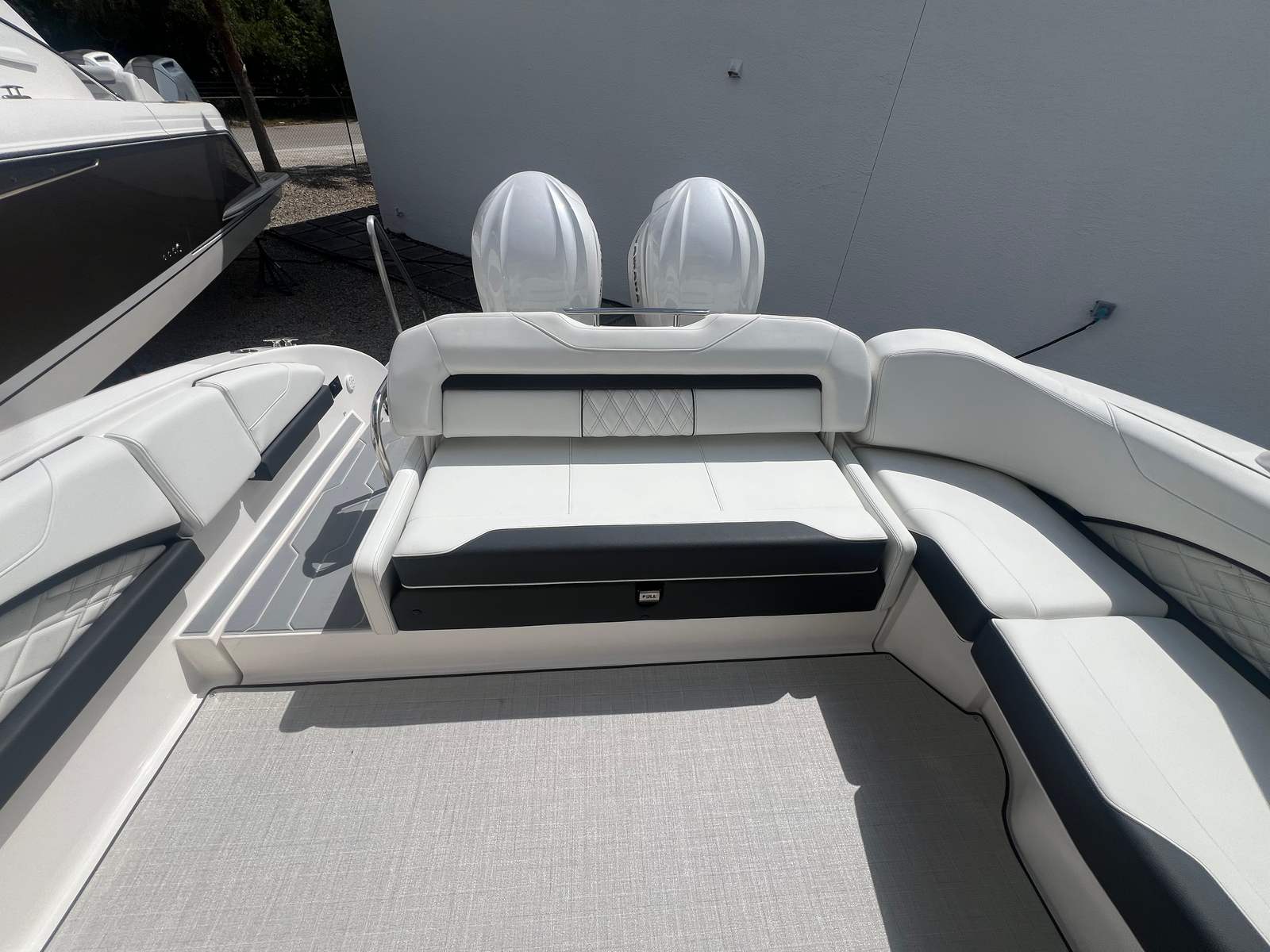 The 2025 Regal 33 OBX is a new, meticulously designed bowrider that measures an impressive 34 feet in length. Its sleek profile and contemporary lines are accentuated by a striking Steel Grey hull, complemented by Titanium accents and a Tahiti Beach White bottom. The matching bootstripe adds a touch of sophistication, ensuring this bowrider turns heads at every marina. Regal’s commitment to quality is evident in every detail, from the premium materials to the thoughtful layout, making this model a true showpiece for those who appreciate both form and function.