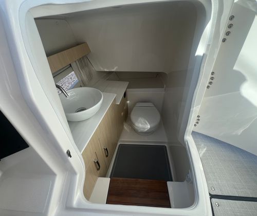 The 2025 Regal 33 OBX is loaded with premium features designed to enhance your time on the water. The stainless steel upgrade package adds a touch of sophistication and durability throughout the boat, while the titanium accents provide a modern, upscale feel. The bow thruster offers effortless maneuverability, making docking and tight turns a breeze, even for less experienced captains.For added convenience and safety, the boat is equipped with indicators for trim tabs, allowing you to optimize your ride and maintain stability in varying conditions. The transom door provides easy access to the swim platform, making it simple to transition from boating to swimming or water sports. Swim platform cleats add another layer of functionality, ensuring secure mooring and easy access for guests.The electric toilet with pump out fittings brings a level of comfort and convenience that is often reserved for larger yachts, making longer outings more enjoyable for everyone on board. The stainless steel flag pole, complete with a U.S. flag, adds a patriotic touch and enhances the boat’s overall aesthetic appeal.