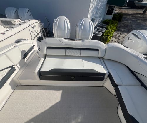 Power and precision define the performance of the Regal 33 OBX. Equipped with twin engines delivering a combined 600 horsepower, this bowrider is built for exhilarating rides and smooth cruising. The dual-engine setup ensures robust acceleration, responsive handling, and the confidence to tackle a variety of water conditions. Whether you are gliding across calm lakes or navigating coastal waters, the Regal 33 OBX offers a thrilling yet controlled experience that will delight both seasoned boaters and newcomers alike.