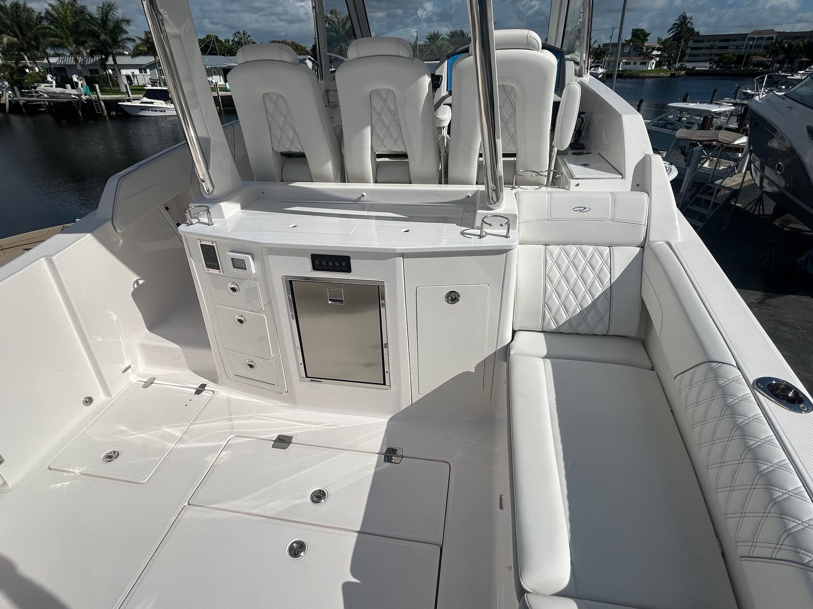 Power and precision come standard on the Regal 33 SAV, thanks to its twin engines delivering a combined 700 horsepower. This dynamic setup ensures exhilarating acceleration, smooth cruising, and reliable handling in a variety of conditions. Whether you’re navigating coastal waters or exploring inland lakes, the Regal 33 SAV offers the performance you need to make every journey exciting and enjoyable. The advanced engineering behind this cruiser boat for sale guarantees a responsive ride, allowing you to confidently tackle both leisurely cruises and spirited adventures.